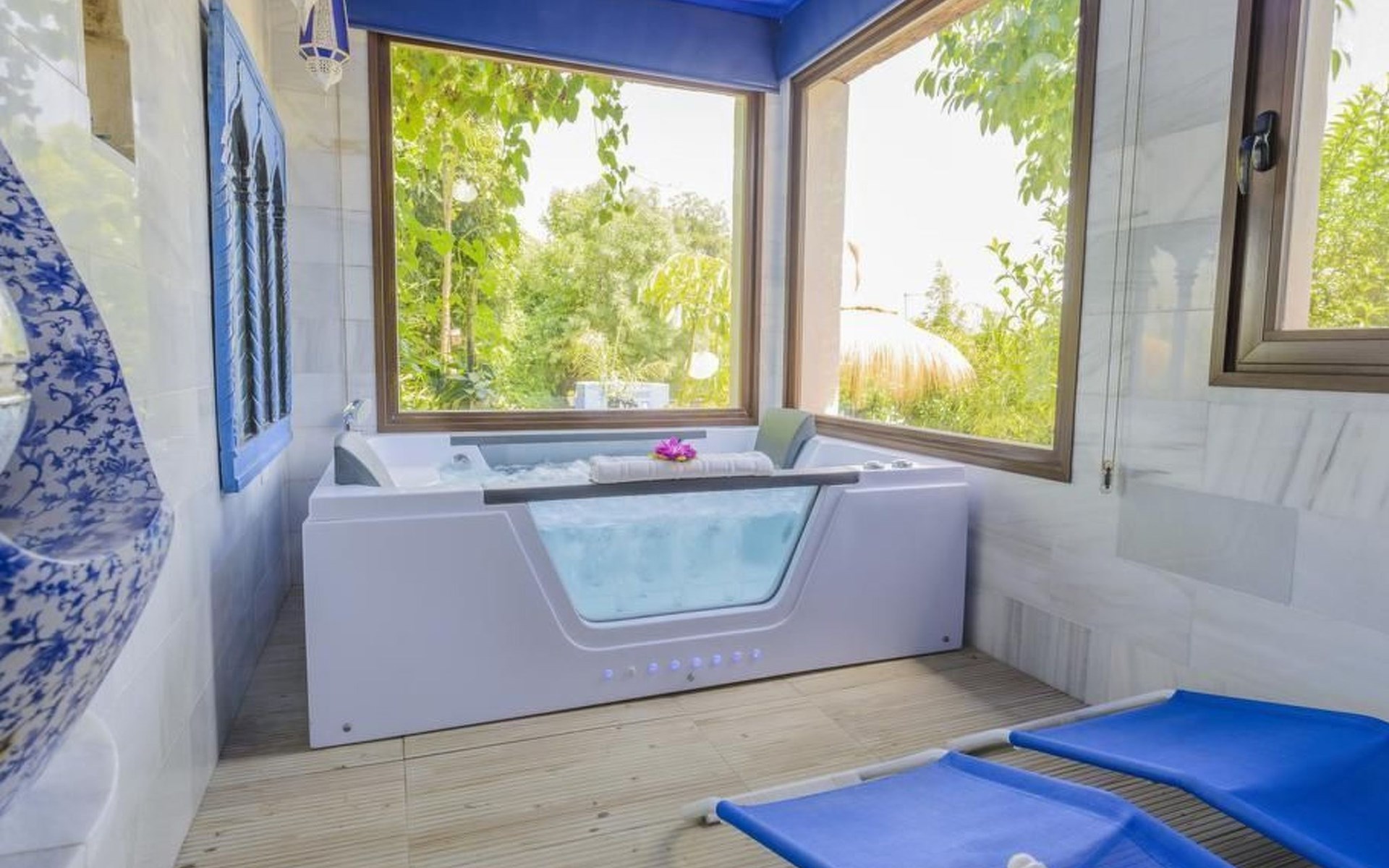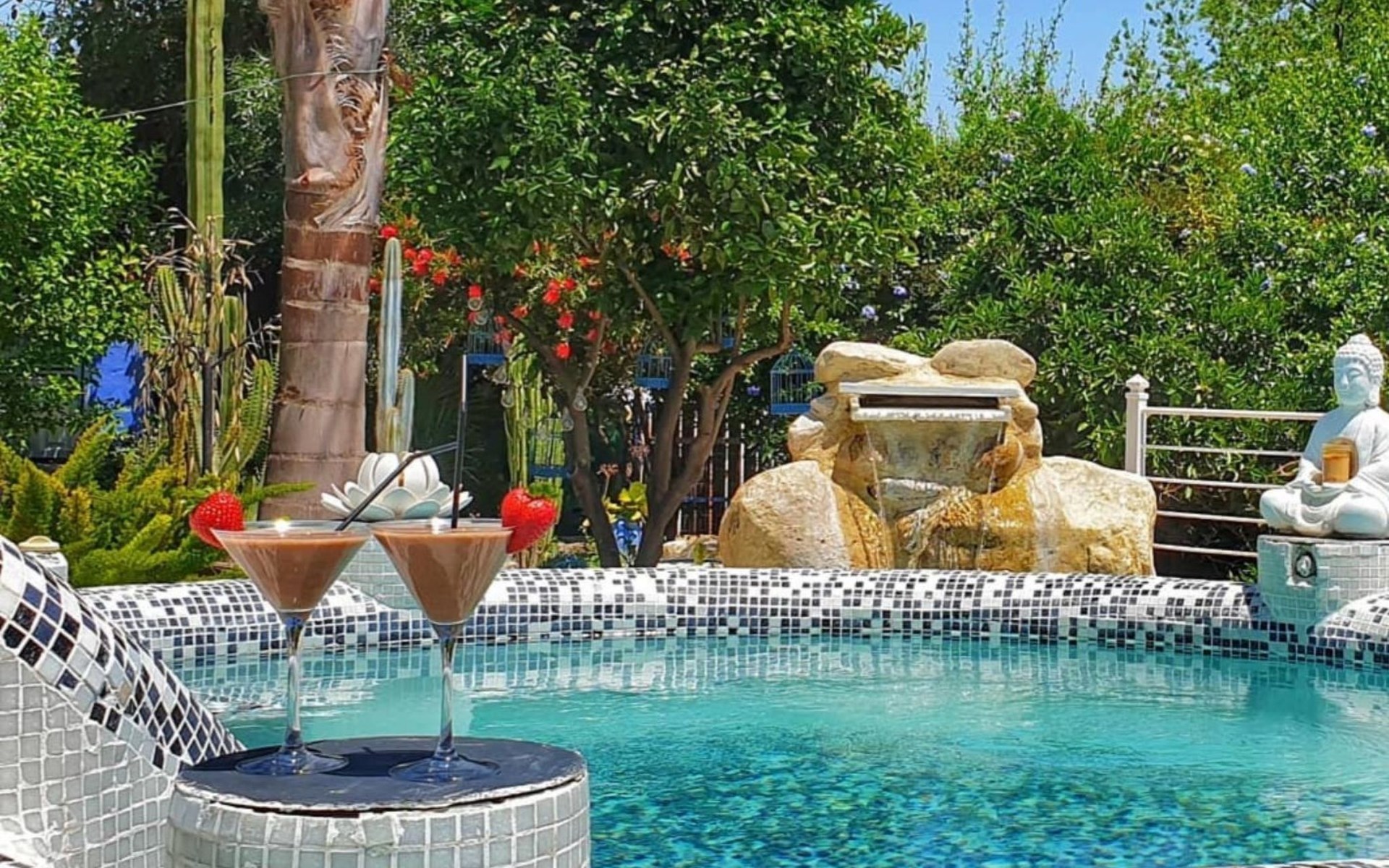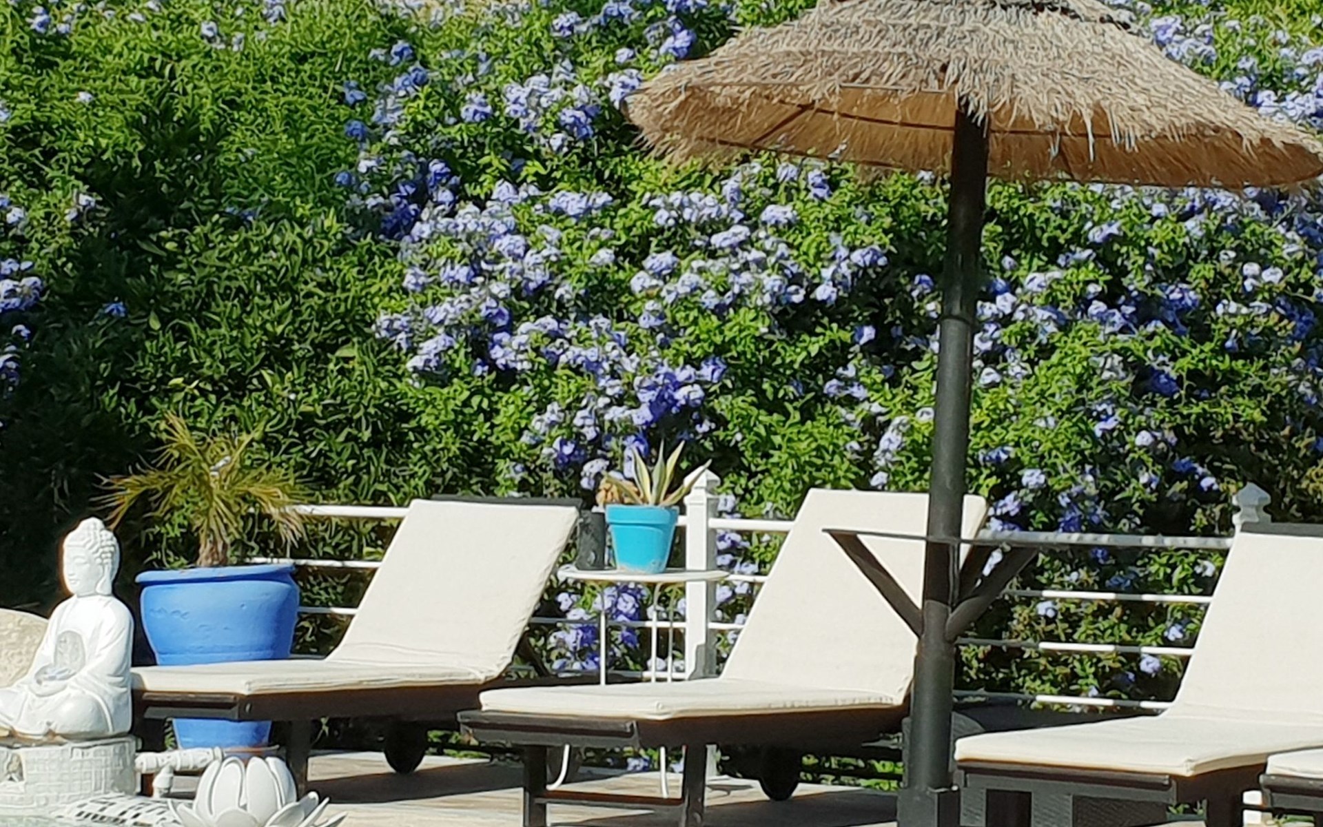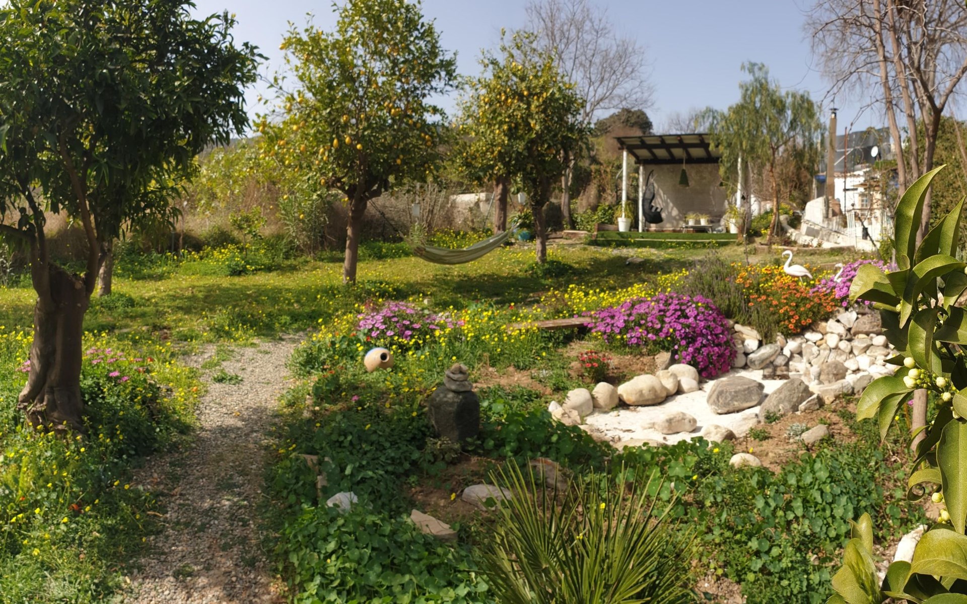 From the house you can see the pool area with terrace and sun loungers. The jacuzzi is integrated in the pool. There is also a barbecue area. The property is surrounded by citrus trees. The Guadalhorce flows only 100 metres from the house.