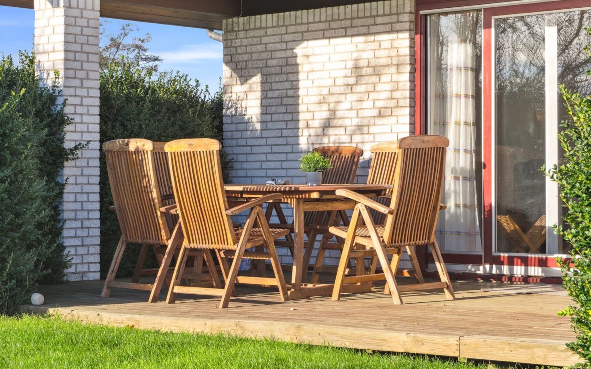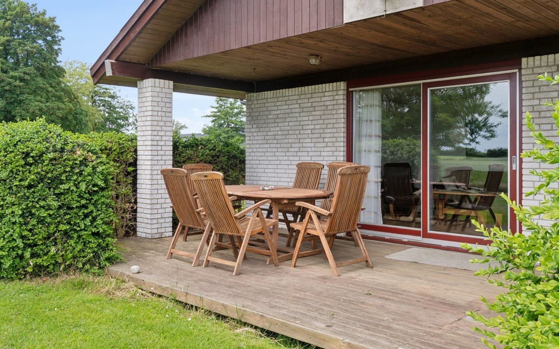 Built in 1987. 800 m from the sea. Private: property 1'132 m2, well-kept garden. Barbecue. In the house: washing machine. Parking at the house. Carport. Grocery 4.2 km. Golf course 750 m. The owner does not accept any youth groups.