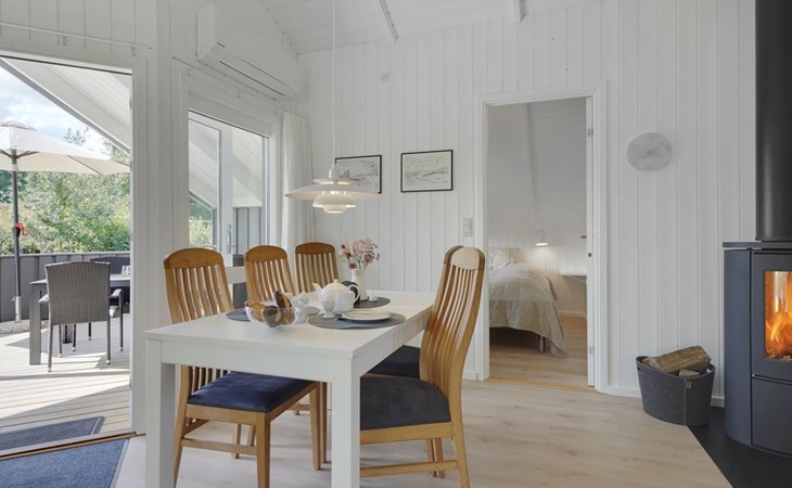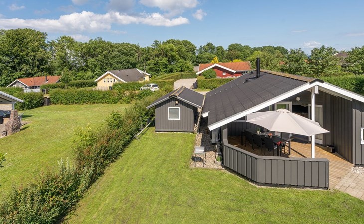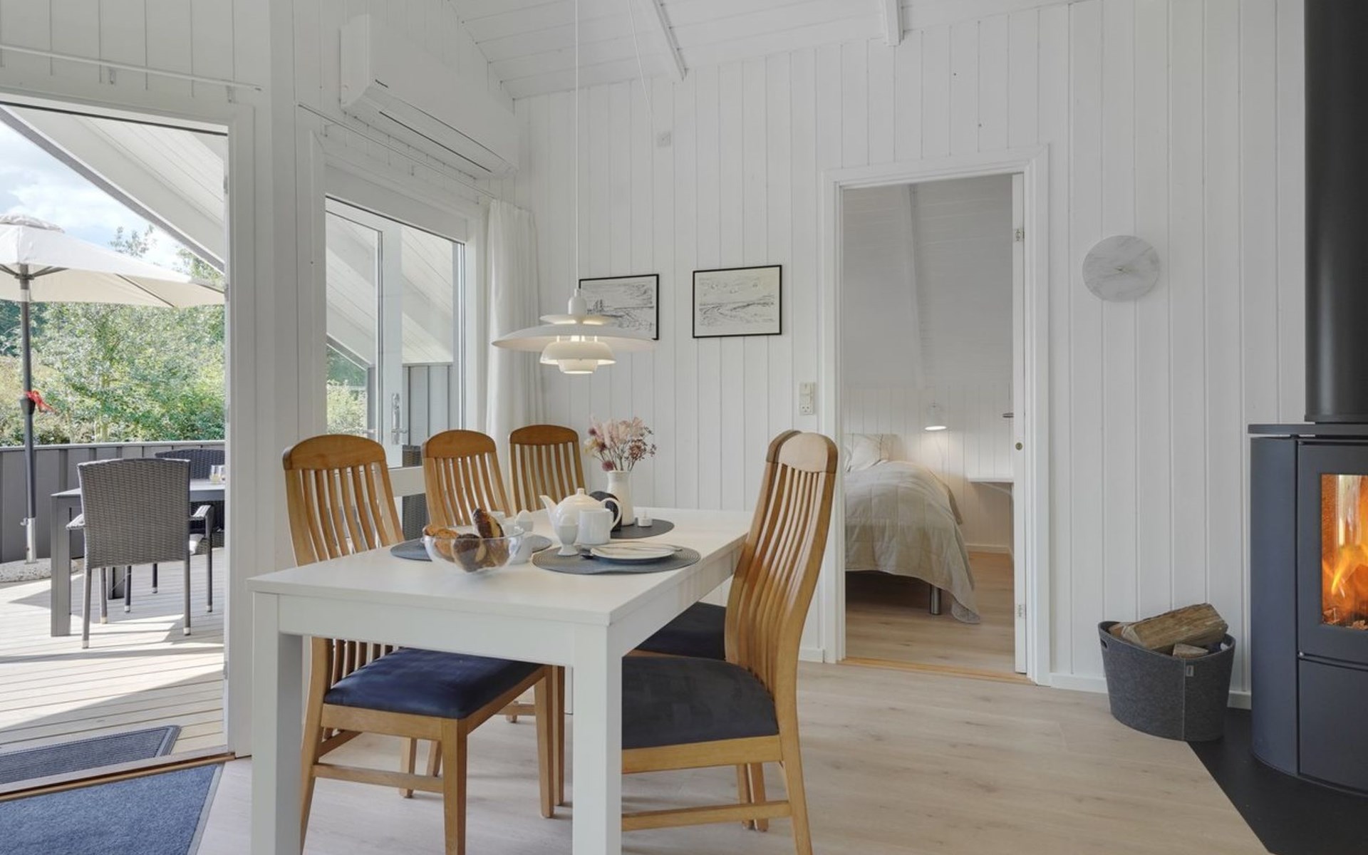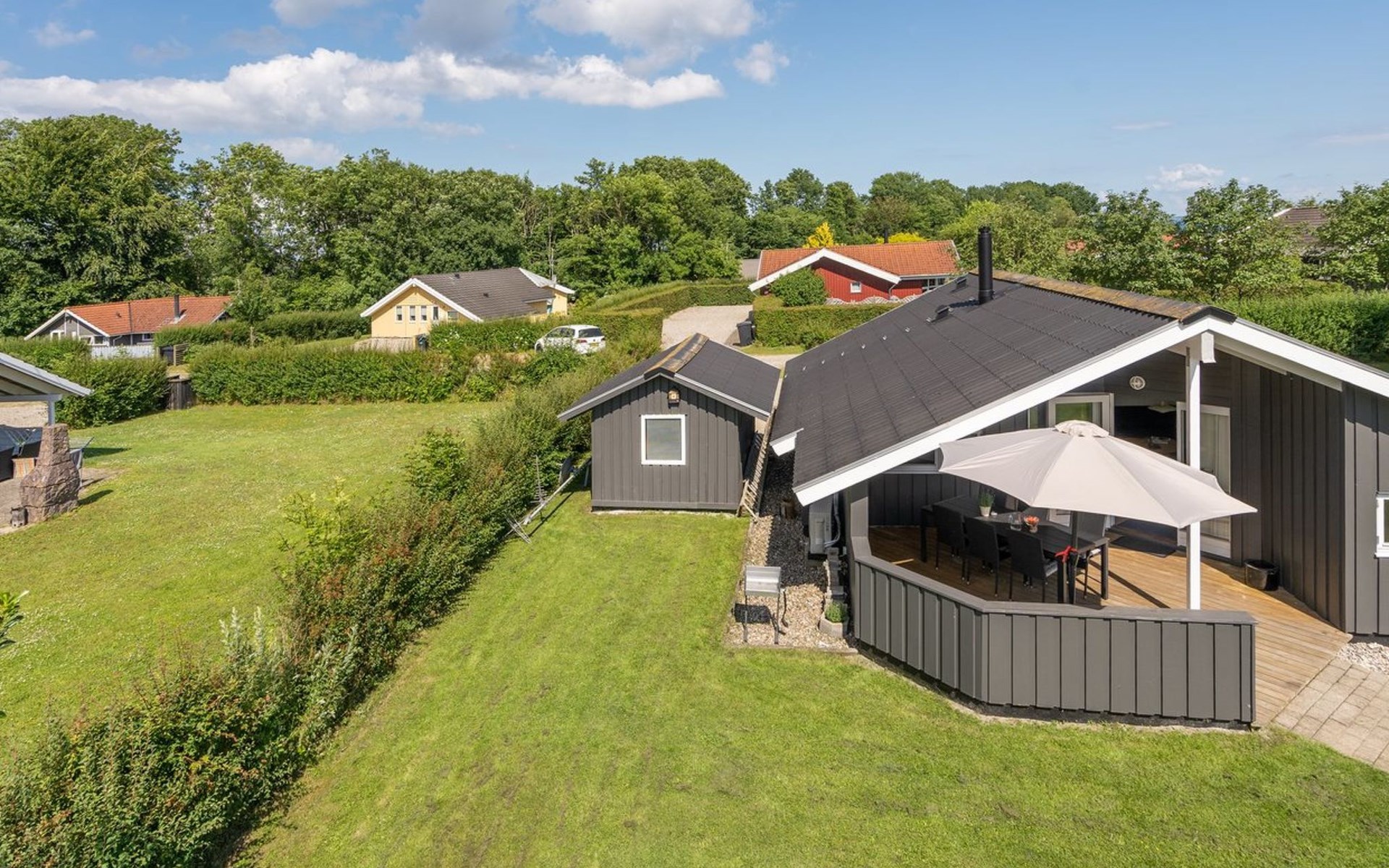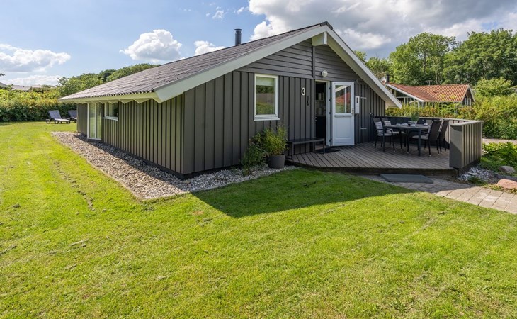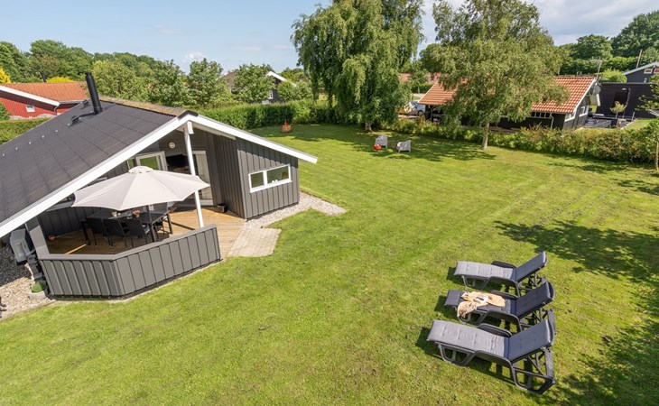 Single-family house, built in 1998. 300 m from the sea. Private: property 860 m2, well-kept garden. Terrace (50 m2), barbecue, children's playground. In the house: sauna, washing machine. Parking at the house. Grocery 4 km. Golf course 10 km. The owner does not accept any youth groups.