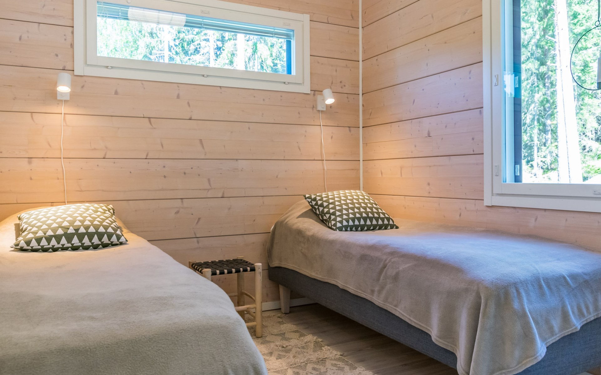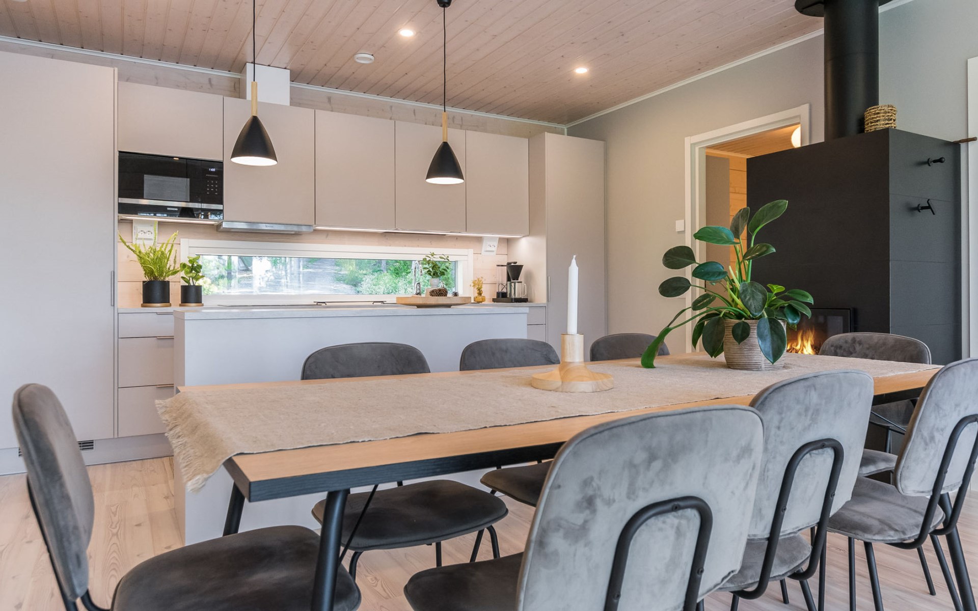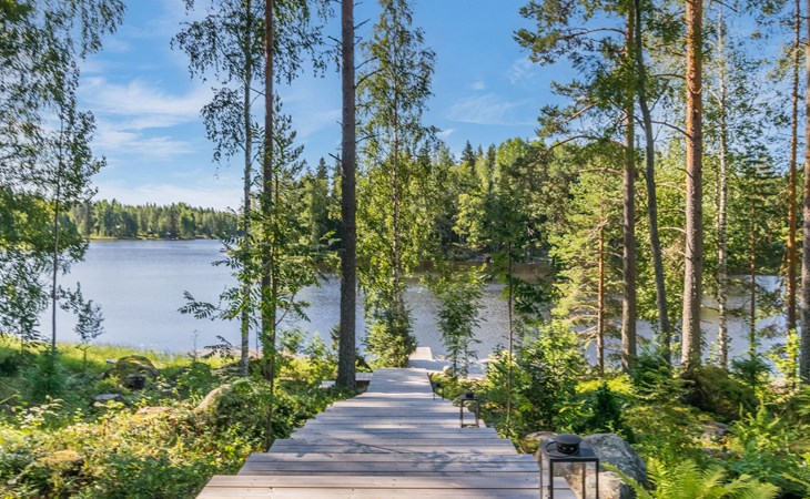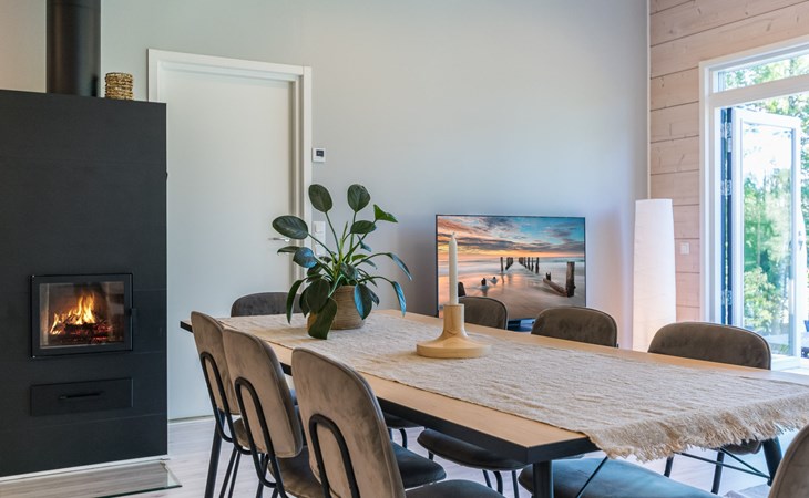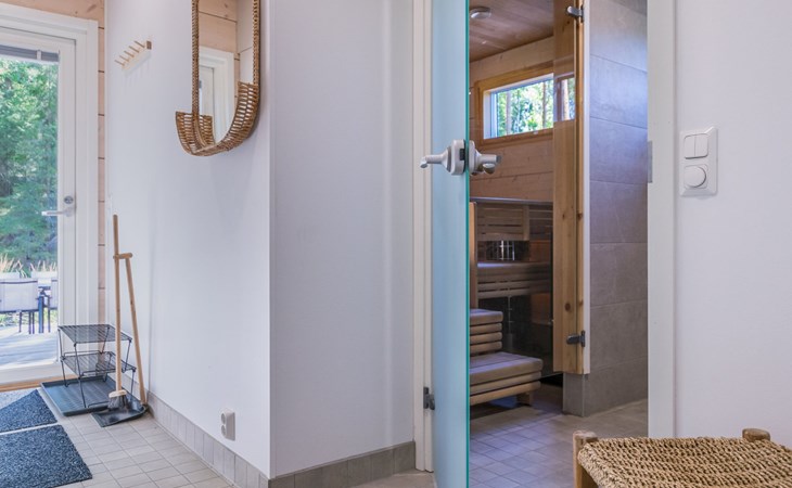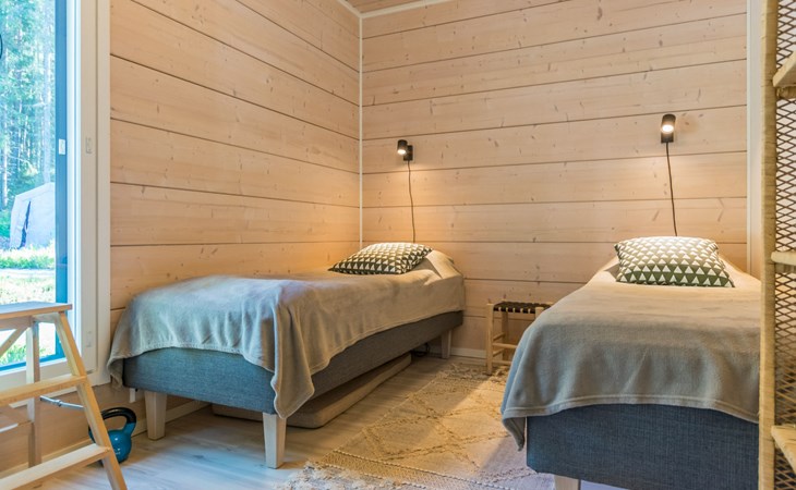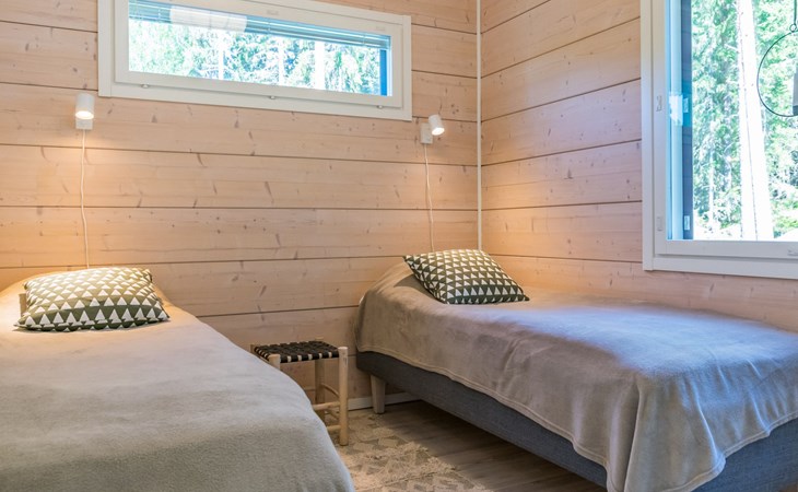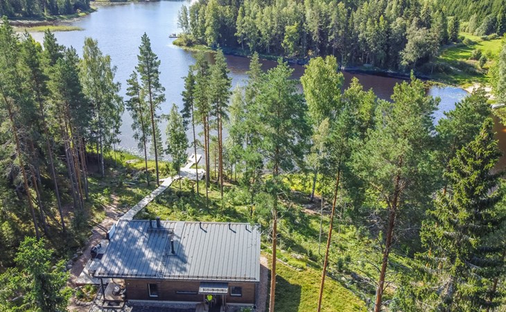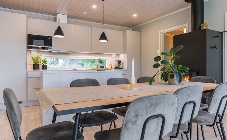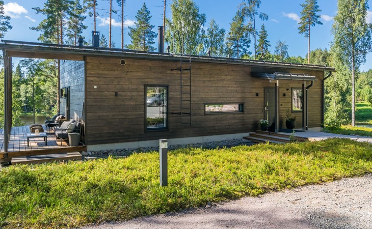 116 km north of Tampere, Lake Tarjanne 35 m, rapidly deepening gravel bottom, pier and own rowing boat. Wooden cottage (2021), spacious living room / kitchen-living room, spacious dining area with seating for eight people. The living room has a fireplace, TV and sofa group. The cottage has three bedrooms. Bedroom 1. double bed, bedroom 2 two beds, bedroom 3 two beds. In addition, the sofa in the living room can be used as an extra bed measuring 140x200 cm for two people. The cottage has a utility room with a washing machine. The sauna has both a wood-burning and an electric heater, two showers.