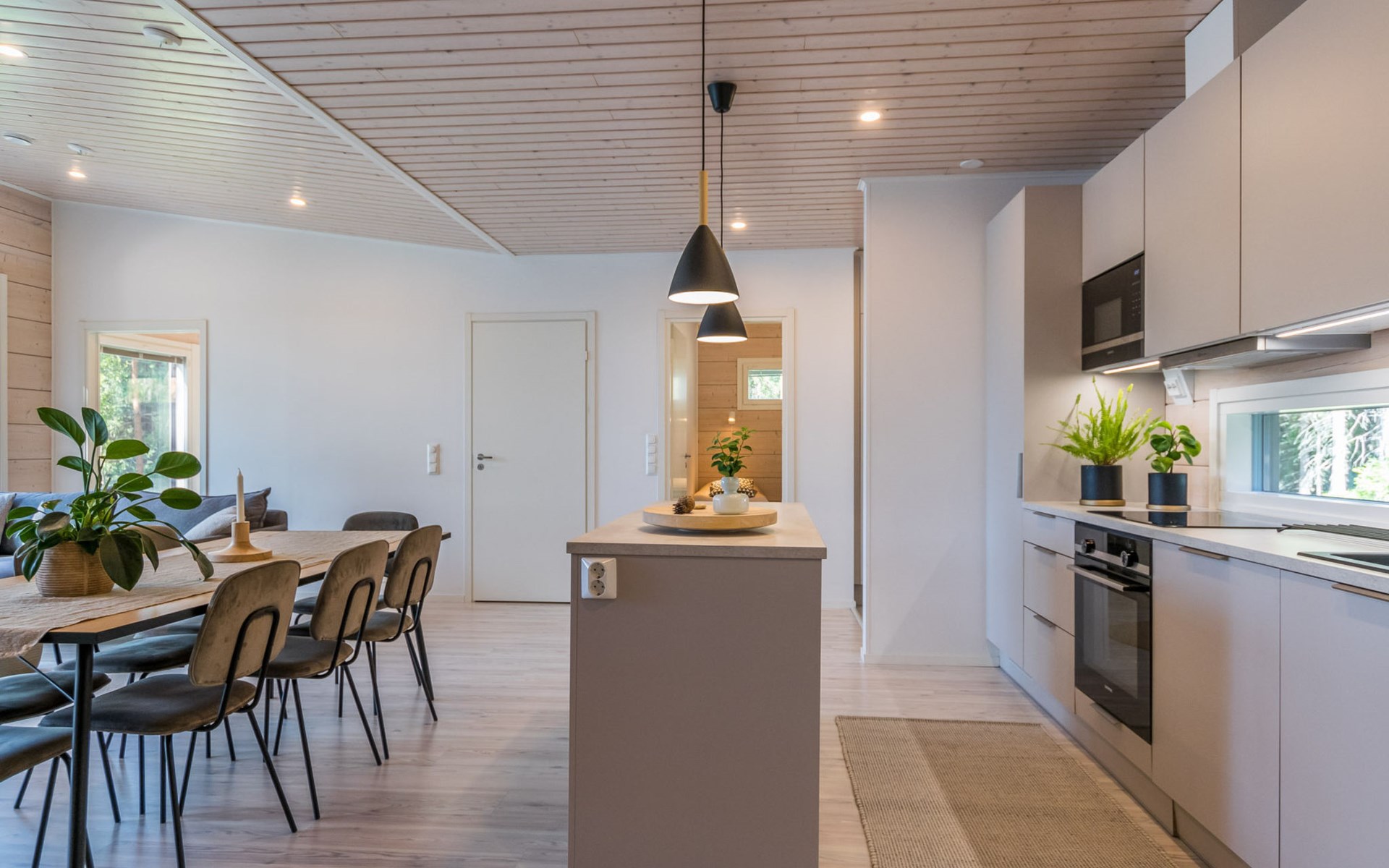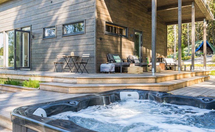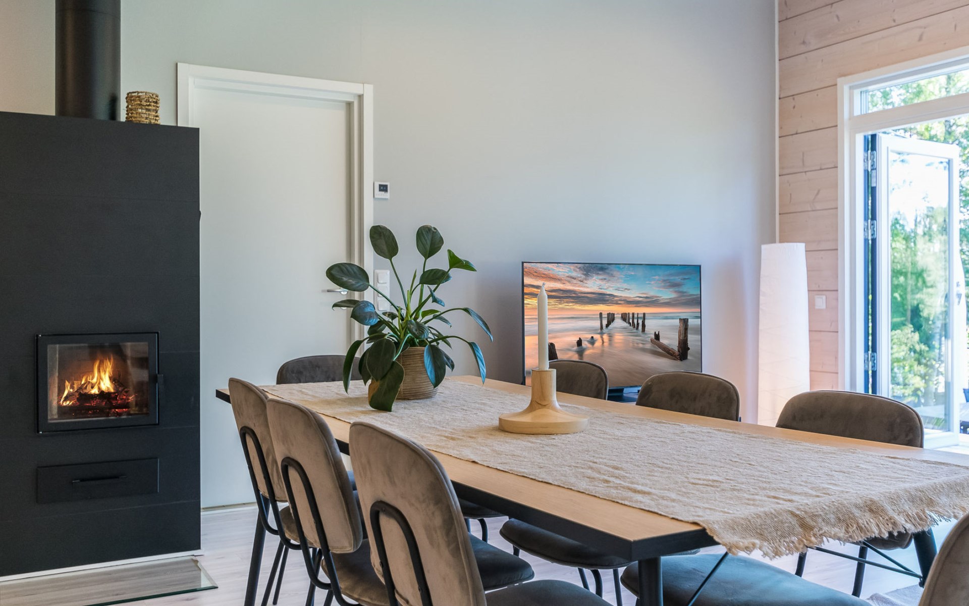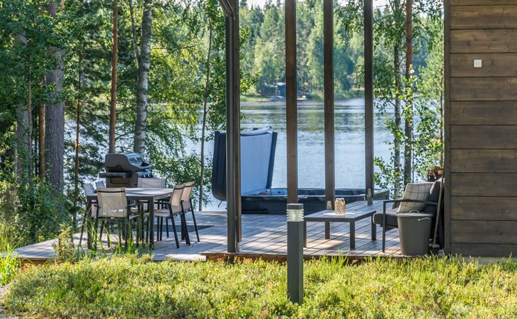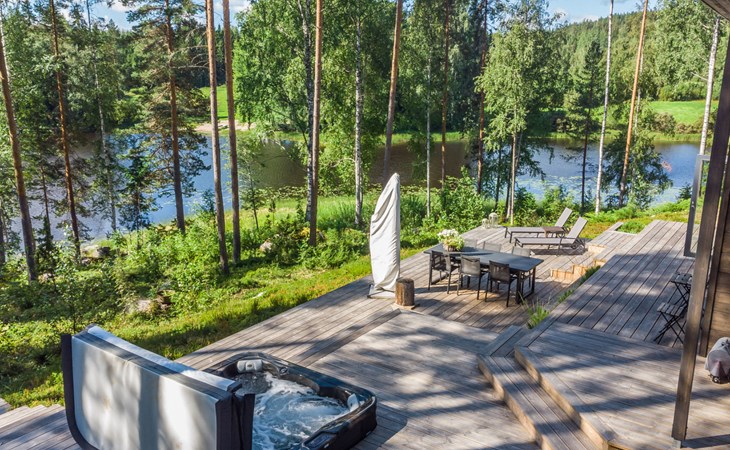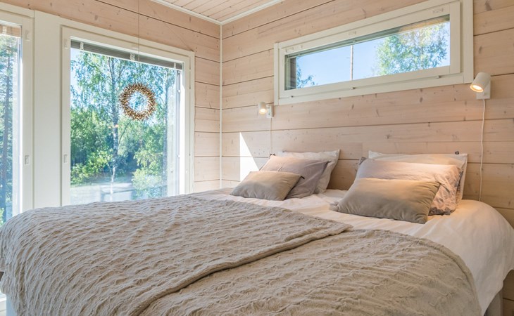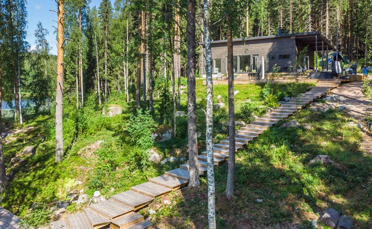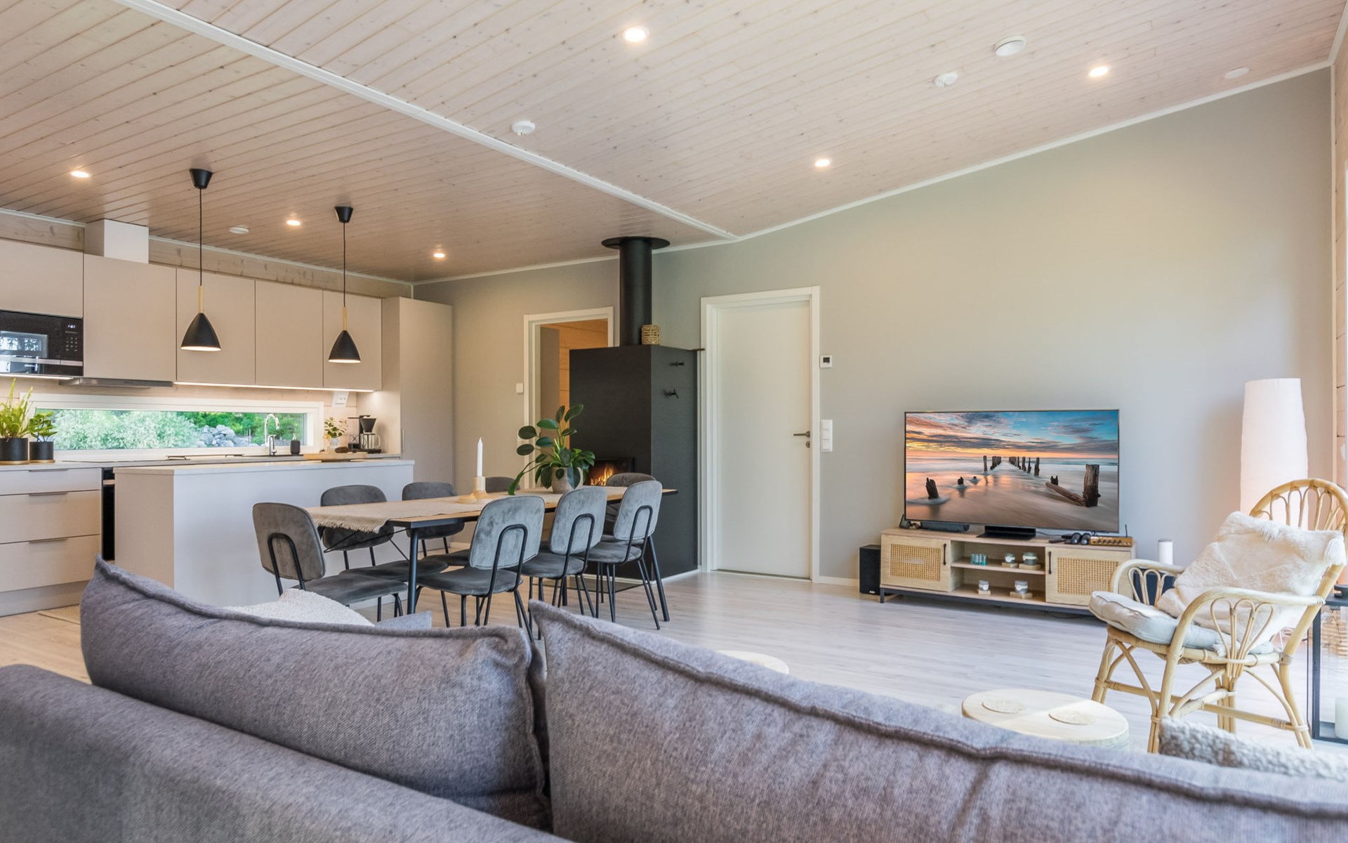 116 km north of Tampere, Lake Tarjanne 35 m, rapidly deepening gravel bottom, pier and own rowing boat. Wooden cottage (2021), spacious living room / kitchen-living room, spacious dining area with seating for eight people. The living room has a fireplace, TV and sofa group. The cottage has three bedrooms. Bedroom 1. double bed, bedroom 2 two beds, bedroom 3 two beds. In addition, the sofa in the living room can be used as an extra bed measuring 140x200 cm for two people. The cottage has a utility room with a washing machine. The sauna has both a wood-burning and an electric heater, two showers.