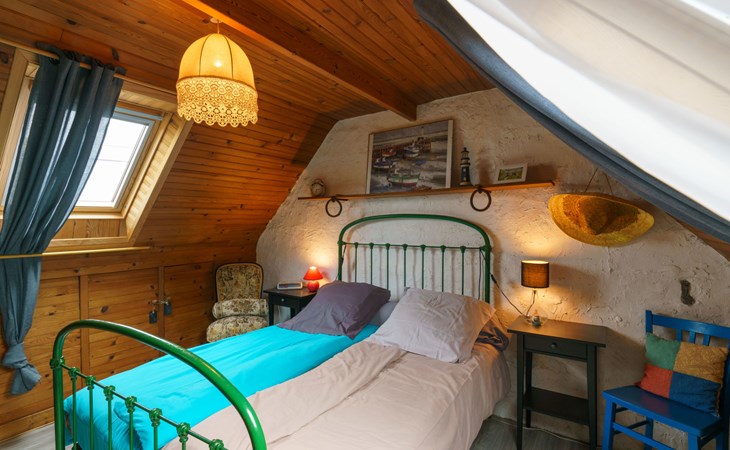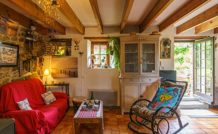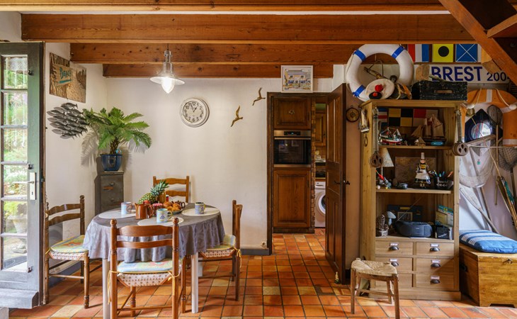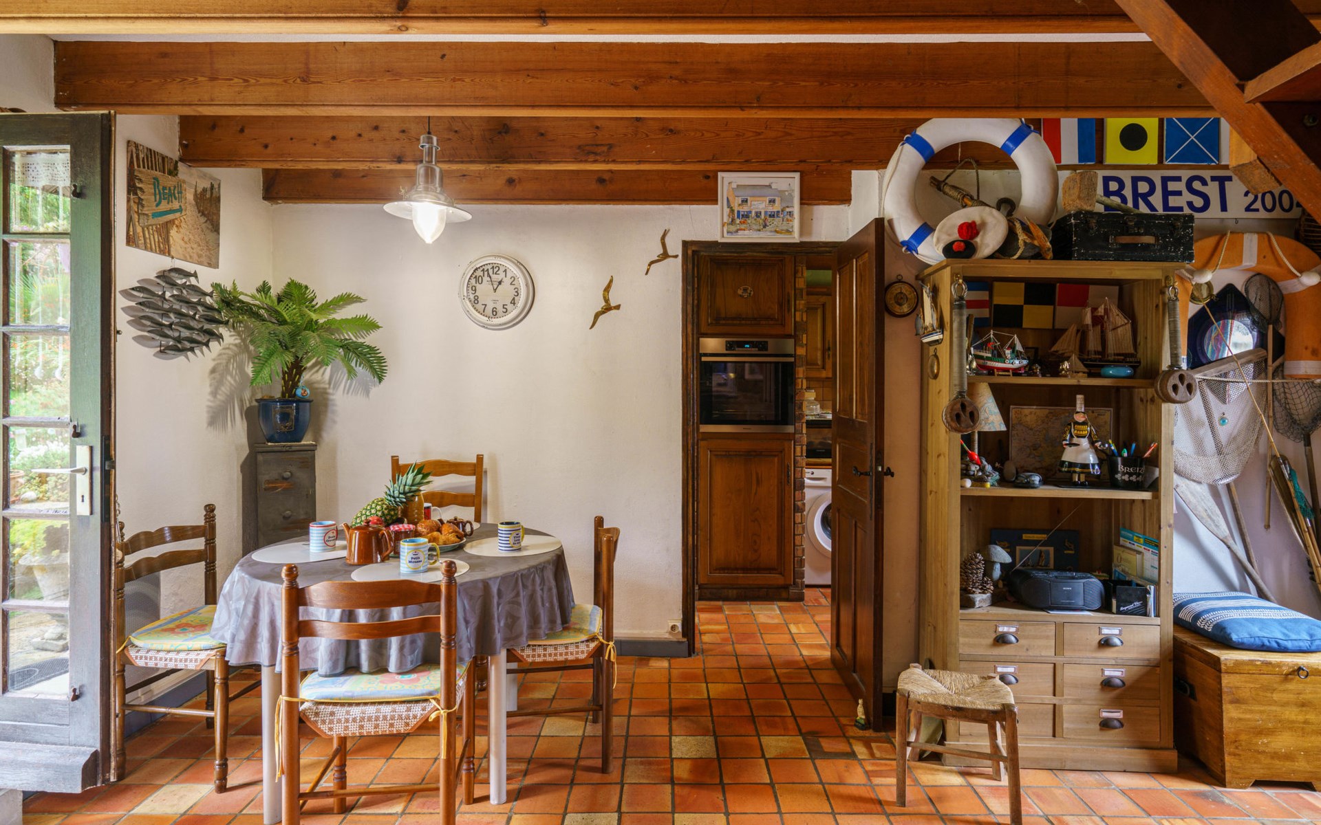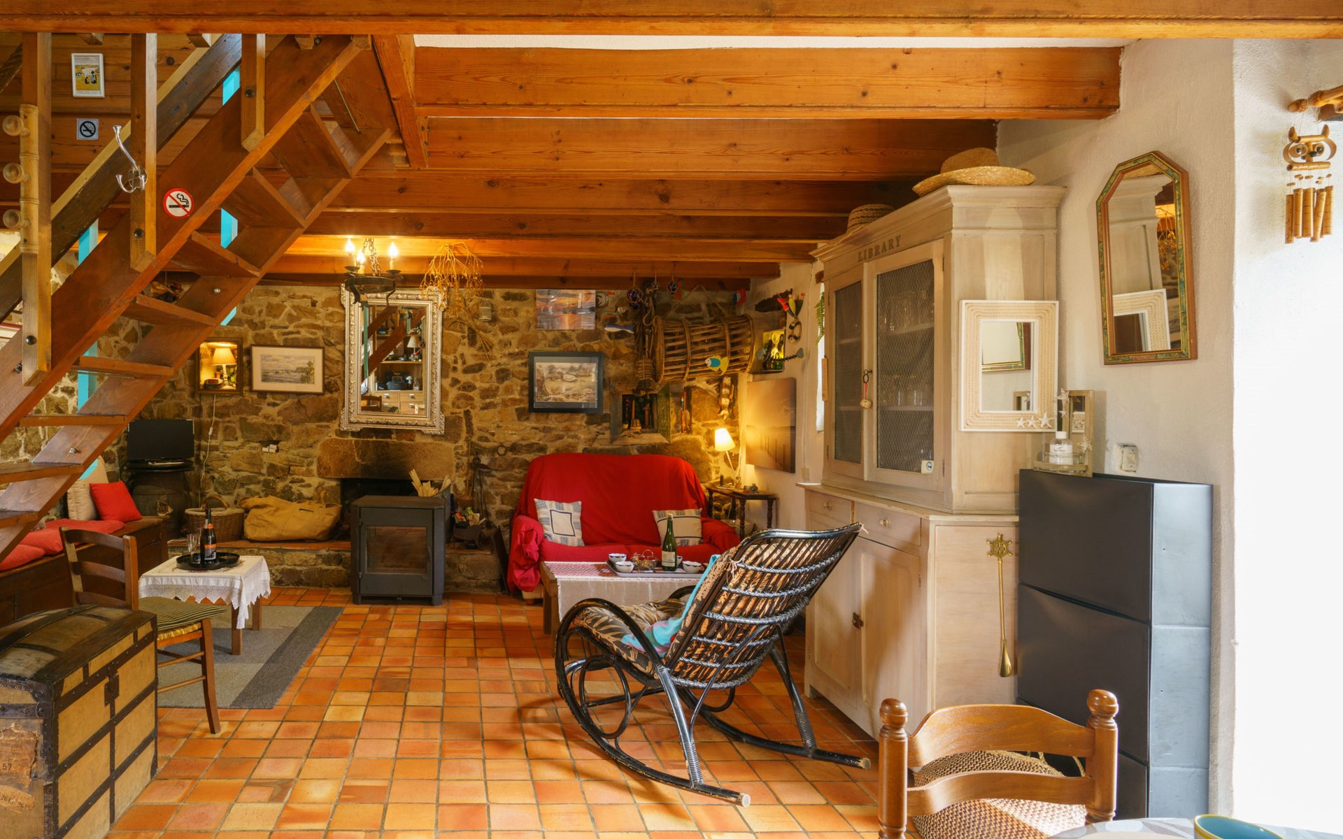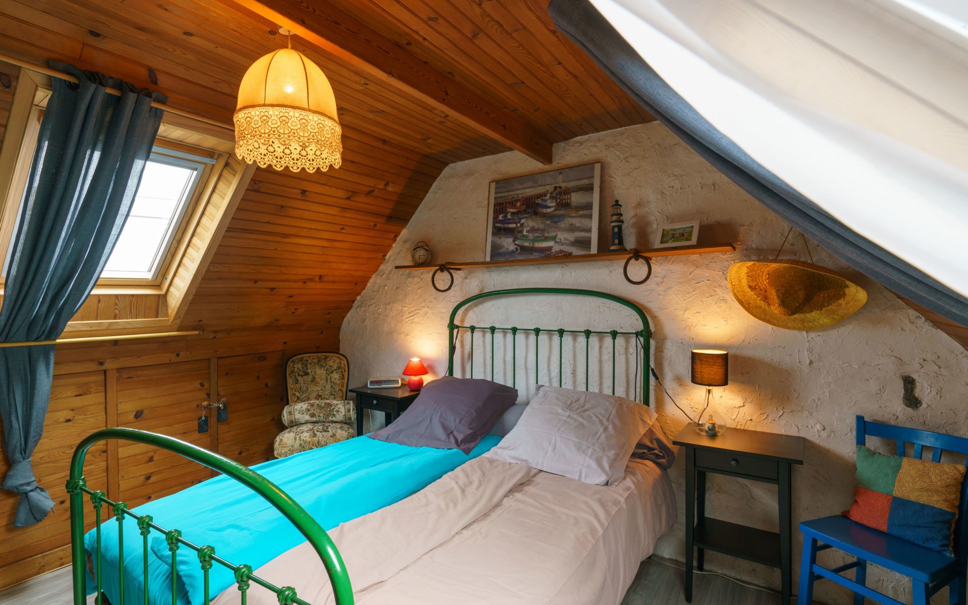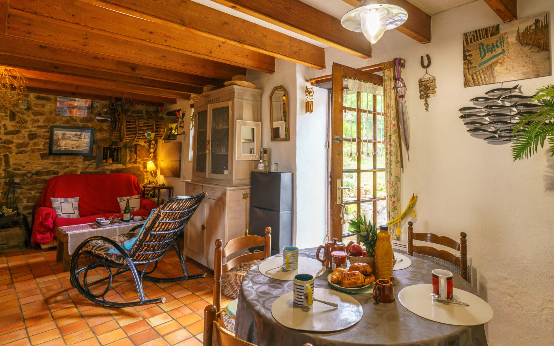 Single-family house "Ti Maen". In the hamlet Kerabars, outside the resort, 5 km from the centre of Crozon, in a quiet position, 400 m from the sea, 700 m from the beach, in the countryside. Private: garden 200 m2 (fenced) with lawn and flowers, public parking 50 m. Shop 5 km, grocery 5 km, supermarket 5 km, restaurant 5 km, bus stop 5 km, sandy beach 700 m, outdoor swimming pool 7 km. Sports harbour 5 km, surf school 2.3 km. Nearby attractions: Quimper 70 km, plage naturistes Lostmarc'h 1.5 km, le palue 2 km. Please note: car recommended.