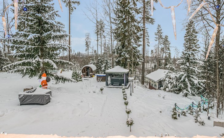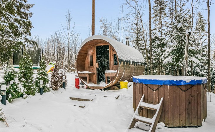 The hot tub is available year-round for an extra charge, with a freezing limit of -15 degrees Celsius. Grocery 3 km, Saaren uimaranta beach (by Lake Hunttijärvi) 4.7 km, Mäntsälä 15 km, Helsinki 75 km.