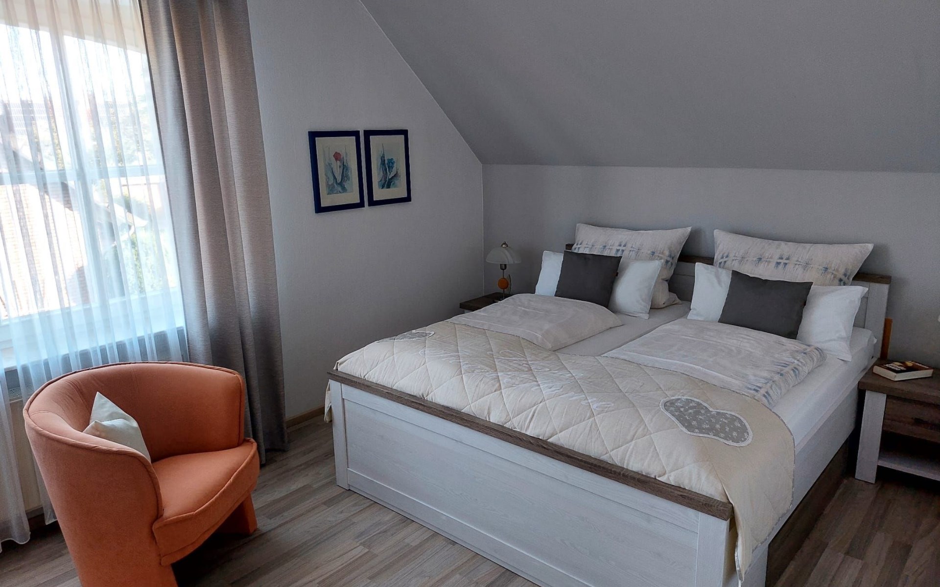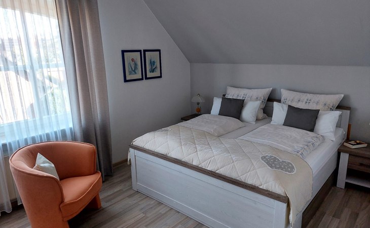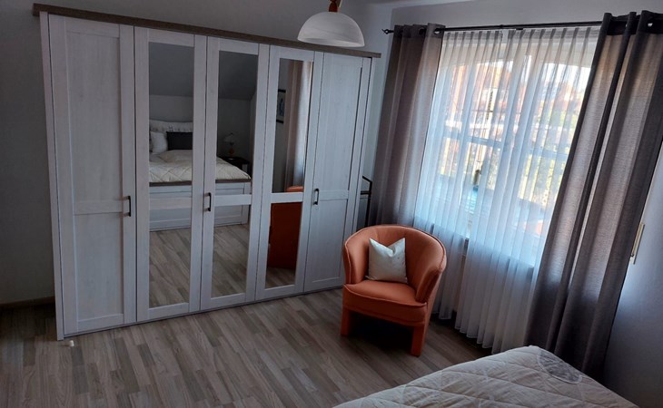 The apartment for two to three people provides ample space for a relaxing holiday. It has a modern and charming interior, with stylish accessories and a pleasant atmosphere. It has a bedroom with a double bed with adjustable slatted frames, and a large wardrobe for storing your clothing. The windows are fitted with blinds for an undisturbed night’s sleep. The single room with a wardrobe, bedside table and bookshelf also provides board games and reading material, as well as a radio and CD player. The big, light bathroom has a shower and a bath, where you can relax. The living room with an adjoining balcony is comfortably furnished. The built-in kitchen unit is equipped with a dishwasher, microwave, toaster, egg boiler, coffee machine and all cooking utensils. The living space totals 85m². Wireless Internet access, cable TV, a stereo system and a DVD player are provided. You can share use of a washing machine and dryer.