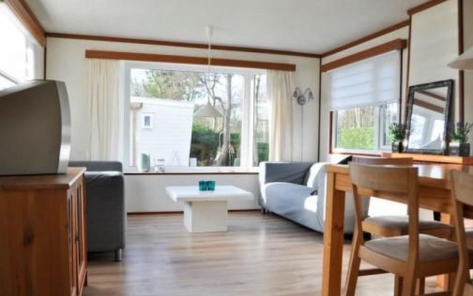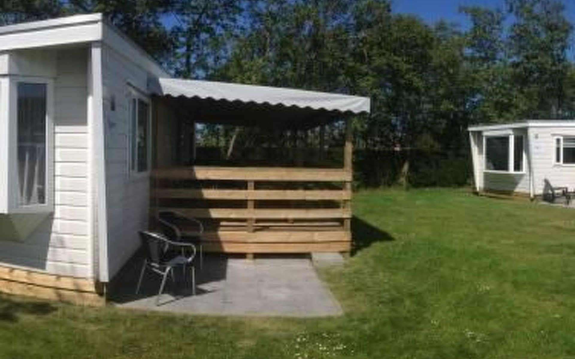 A children’s bed and highchair are available. If it is colder, you can use the gas or electric heating. There are two chalets next to each other.
