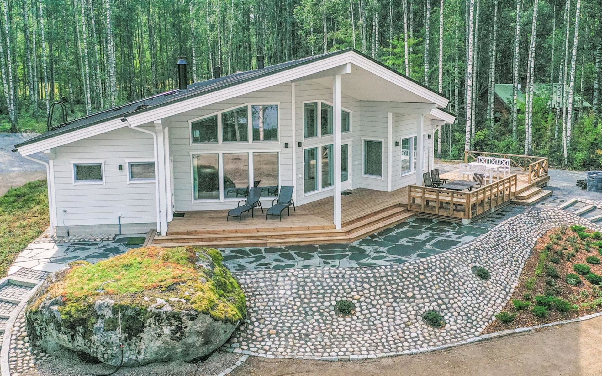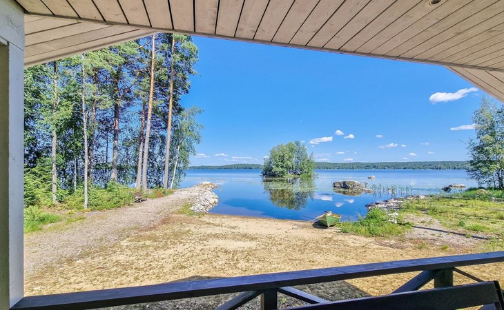 Log villa 111 m² (built 2022), three bedrooms. Bedroom 1: double bed (motor bed 180x200 cm), bedroom 2: two beds, bedroom 3: spreadable bed, the size of which when assembled is 80x200 cm and when spread out is 160x200 cm. In addition, in the summer there are two beds in the log sleeping shed. The lakeside sauna is available from the 1st of May to the 30th of August.