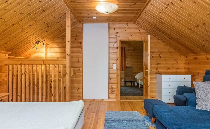 Log chalet 2005, kitchen, living room 2 extra beds (= convertible sofa/ bed), 2 bedrooms 2 beds in each, sleeping loft 2 beds and 2 extra beds (= convertible sofa/ bed), washroom, dressing room, sauna, open porch and balcony.