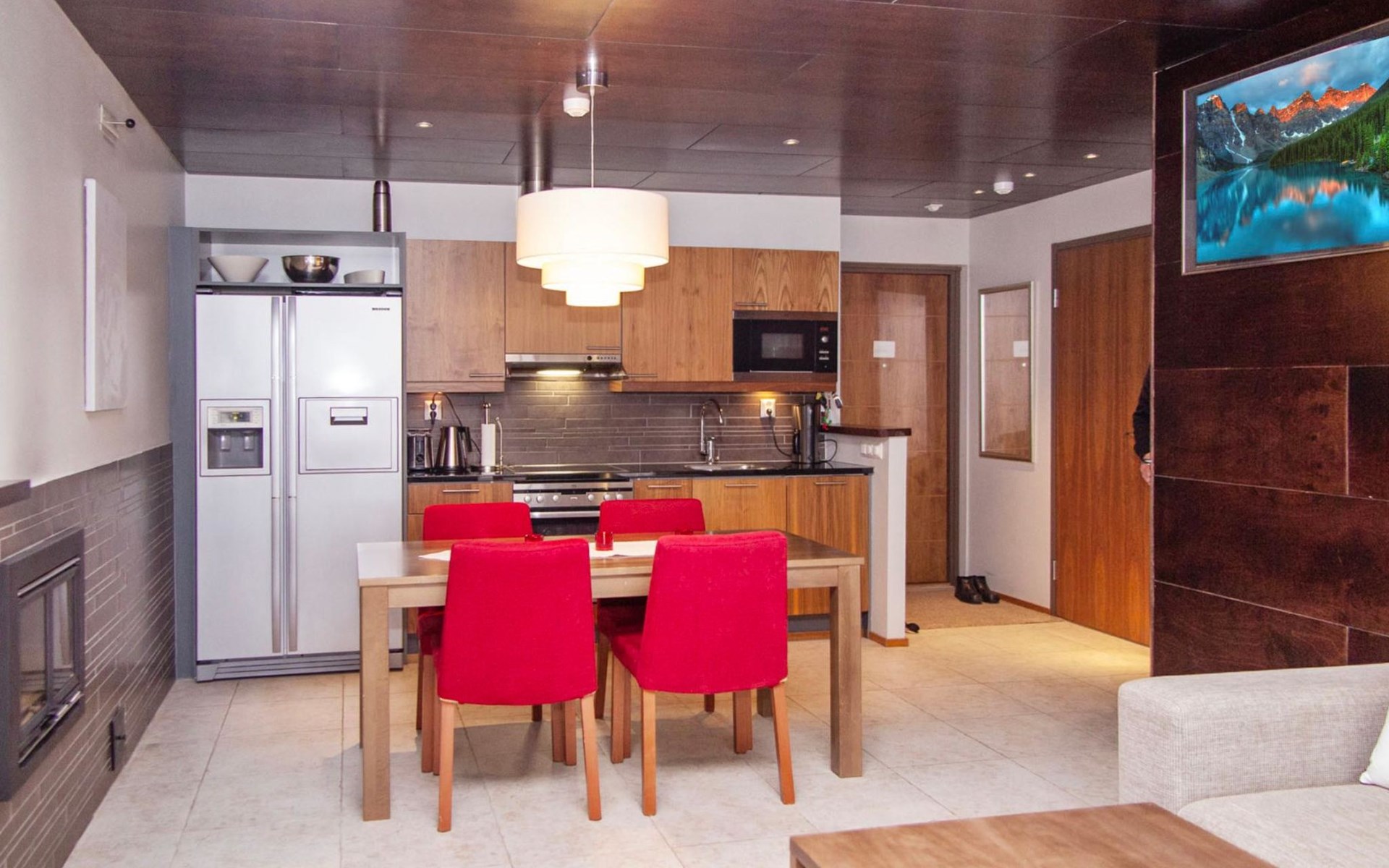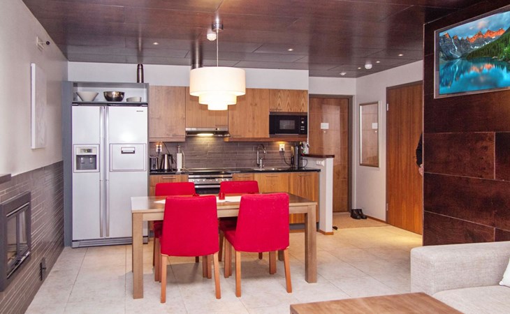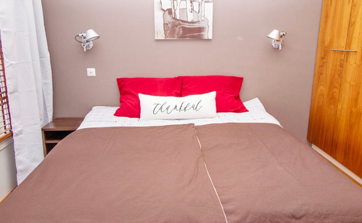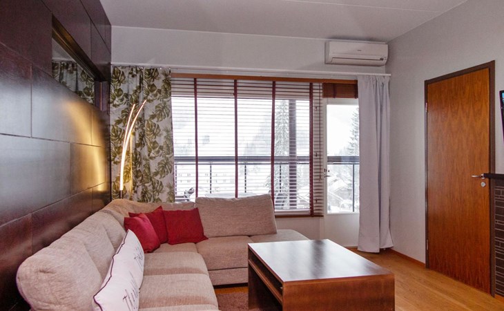 Apartment has comfortable living room with open plan kitchen. In the living room sofa bed 2 extra beds. Bedroom with 2 separate beds, bedroom has a small shower and WC. Air-source heat pump in use only in summer time.