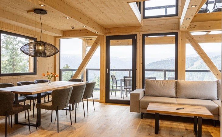 Turracher Höhe: Modern, comfortable resort "Naturchalets Turracher Höhe by Alps", 1'700 m a.s.l.. 10 km from the centre of Ebene Reichenau, in a quiet, sunny position on a slope, 2 km from the skiing area. In Winter: please take snow chains. Parking at the house. Supermarket 8 km, bus stop "Predlitz" 20 km, railway station "Predlitz" 20 km. Skisport facilities 2 km, ski rental 2 km, ski school 2 km, cross country ski track 2 km. Well-known ski regions can easily be reached: Turracher Höhe.