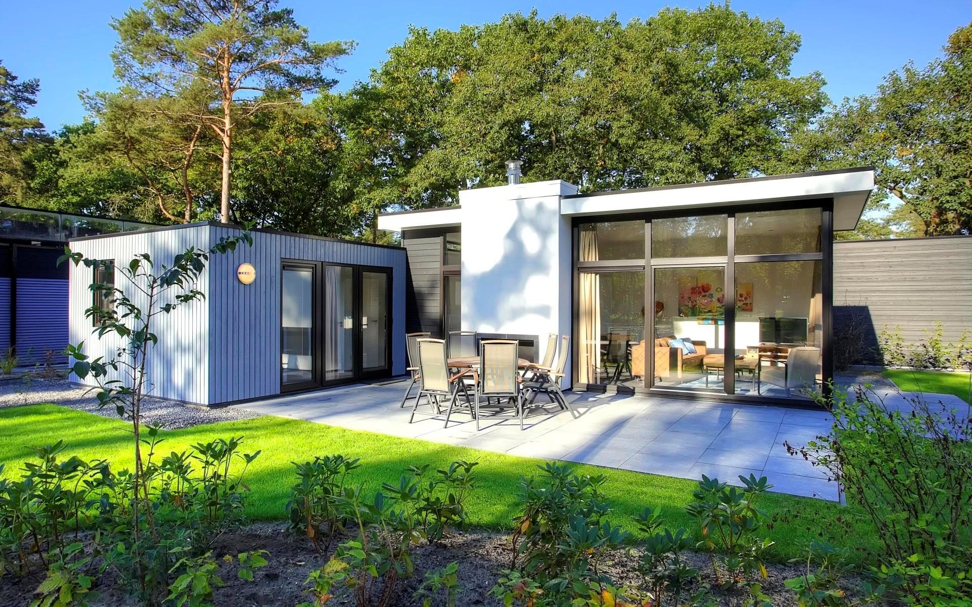 The L-Cube 4 has a modern and robust appearance with a warm interior. The detached, single-storey chalet is built in an L-shape and can accommodate 6 people. Thanks to the high ceiling and large windows there is a lot of light. In the spacious living area you will find a sitting area, television and an atmospheric fireplace. The open kitchen is equipped with a dishwasher, electric kettle, combination microwave and a Nespresso Machine. There are 2 bedrooms in total, each with 2 single beds. There is also a bathroom with a spacious walk-in shower and toilet. Through the sliding doors in the living room you can reach the sun terrace with garden furniture. You can park 1 car at the house and there is free Wi-Fi available.