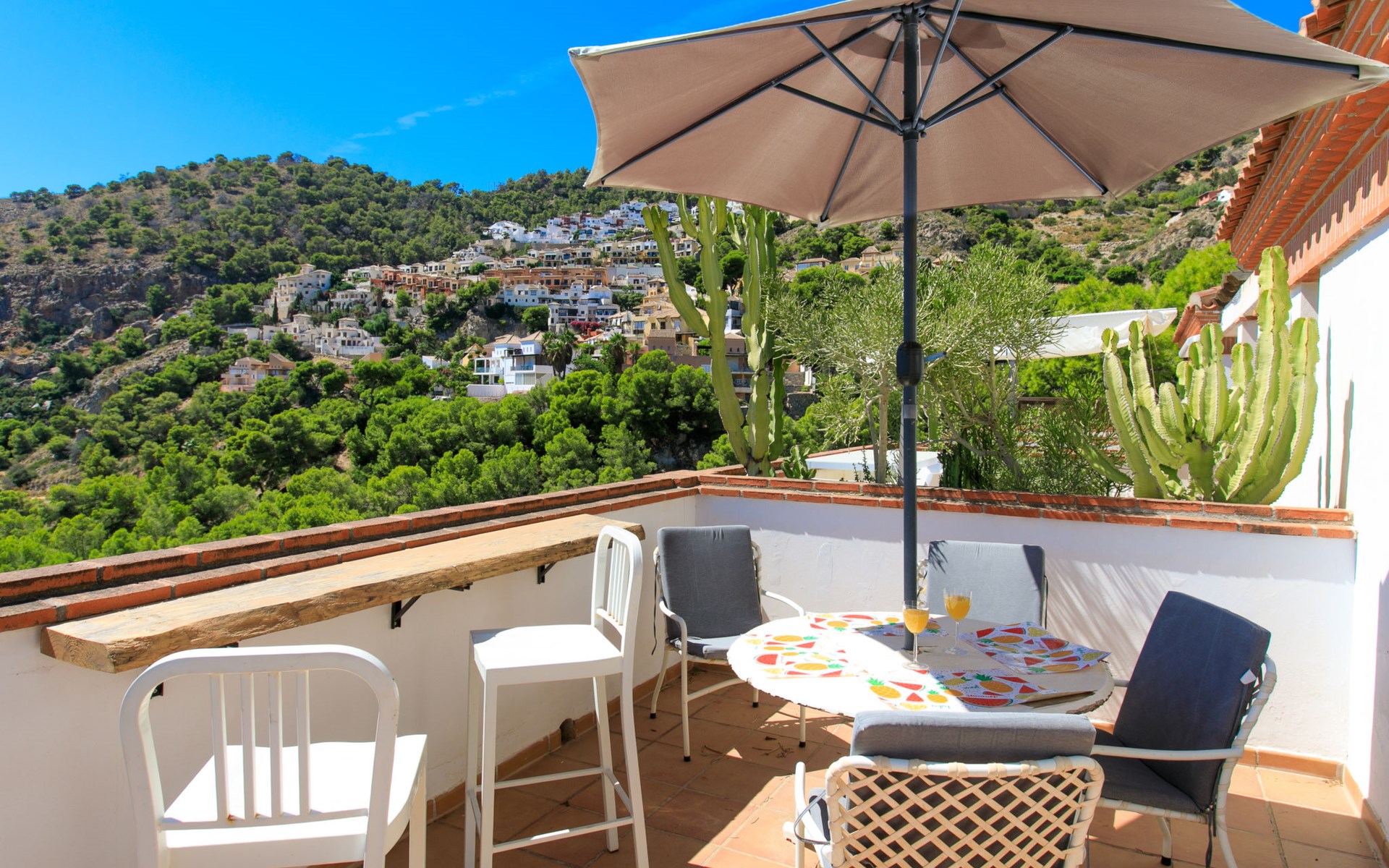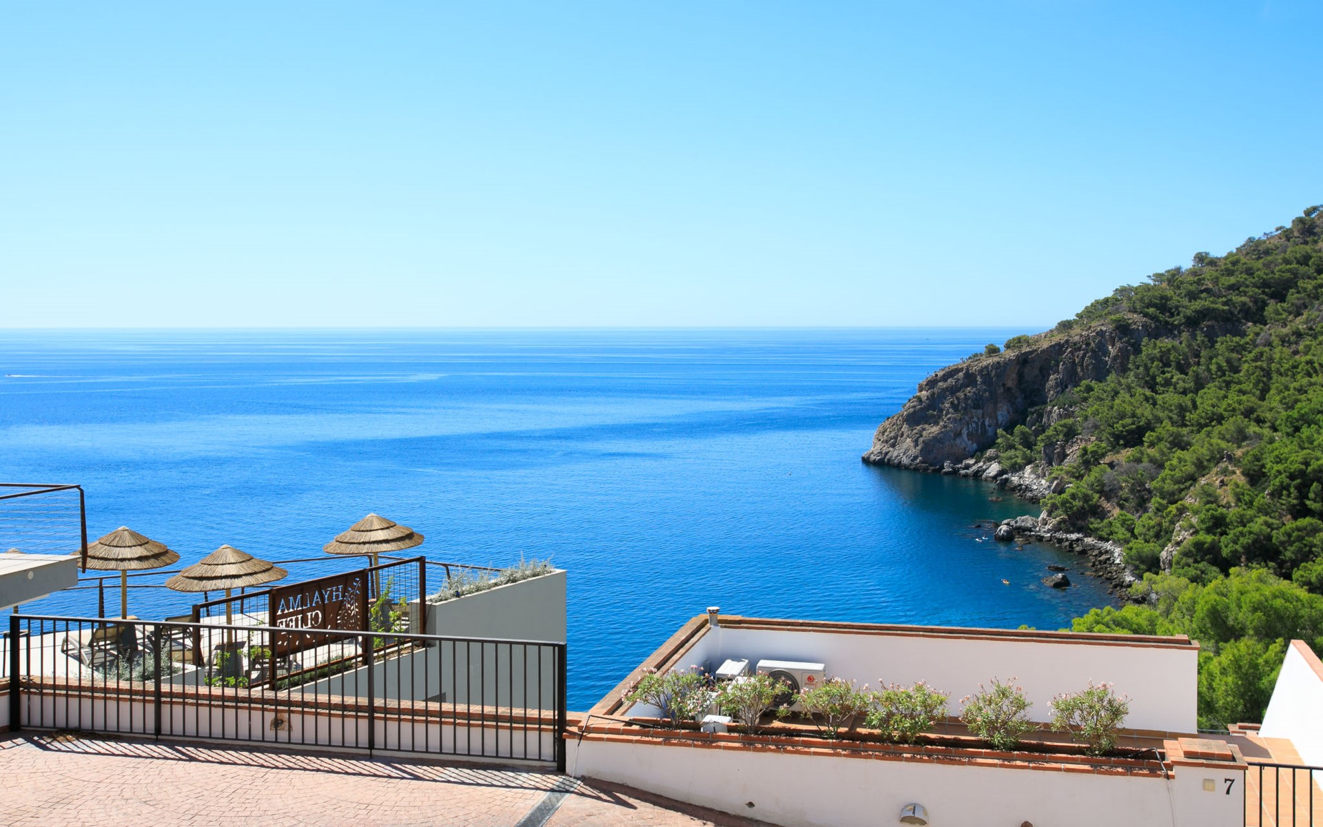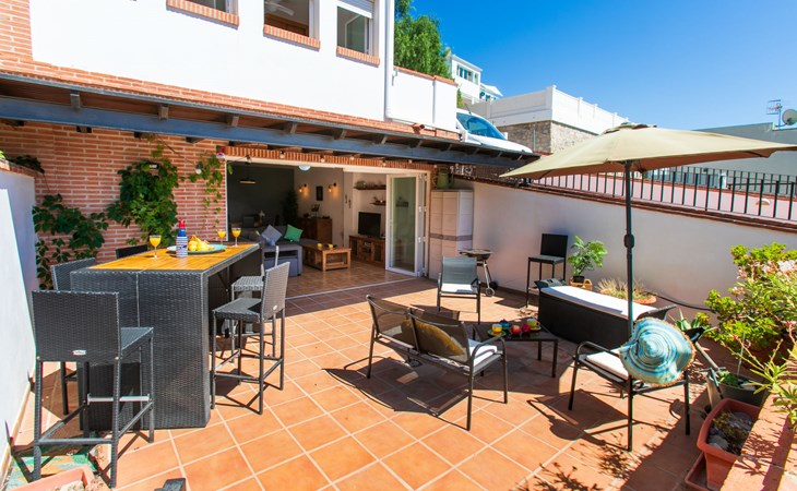 La Herradura: Beautiful, cosy semi-detached house "La Herradura Amazing View". On the outskirts, 400 m from the centre of La Herradura, at the seaside, 400 m from the beach. For shared use: swimming pool (4 x 4 m, depth 100 - 175 cm, seasonal availability: 01.Jan. - 31.Dec.). Shop, restaurant, bakery, café 400 m, bus stop 300 m, pebble beach "La Herradura", diving center 400 m. Sports harbour 4.3 km, marina 4.3 km, golf course (18 hole) 38 km, sailing school 600 m. Nearby attractions: Aquatropic, Acuario de Almuñecar, Loro Sexi, Castillo de Almuñecar, Acantilados de Maro, Cuevas de Nerja. Well-known ski regions can easily be reached: Sierra Nevada. Hiking paths: Sierra Tejeda, Sierra Almijara, Las Alpujarras. The owner does not accept any youth groups. Please note: Loading and unloading of baggage is possible at the holiday house.