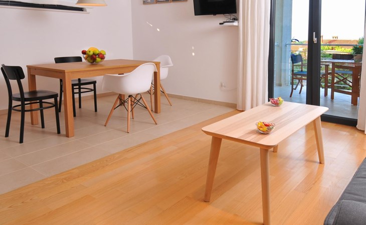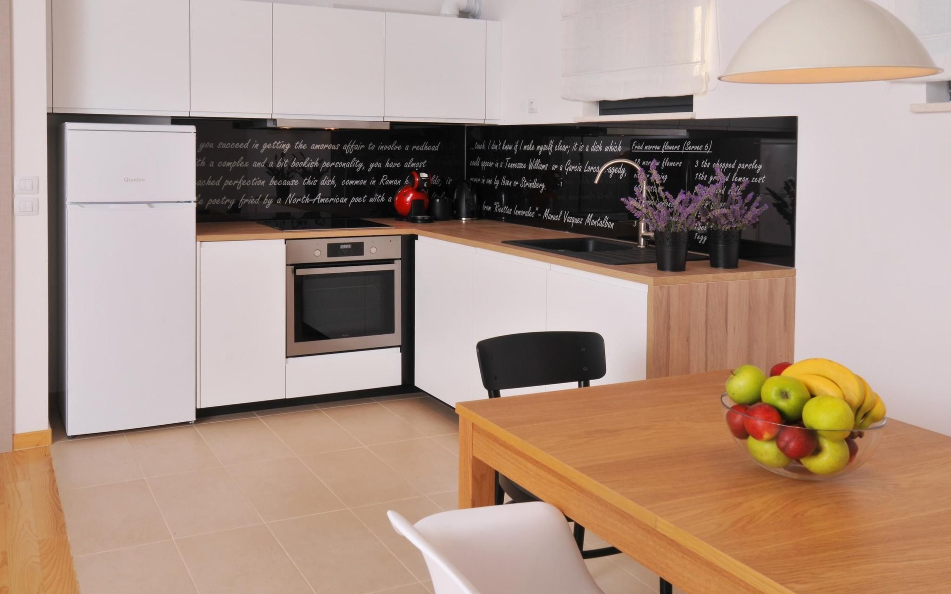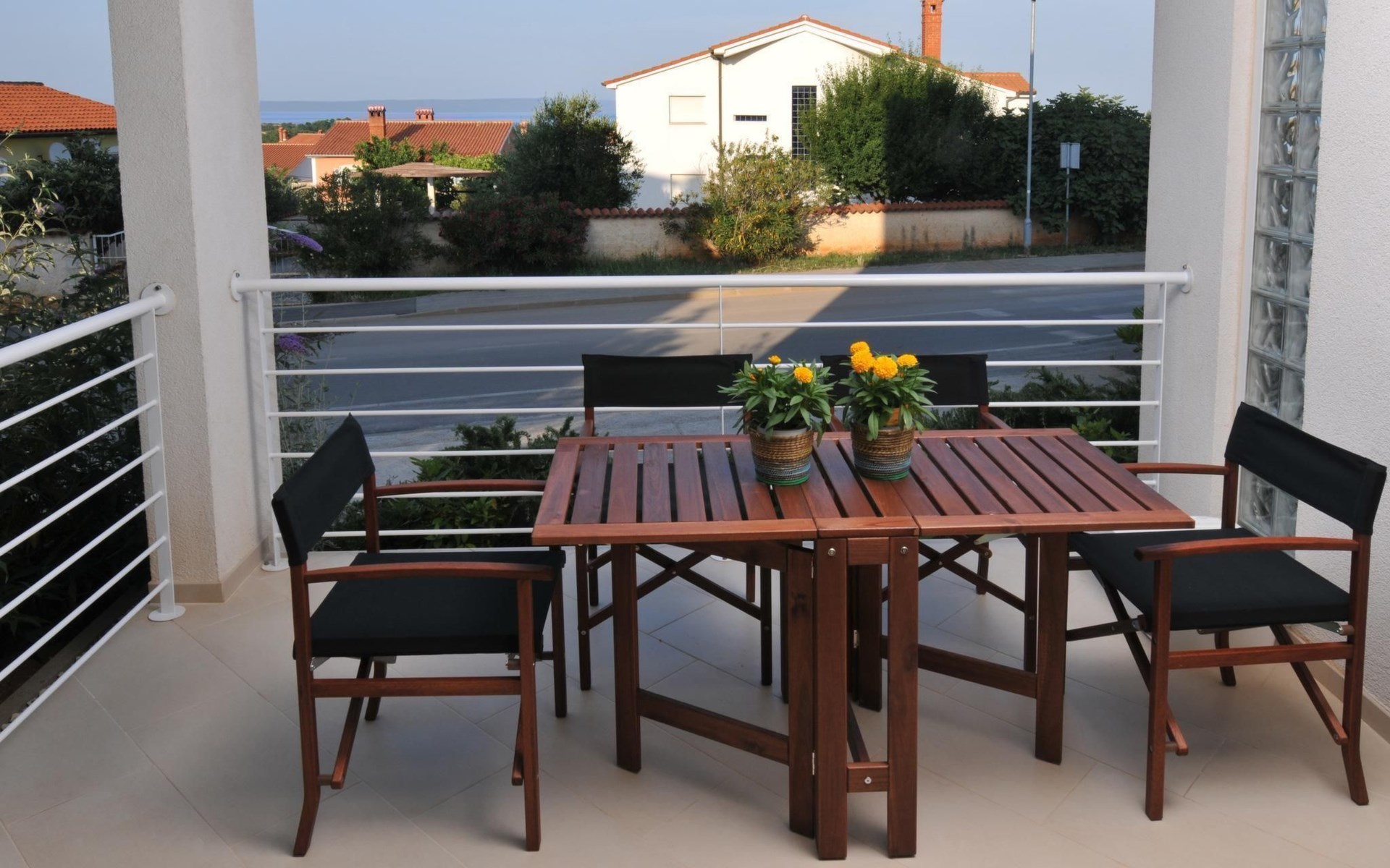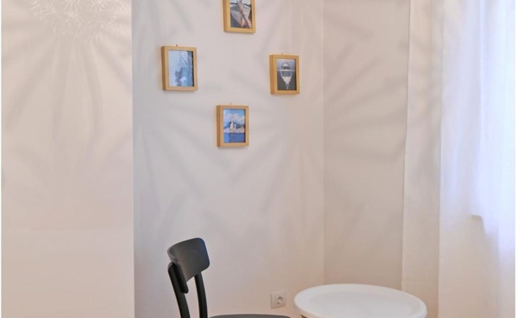 The balcony is furnished with a table and chairs. It is ideal for relaxing or dining, while enjoying the view.