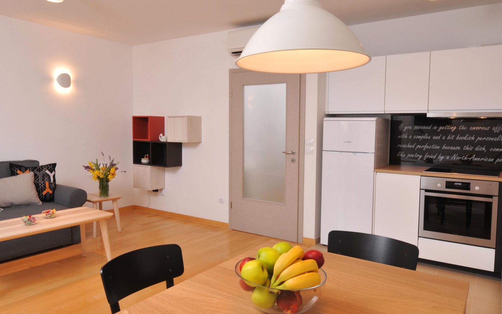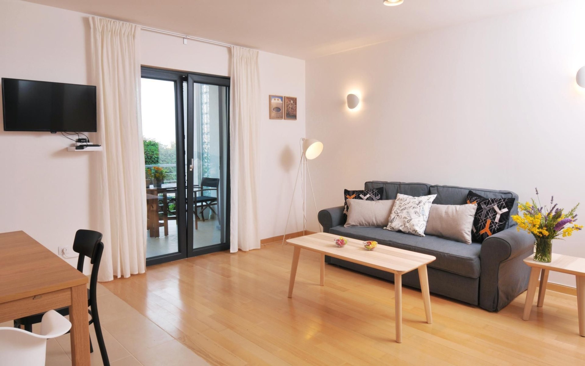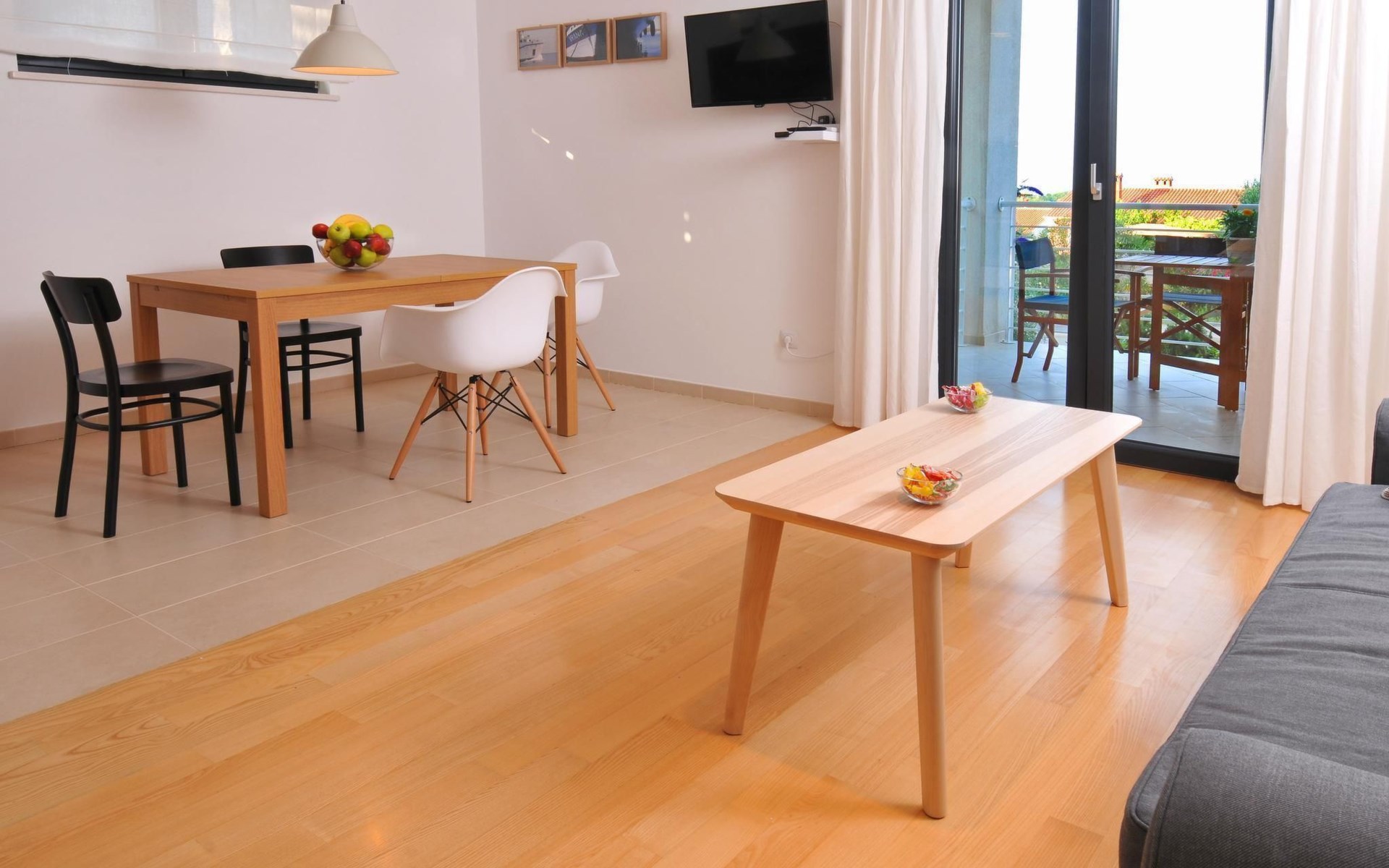 The balcony is furnished with a table and chairs. It is ideal for relaxing or dining, while enjoying the view.