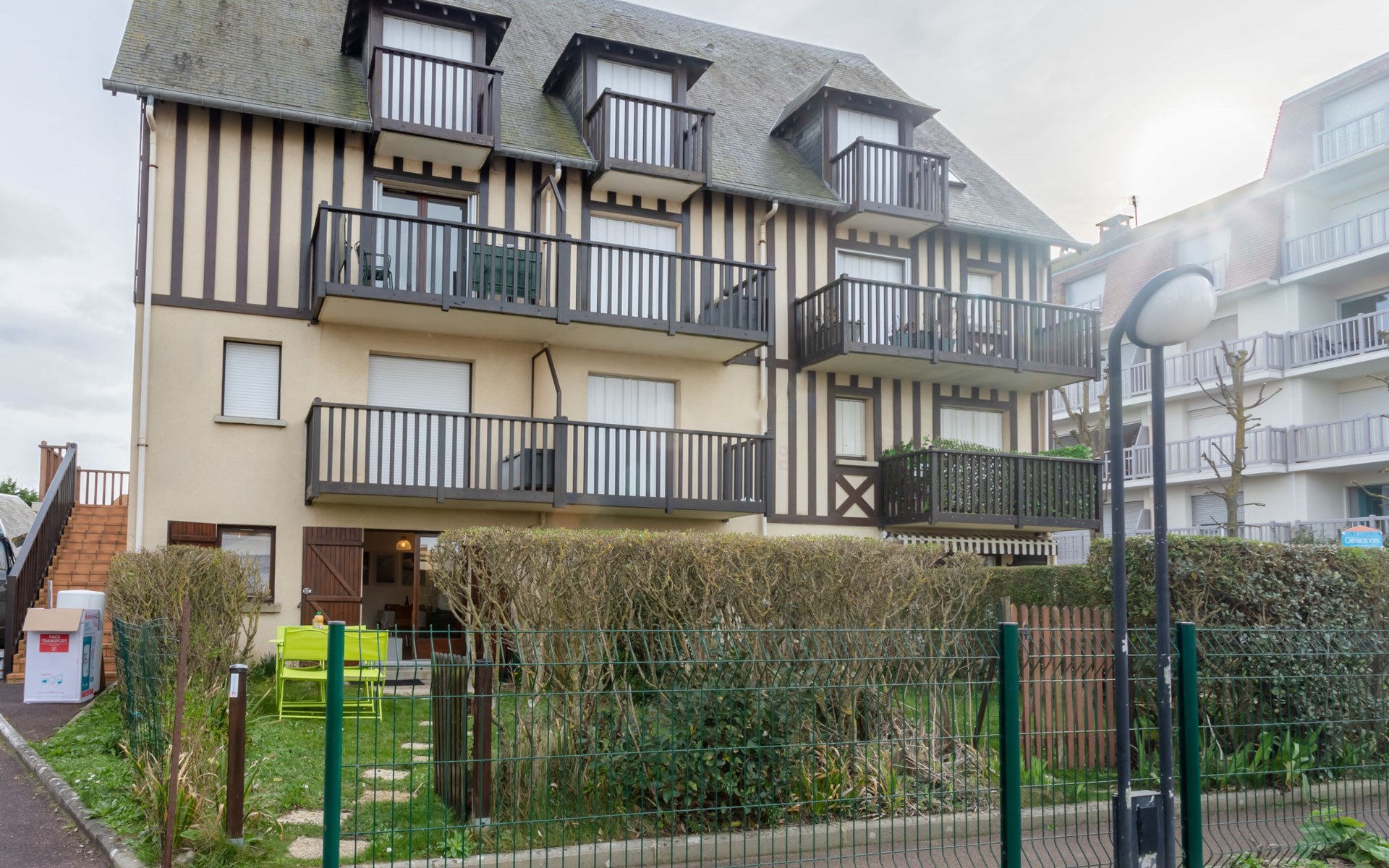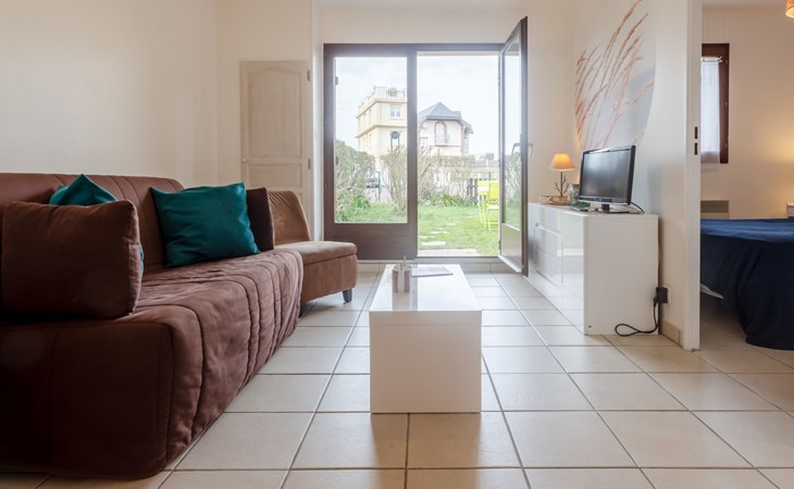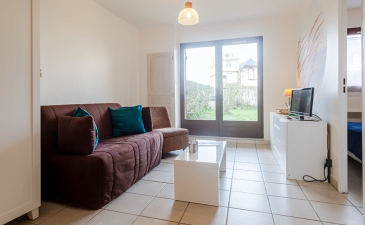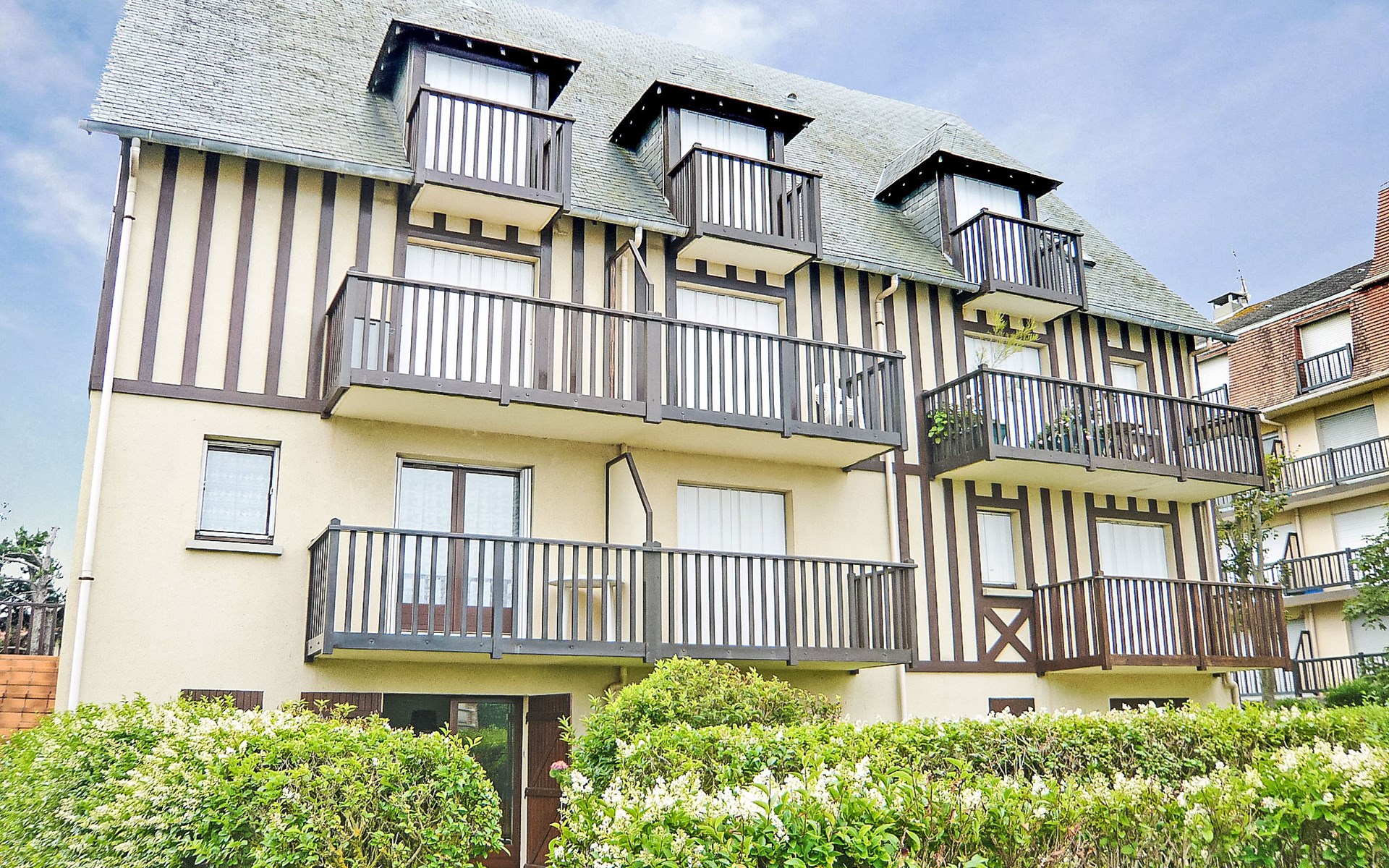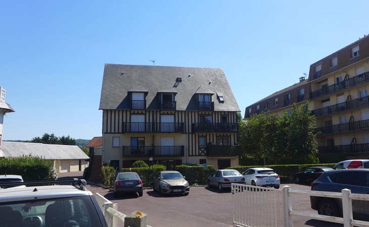 Residence "Le Vert Clos", 3 storeys. In the resort 1 km from the centre of Villers-sur-Mer, 15 m from the sea, 15 m from the beach, road to cross. Parking. Shop 1 km, shopping centre 100 m, restaurant 500 m, bus stop "Eglise" 1 km, thermal baths "Thalasso de Deauville" 7.1 km. Golf course (18 hole) 5.5 km. Please note: no lift. The keys‘ handover takes place by the agency Interhome in Cabourg, 12 km.