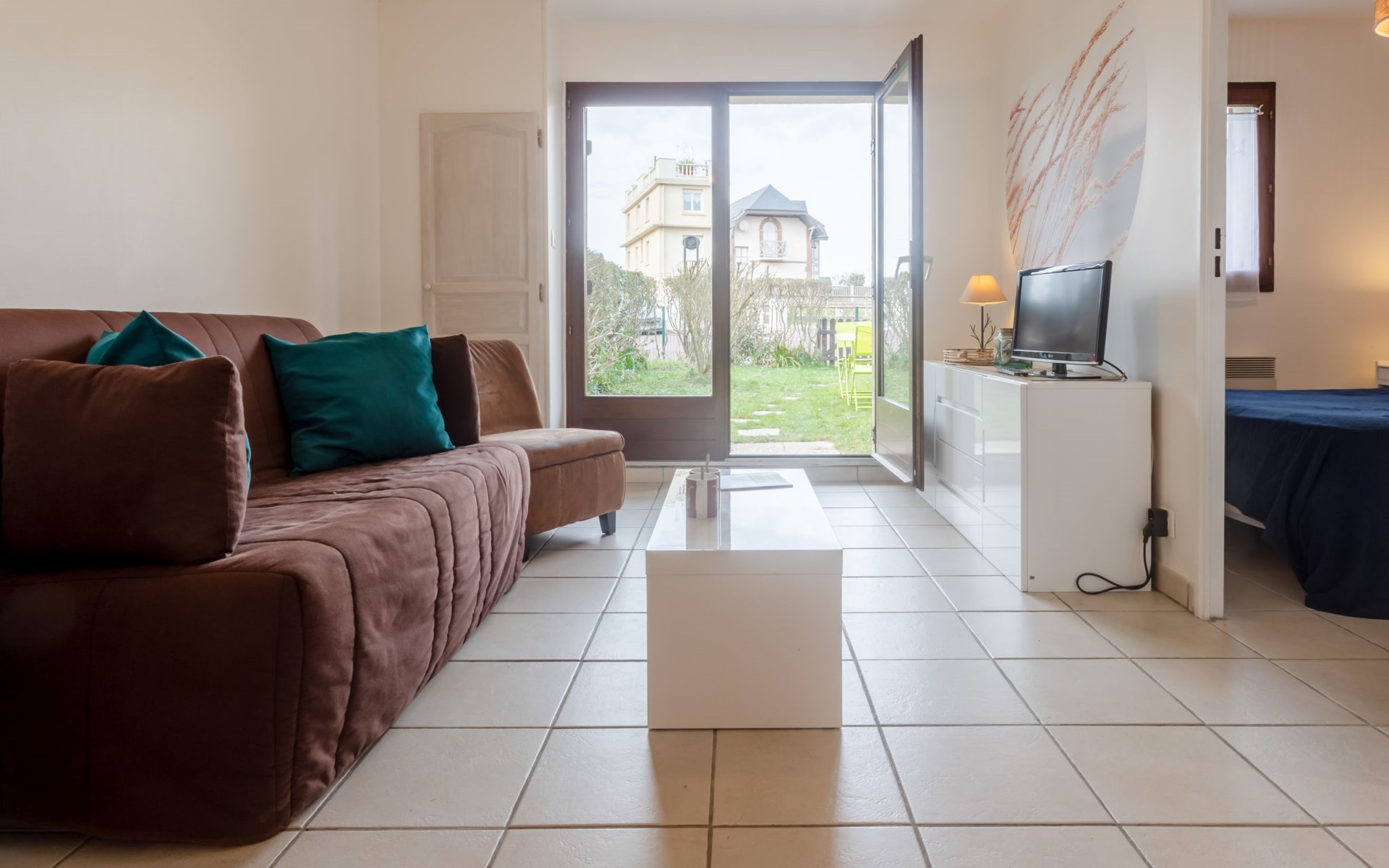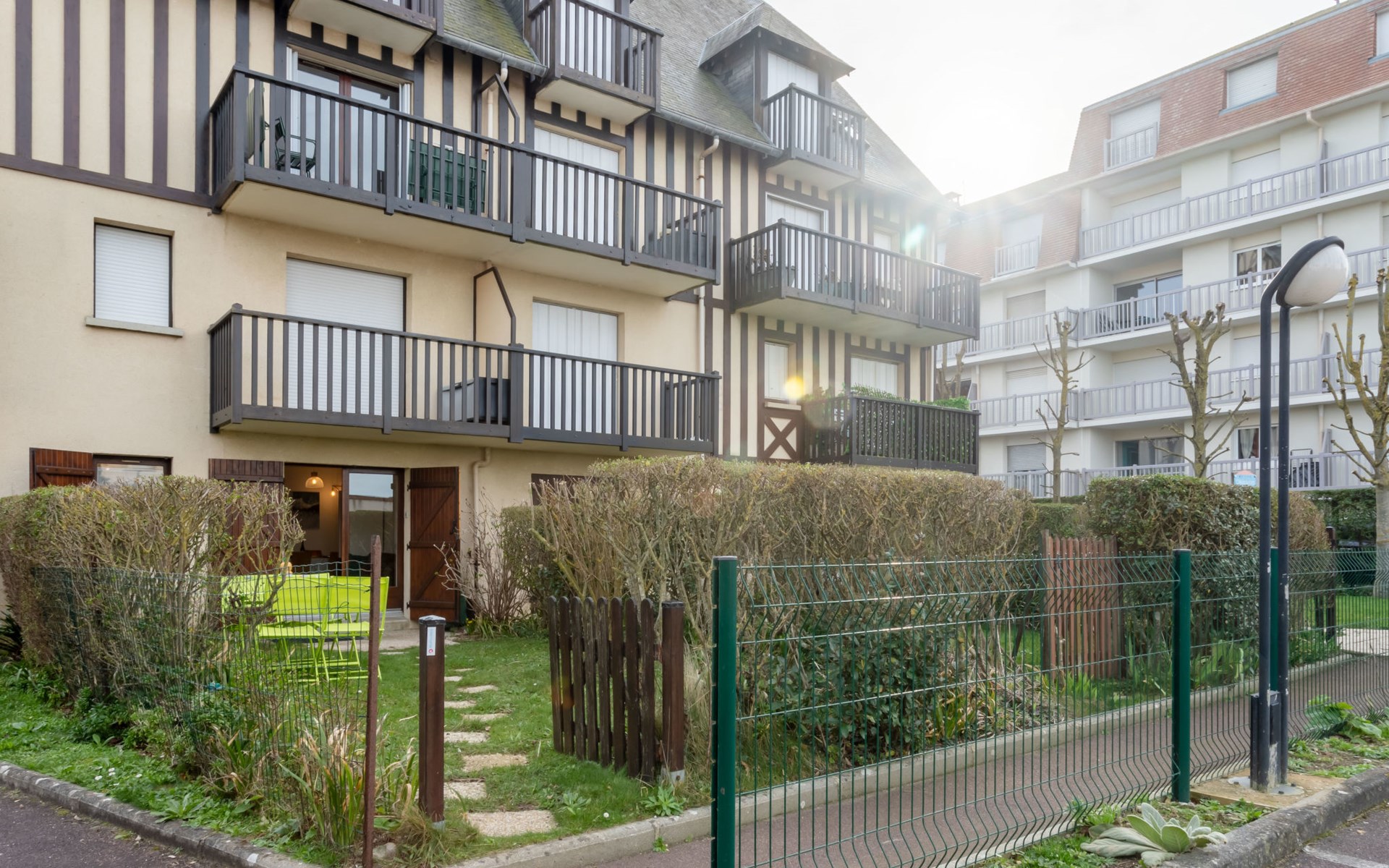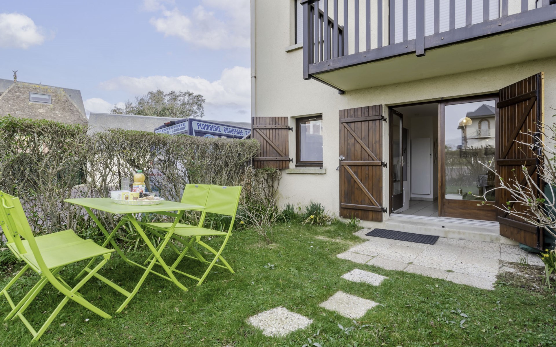 Residence "Le Vert Clos", 3 storeys. In the resort 1 km from the centre of Villers-sur-Mer, 15 m from the sea, 15 m from the beach, road to cross. Parking. Shop 1 km, shopping centre 100 m, restaurant 500 m, bus stop "Eglise" 1 km, thermal baths "Thalasso de Deauville" 7.1 km. Golf course (18 hole) 5.5 km. Please note: no lift. The keys‘ handover takes place by the agency Interhome in Cabourg, 12 km.
