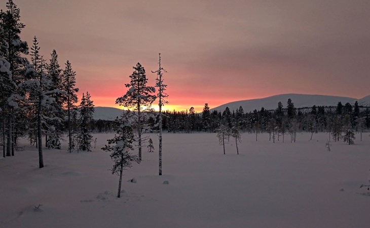 250 km to the north from Rovaniemi, near Raattama in Ylikyrö area. Located near the fell Pallastunturi.