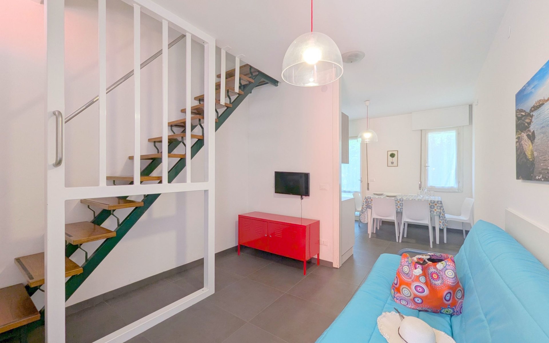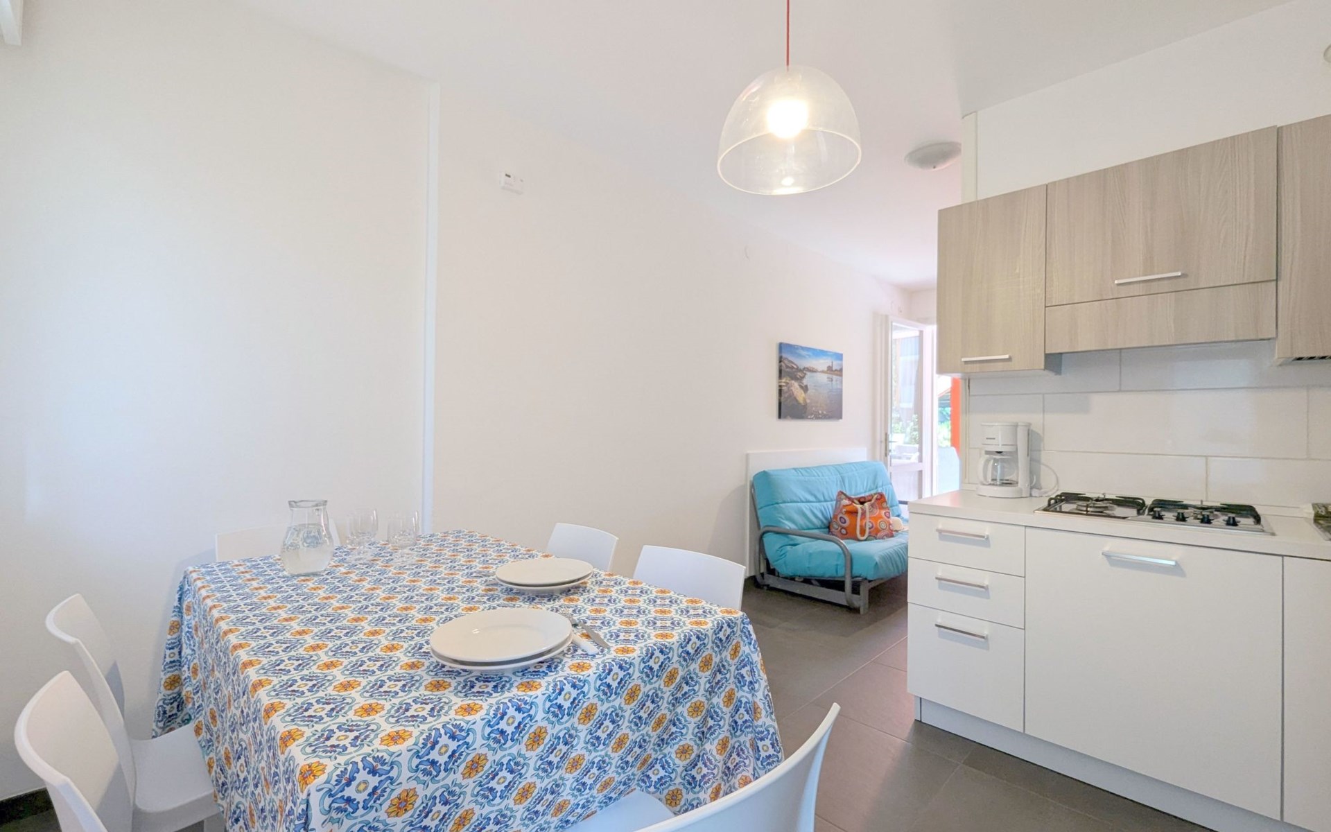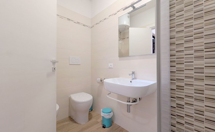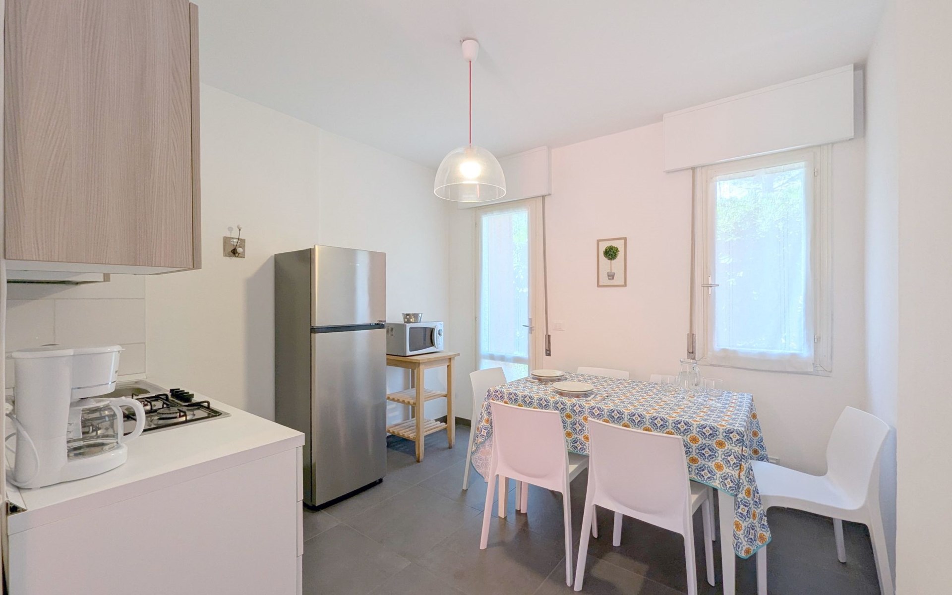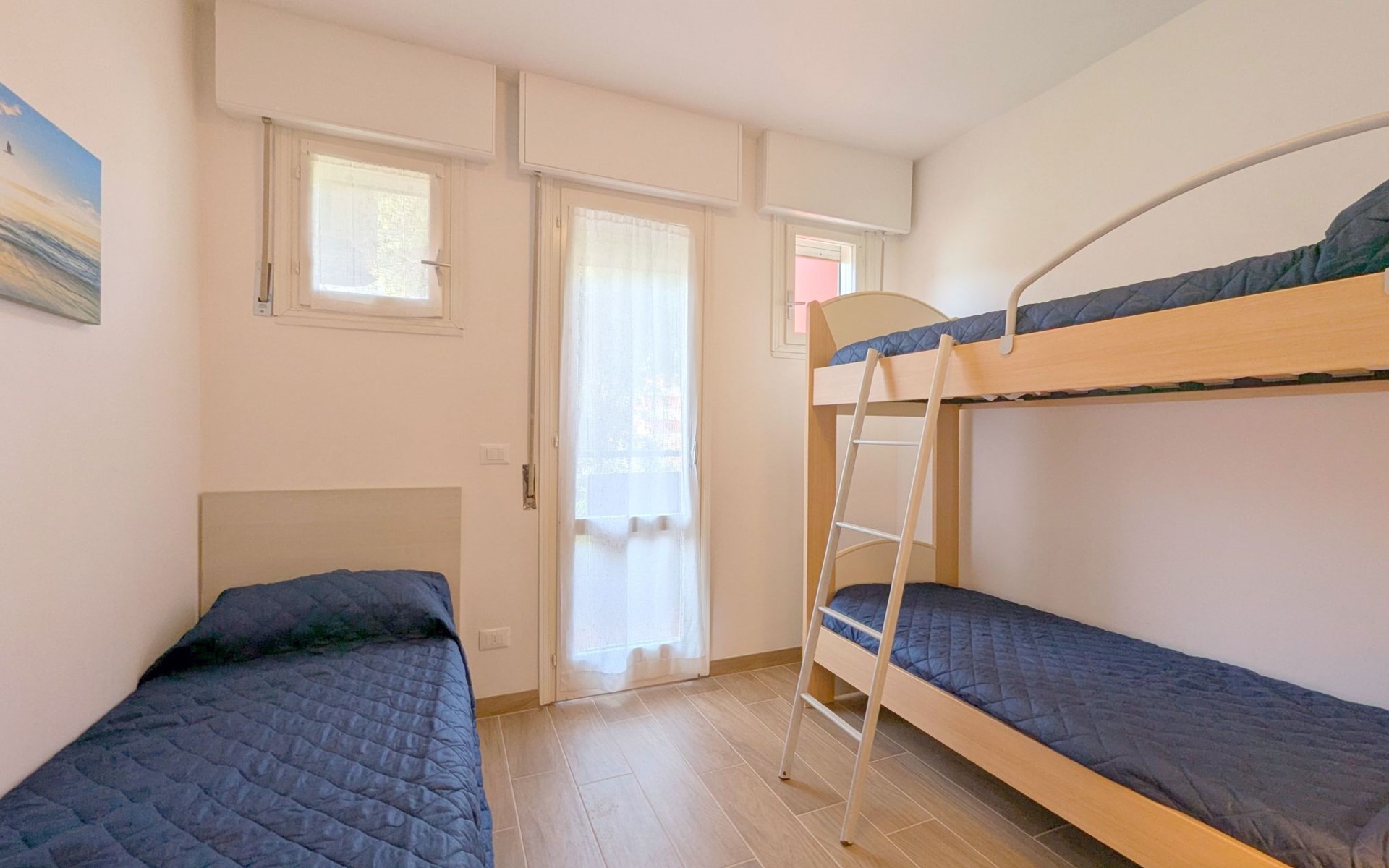 Bibione: Modern apartment block "Villa Luca", 3 storeys. 8 apartments in the residence. In the district of Bibione-Spiaggia, in the resort 150 m from the centre of Bibione, 13 km from the centre of Lignano, 100 km from the centre of Venezia, 500 m from the sea, 500 m from the beach. For shared use: natural state property (fenced) with trees, swimming pool (50 m2, seasonal availability: 15.May. - 27.Sep.). Children's pool. Shop 200 m, grocery 350 m, supermarket 550 m, restaurant 350 m, pedestrian zone 300 m, bus stop 150 m, railway station "Latisana (Venezia-Trieste)" 21 km, sandy beach 450 m, thermal baths "Bibione Thermae" 1.2 km. Golf course (18 hole) 8 km. Nearby attractions: Oasi Naturalistica Val Grande - Bibione, Trieste 100 km. The owner does not accept any groups. The photo is just an example. Beach service: During summer season 1 parasol and 2 deck-chairs per apartment included in the price.