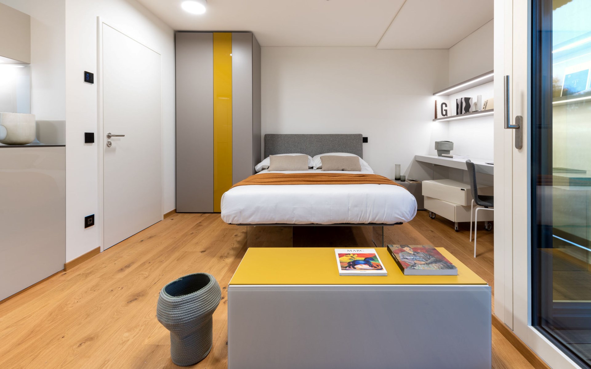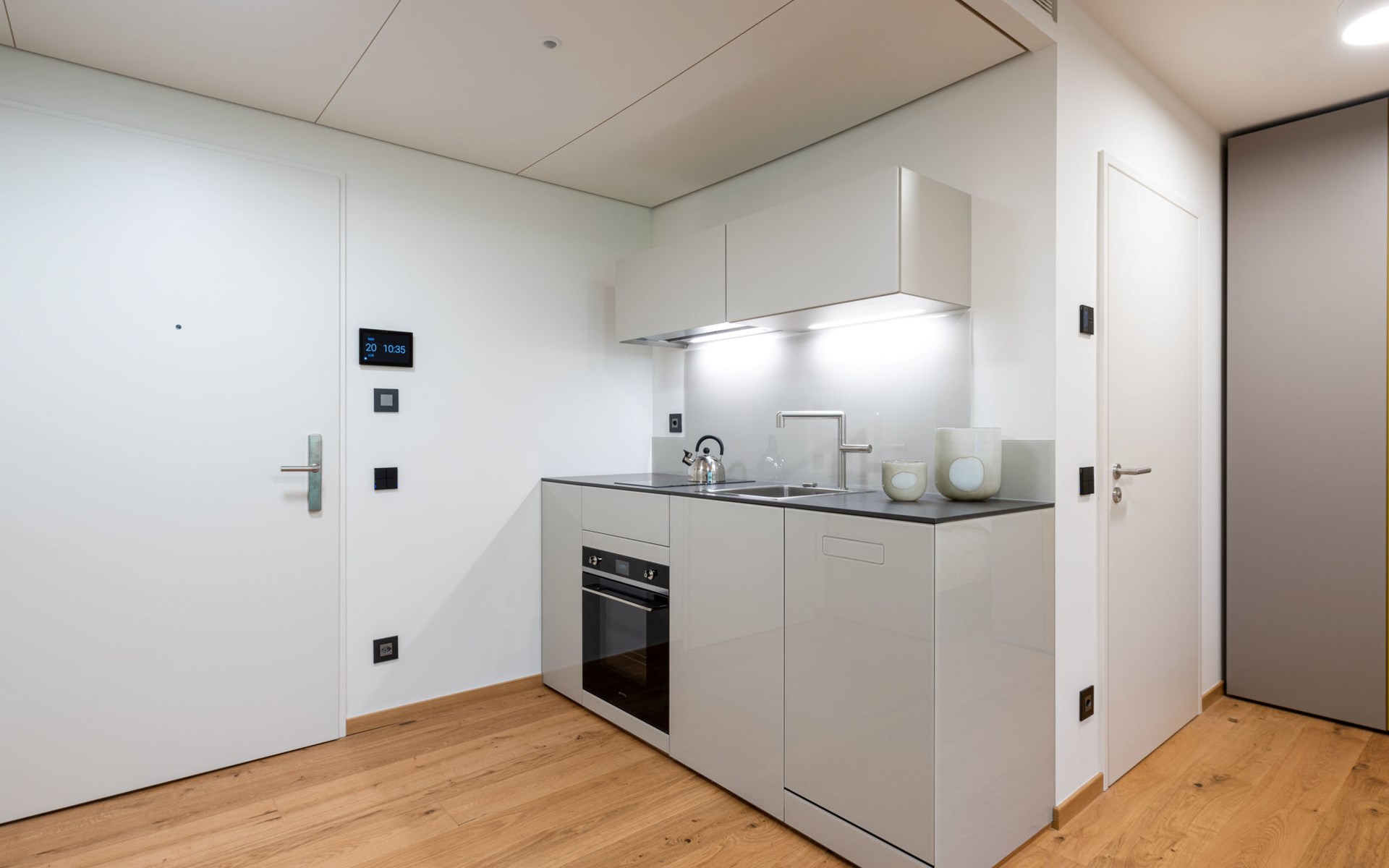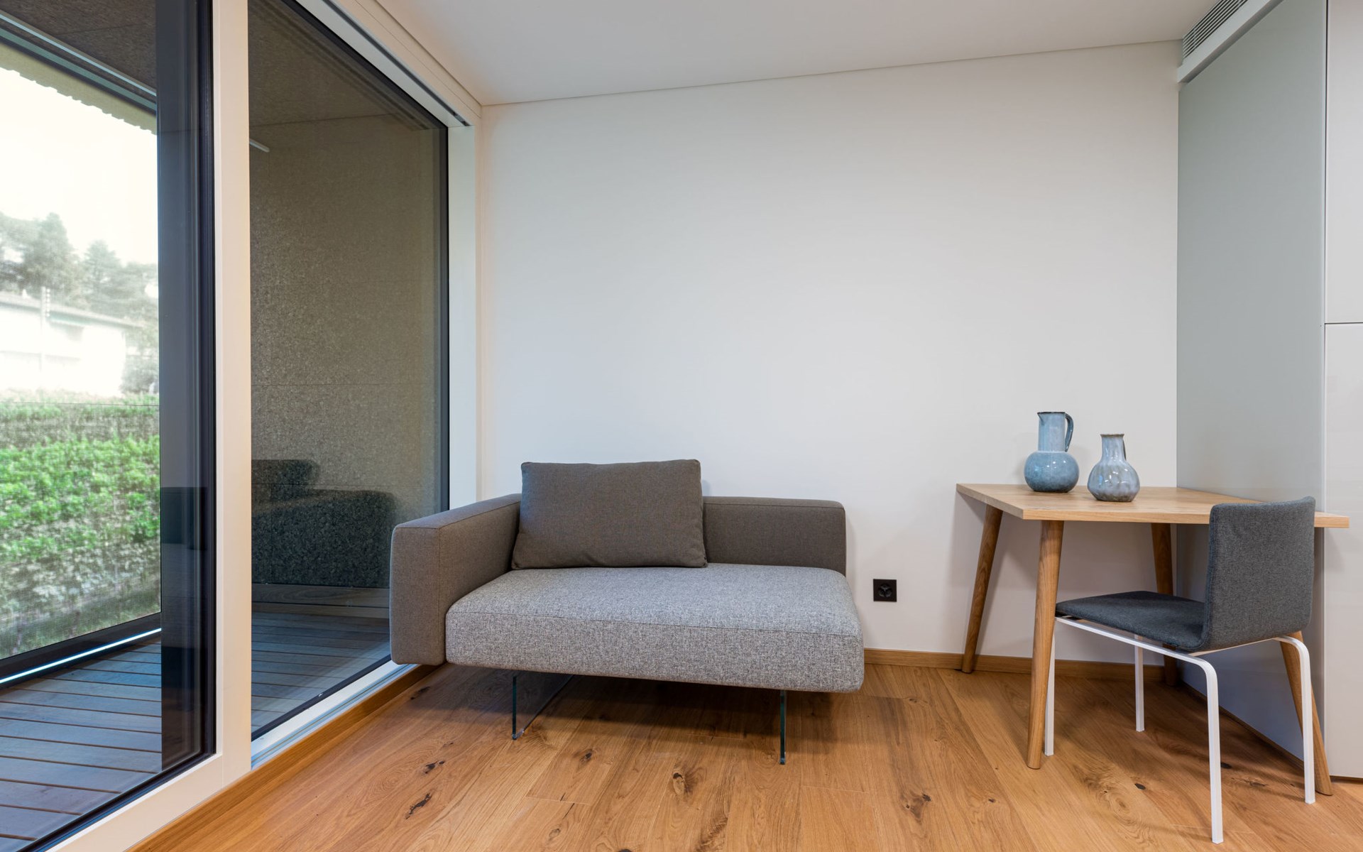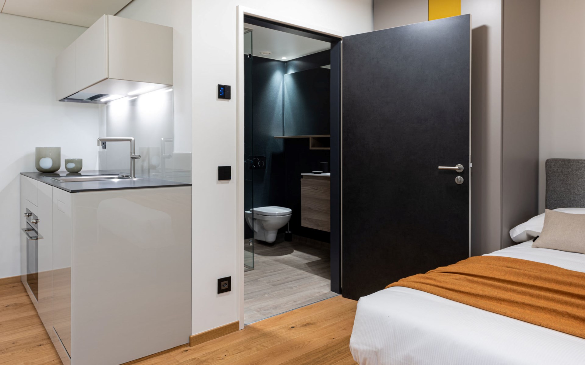 Stabio 20 km from Lugano Centro: Modern, comfortable aparthotel "Lo Scudo di Stabio", 350 m a.s.l., 2 storeys, detached, built in 2022, surrounded by meadows and vineyards. 15 apartments in the residence. In the resort 1 km from the centre of Stabio, on a main road, north-east facing position. For shared use: property 1'000 m2, large, beautiful garden lawn and plants. In the house: reception, lounge with TV, WiFi, lift, storage room for bicycles, central heating system, air conditioning. Linen change daily (suppl. charge extra). Towel change daily (suppl. charge extra). Room cleaning daily on request (extra). Motor access to the house. Parking on the premises. E-charging station. Supermarket 1 km, bar 550 m, bus stop 1 m, railway station "Stabio" 1.2 km. Nearby attractions: Fossilienmuseum Arzo 4.8 km, Chicco d'Oro Kaffee Museum 5 km, Villa Braghenti 8 km, La Vecchia Stazione 8 km, Torre Pezza 9 km, Madonna di San Bernardino 9 km. Well-known lakes can easily be reached: Lago di Lugano 5 km. Hiking paths: Monte San Giorgio 9 km, Monte Generoso, Valle di Muggio. Outdoors: Picnic area, outdoor furniture, garden. Common area with shared lounge/TV area, snack vending machines, vending machines, coffee and tea making facilities. Business services: Conference and event rooms. Scudo di Stabio combines flexible hospitality with ongoing sustainability: 22 furnished apartments (35–50 m²), complemented by common areas such as a 130 m² common room and a 26 m² meeting room. The approach is holistically sustainable: load-bearing structures primarily made of wood with a prefabricated frame, natural insulation materials, a green roof and highly efficient systems to reduce energy consumption and emissions throughout the entire life cycle. The exposed cork facades integrate photovoltaic modules on the south and west sides, combining energy production with the architectural identity. Soft mobility is supported by electric car charging stations, a bicycle service station and secure bike storage on the ground floor. The complex is the first building in Ticino to be SNBS certified and has obtained the Minergie-P-ECO certification (no. TI-011-P-ECO) and the Swisstainable - Level II label, demonstrating its ecological, social and economic quality. It was also selected/recognized at the 2022 Active House Awards, highlighting its focus on user comfort (light, air, well-being) and energy efficiency.