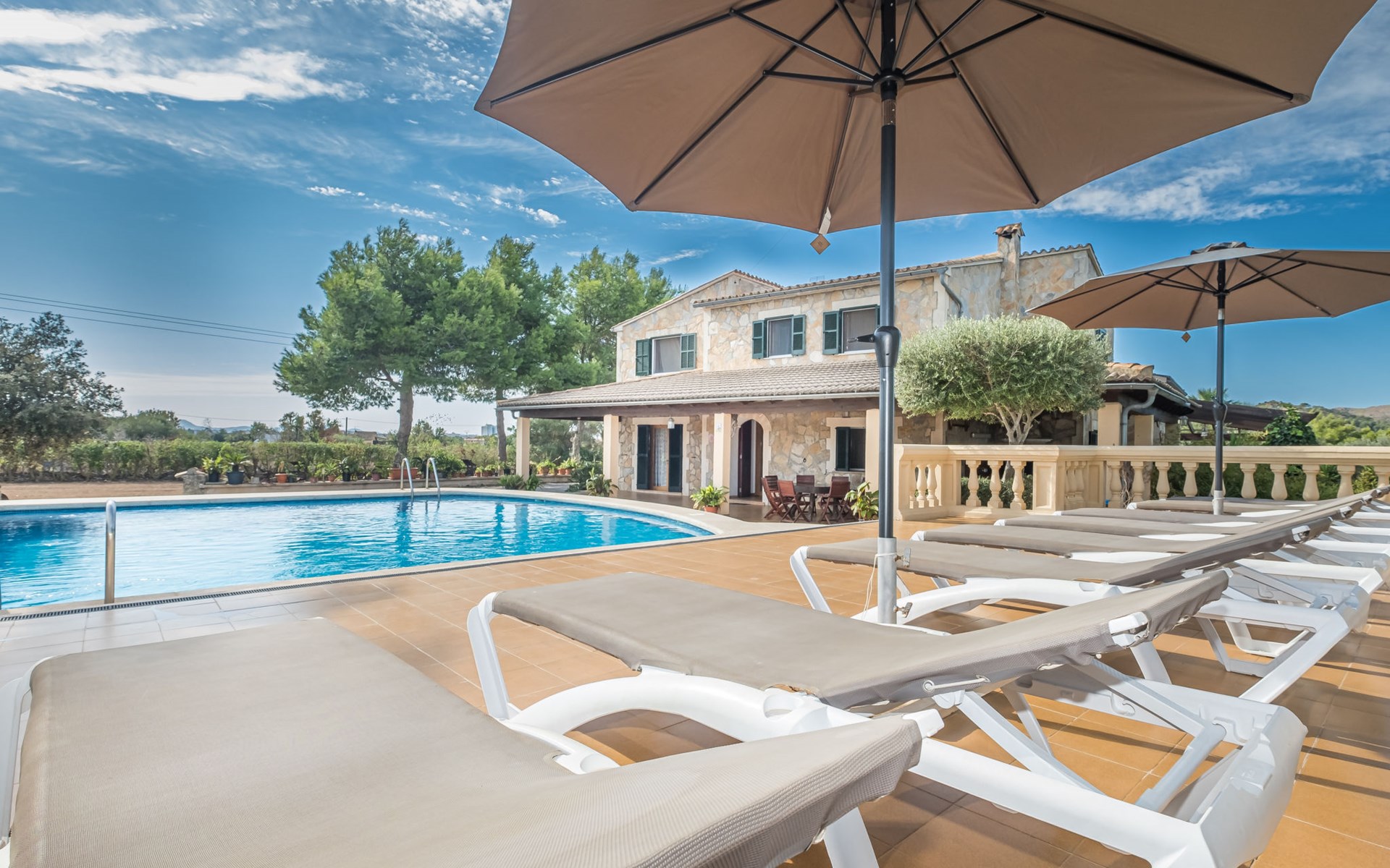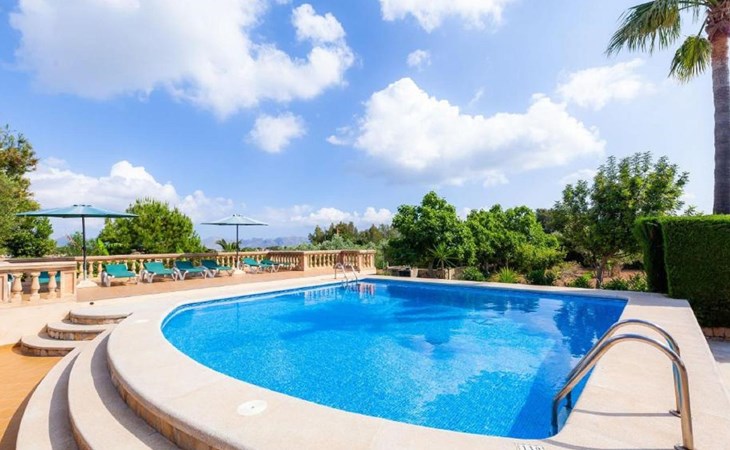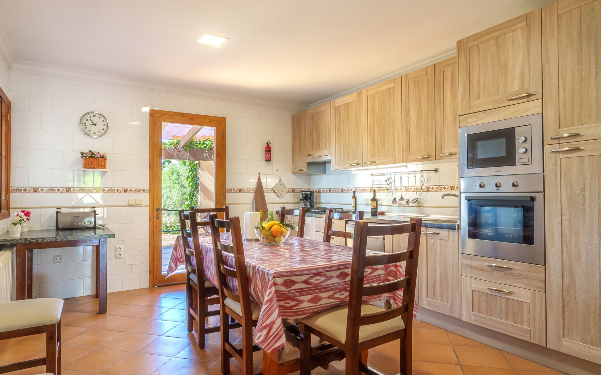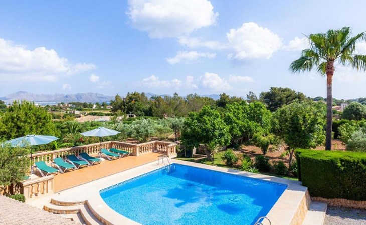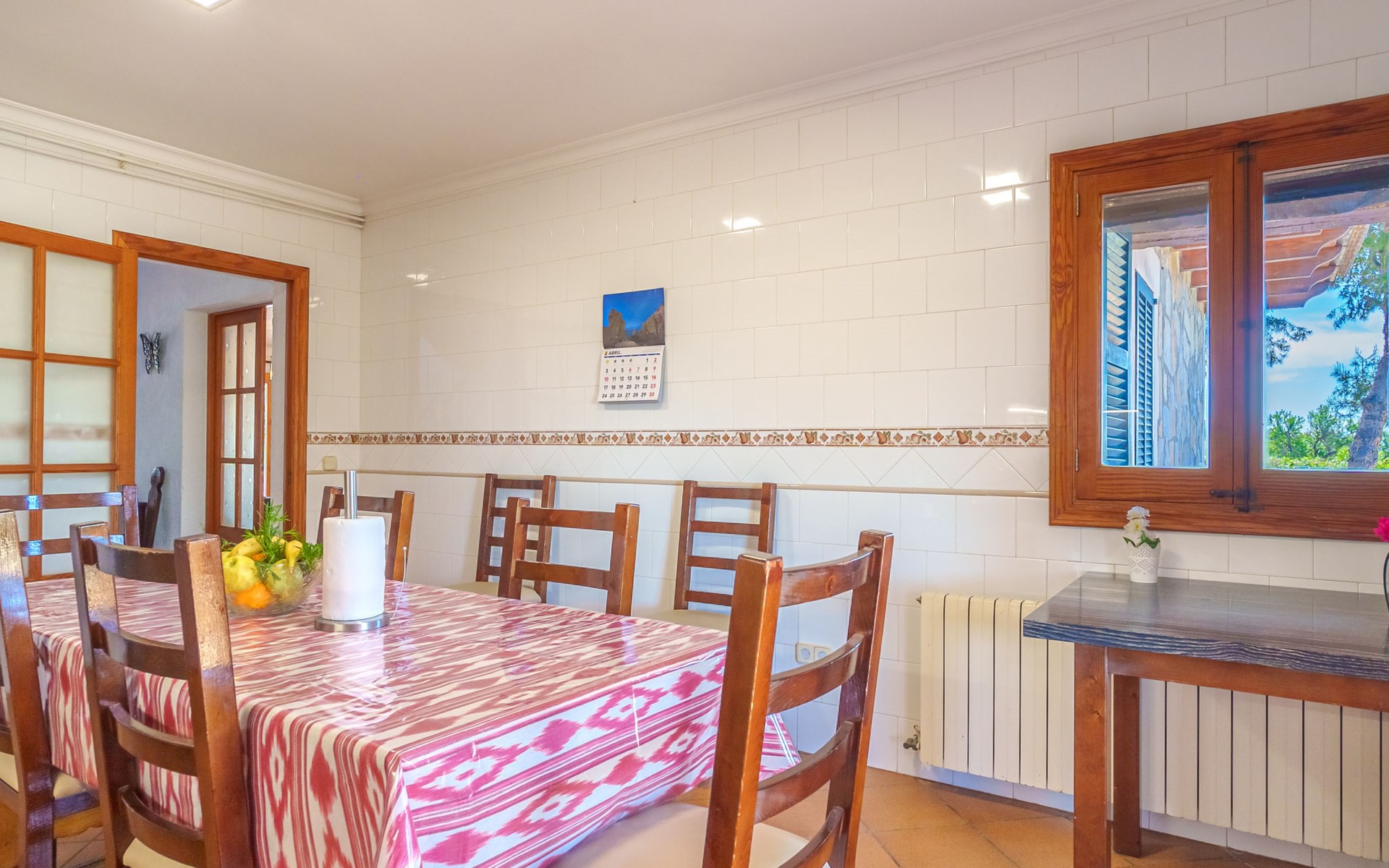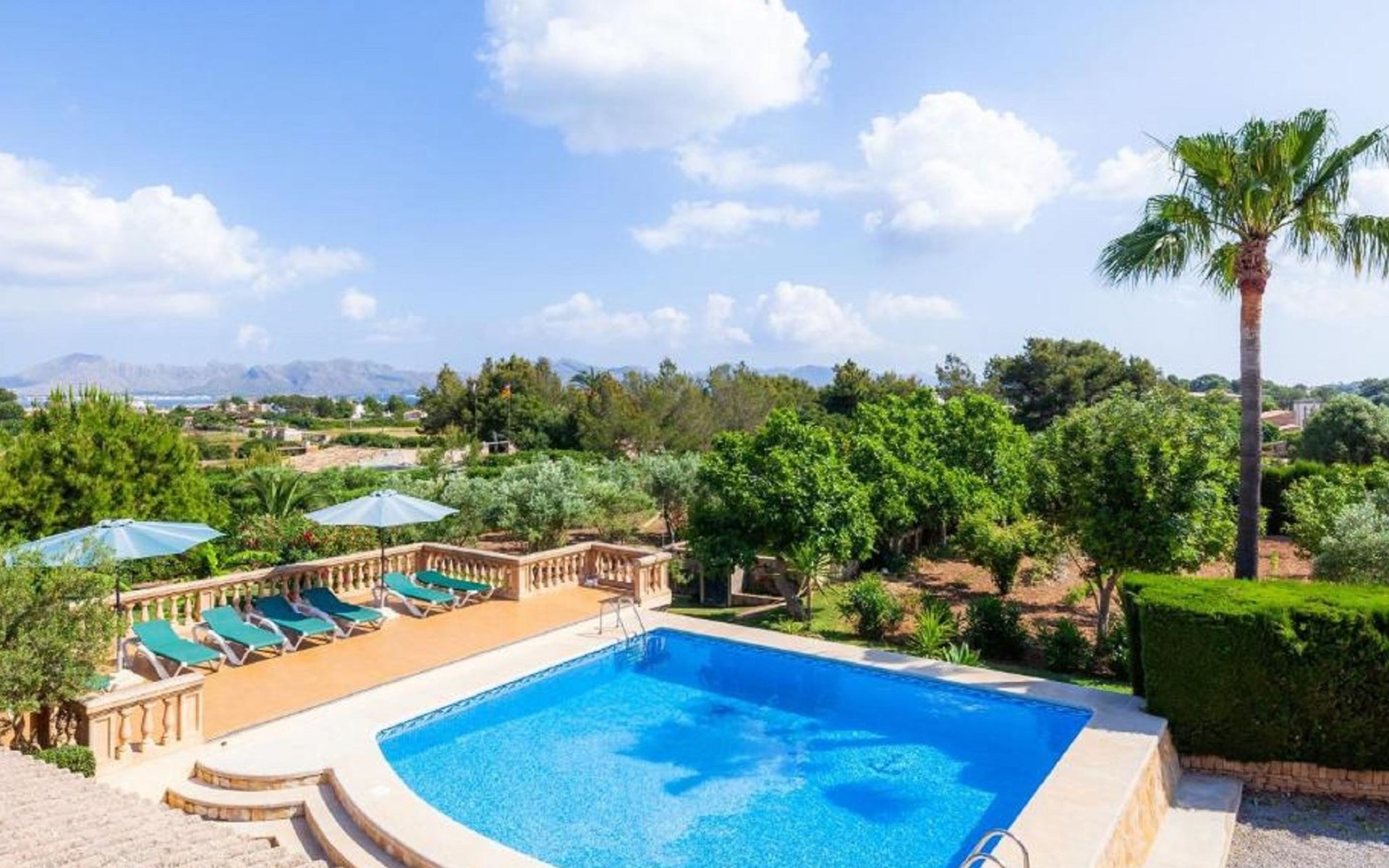 Prat de na Fideu 1 km from Alcudia: Large, beautiful, comfortable villa "Can Cerda", surrounded by trees and fields. On the outskirts, 800 m from the centre of Alcudia, in a quiet, sunny position, 1 km from the edge of the forest, 1 km from the sea, 1 km from the beach. Private: well-kept garden with lawn and trees, swimming pool angular (7 x 8 m, depth 1 - depth 2 cm, seasonal availability: 01.Jan. - 31.Dec.). Outdoor shower, terrace, garden furniture, barbecue, pool maintenance by the owner/gardener. Parking at the house on the premises. Shop 1 km, grocery 1 km, supermarket 1 km, restaurant 1 km, bar 700 m, bakery 1 km, café 800 m, pedestrian zone 1 km, bicycle rental 2 km, 8 minute walk to the centre, bus stop "Alcudia Ses Forques" 800 m, railway station "Sa Pobla" 12 km, ferry "Puerto de Alcudia" 3 km, sandy beach "Bahia de Alcudia" 3 km, shingle beach "Barcarés" 2 km, rocky beach "Alcanada" 4 km, diving center 5 km. Sports harbour 3 km, marina 3 km, golf course (18 hole) 4 km, surf school 3 km, sailing school 3 km, tennis 6 km, riding stable 4 km, sports centre 2 km, walking paths from the house 2 km, cycle lane 200 m. Nearby attractions: Playa de Formentor 18 km, Faro de Formentor 27 km, Monasterio de Lluc 32 km, Cuevas de Campanet 17 km, La Victoria 8 km. Hiking paths: Ruta des Coll Baix 6 km. Please note: suitable for families, suitable for seniors. The owner does not accept any groups. The owner does not accept any youth groups.