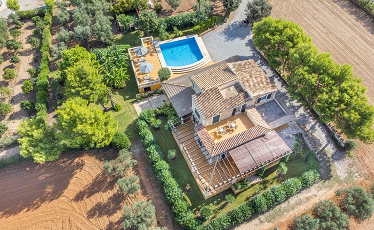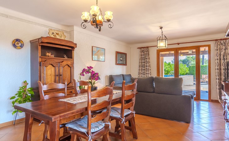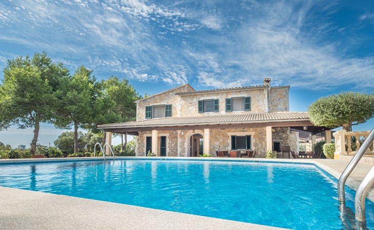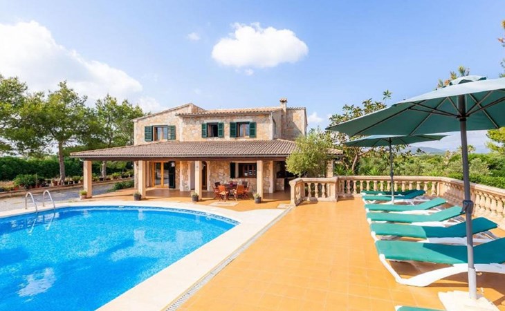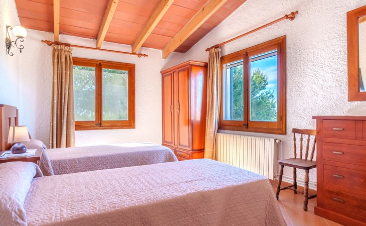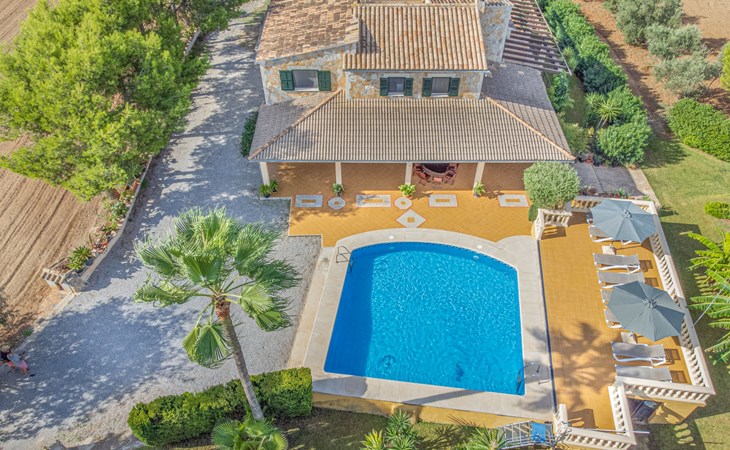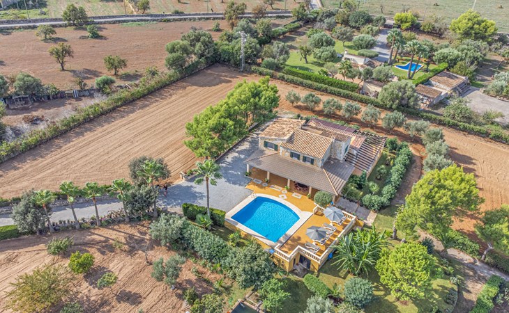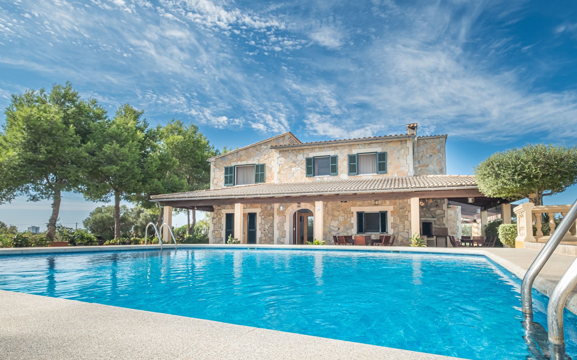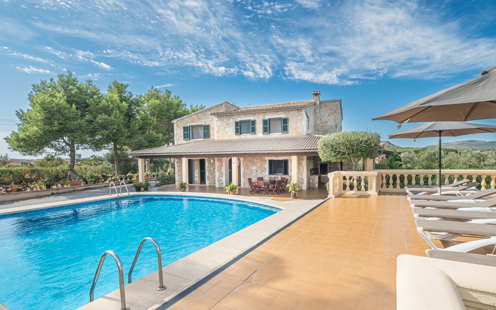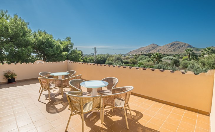 Prat de na Fideu 1 km from Alcudia: Large, beautiful, comfortable villa "Can Cerda", surrounded by trees and fields. On the outskirts, 800 m from the centre of Alcudia, in a quiet, sunny position, 1 km from the edge of the forest, 1 km from the sea, 1 km from the beach. Private: well-kept garden with lawn and trees, swimming pool angular (7 x 8 m, depth 1 - depth 2 cm, seasonal availability: 01.Jan. - 31.Dec.). Outdoor shower, terrace, garden furniture, barbecue, pool maintenance by the owner/gardener. Parking at the house on the premises. Shop 1 km, grocery 1 km, supermarket 1 km, restaurant 1 km, bar 700 m, bakery 1 km, café 800 m, pedestrian zone 1 km, bicycle rental 2 km, 8 minute walk to the centre, bus stop "Alcudia Ses Forques" 800 m, railway station "Sa Pobla" 12 km, ferry "Puerto de Alcudia" 3 km, sandy beach "Bahia de Alcudia" 3 km, shingle beach "Barcarés" 2 km, rocky beach "Alcanada" 4 km, diving center 5 km. Sports harbour 3 km, marina 3 km, golf course (18 hole) 4 km, surf school 3 km, sailing school 3 km, tennis 6 km, riding stable 4 km, sports centre 2 km, walking paths from the house 2 km, cycle lane 200 m. Nearby attractions: Playa de Formentor 18 km, Faro de Formentor 27 km, Monasterio de Lluc 32 km, Cuevas de Campanet 17 km, La Victoria 8 km. Hiking paths: Ruta des Coll Baix 6 km. Please note: suitable for families, suitable for seniors. The owner does not accept any groups. The owner does not accept any youth groups.