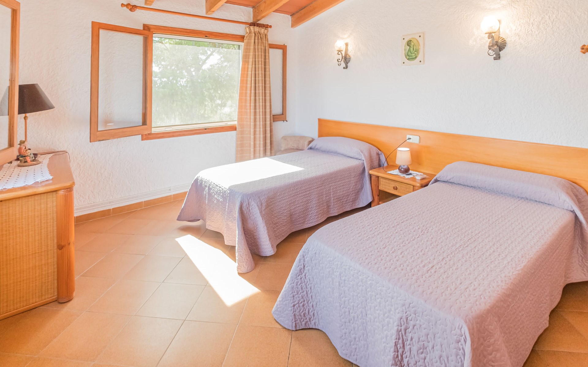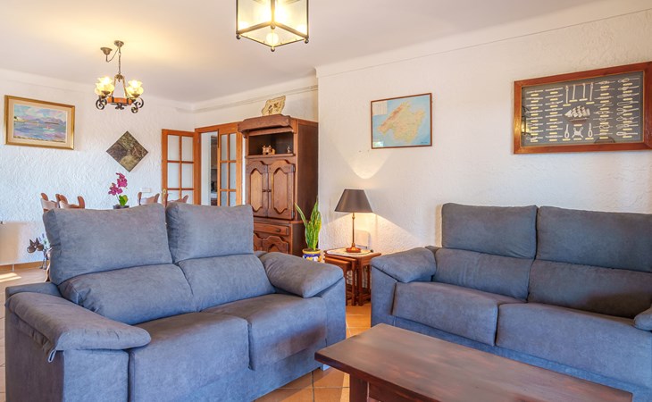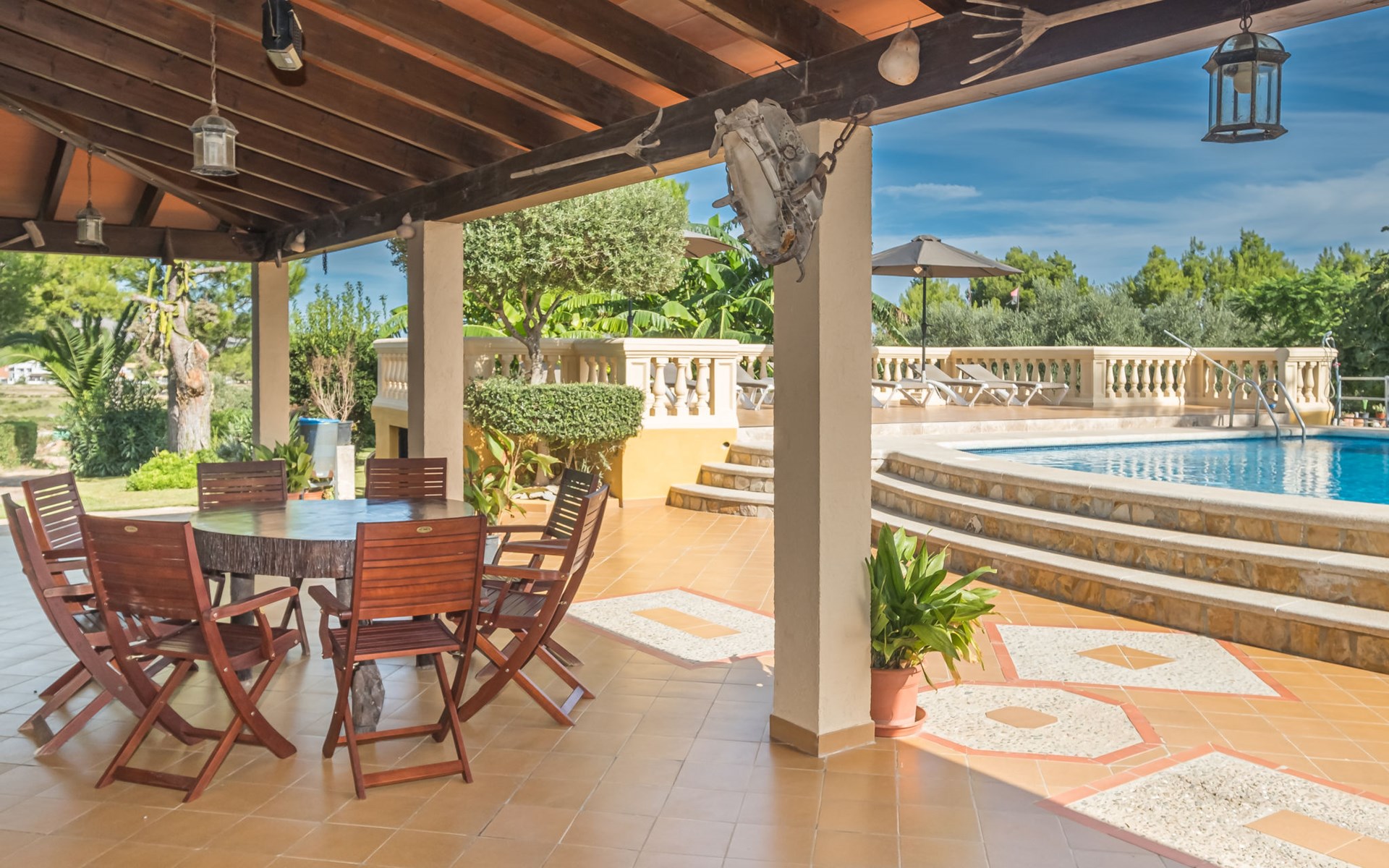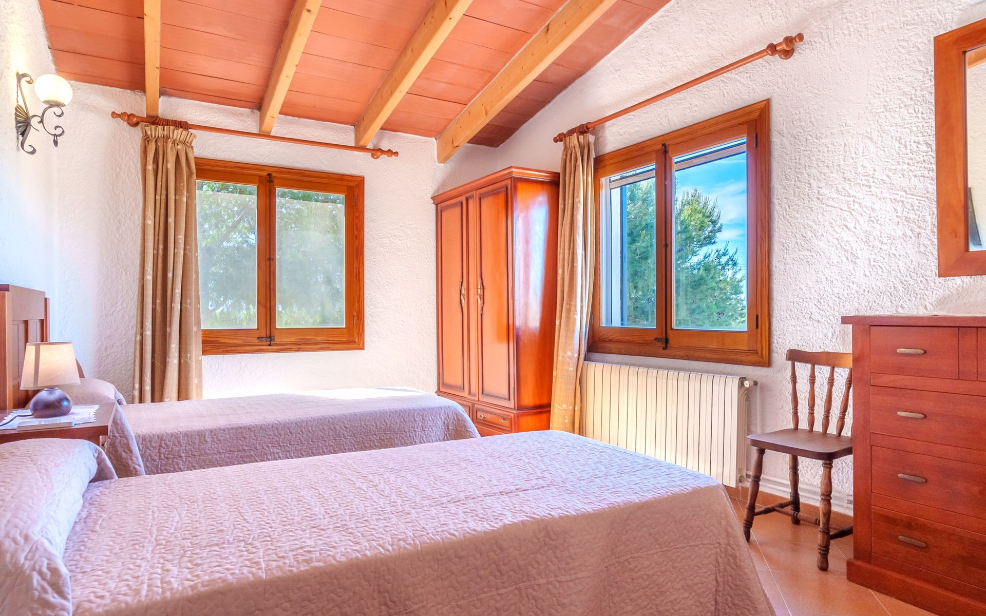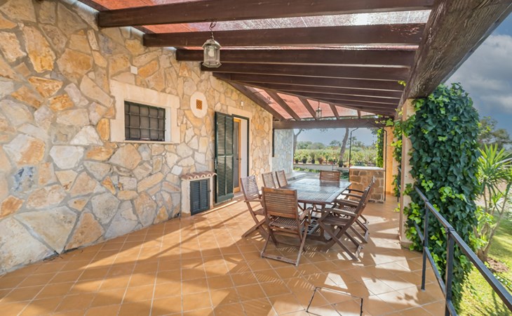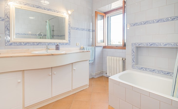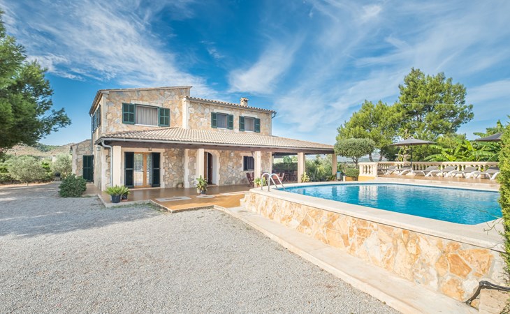 Prat de na Fideu 1 km from Alcudia: Large, beautiful, comfortable villa "Can Cerda", surrounded by trees and fields. On the outskirts, 800 m from the centre of Alcudia, in a quiet, sunny position, 1 km from the edge of the forest, 1 km from the sea, 1 km from the beach. Private: well-kept garden with lawn and trees, swimming pool angular (7 x 8 m, depth 1 - depth 2 cm, seasonal availability: 01.Jan. - 31.Dec.). Outdoor shower, terrace, garden furniture, barbecue, pool maintenance by the owner/gardener. Parking at the house on the premises. Shop 1 km, grocery 1 km, supermarket 1 km, restaurant 1 km, bar 700 m, bakery 1 km, café 800 m, pedestrian zone 1 km, bicycle rental 2 km, 8 minute walk to the centre, bus stop "Alcudia Ses Forques" 800 m, railway station "Sa Pobla" 12 km, ferry "Puerto de Alcudia" 3 km, sandy beach "Bahia de Alcudia" 3 km, shingle beach "Barcarés" 2 km, rocky beach "Alcanada" 4 km, diving center 5 km. Sports harbour 3 km, marina 3 km, golf course (18 hole) 4 km, surf school 3 km, sailing school 3 km, tennis 6 km, riding stable 4 km, sports centre 2 km, walking paths from the house 2 km, cycle lane 200 m. Nearby attractions: Playa de Formentor 18 km, Faro de Formentor 27 km, Monasterio de Lluc 32 km, Cuevas de Campanet 17 km, La Victoria 8 km. Hiking paths: Ruta des Coll Baix 6 km. Please note: suitable for families, suitable for seniors. The owner does not accept any groups. The owner does not accept any youth groups.