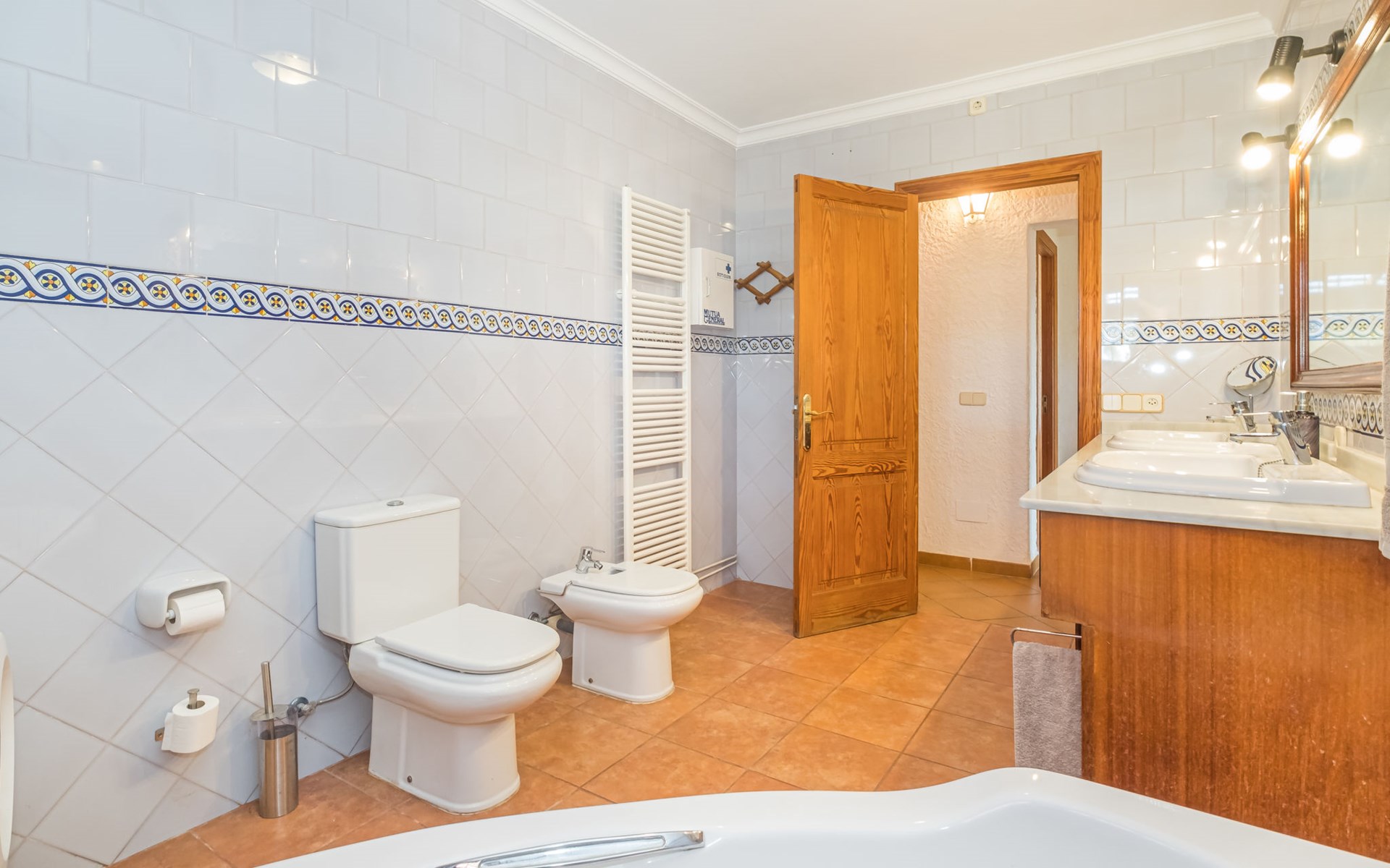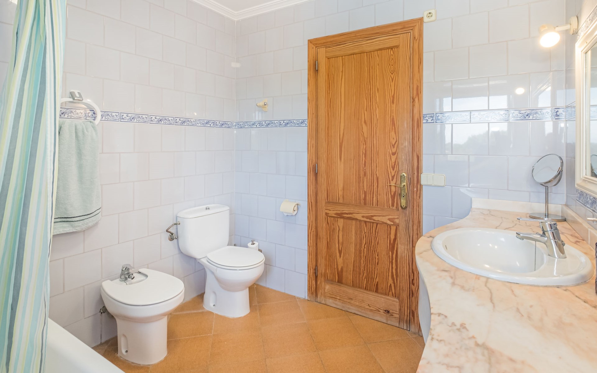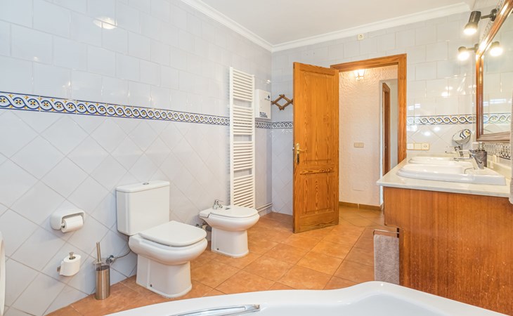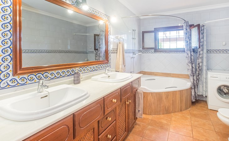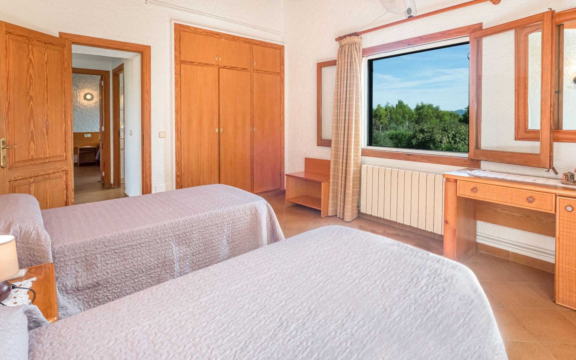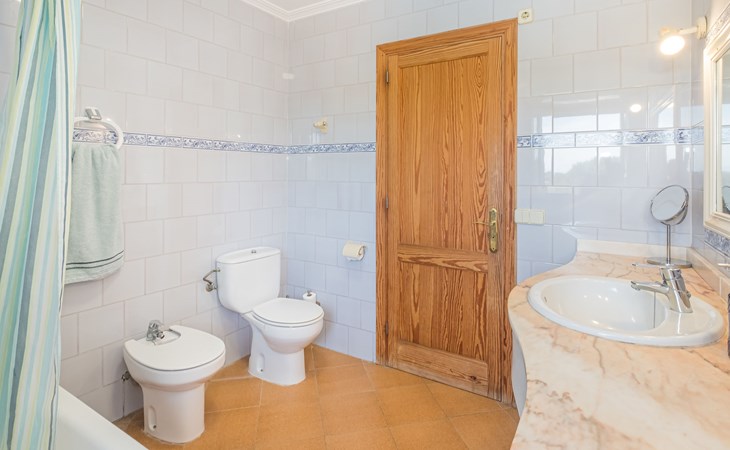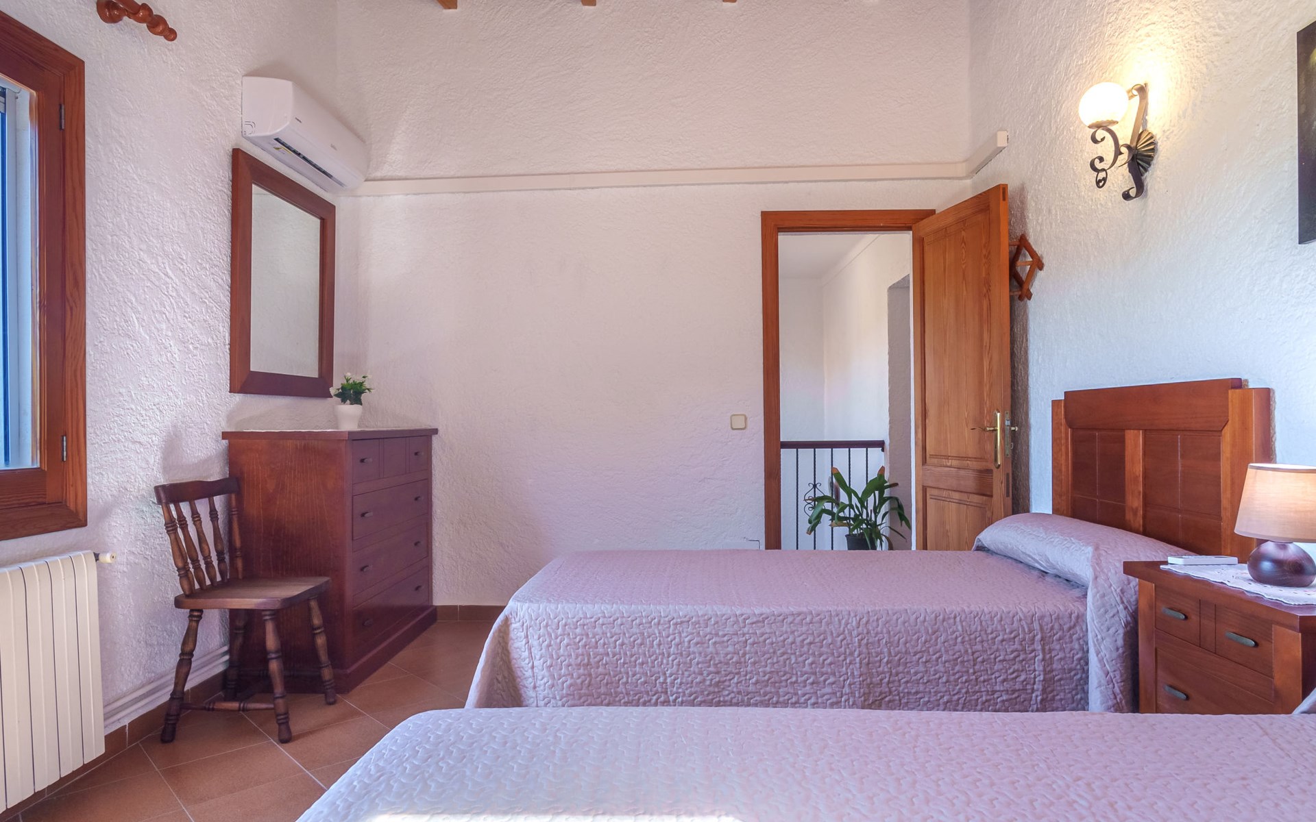 Prat de na Fideu 1 km from Alcudia: Large, beautiful, comfortable villa "Can Cerda", surrounded by trees and fields. On the outskirts, 800 m from the centre of Alcudia, in a quiet, sunny position, 1 km from the edge of the forest, 1 km from the sea, 1 km from the beach. Private: well-kept garden with lawn and trees, swimming pool angular (7 x 8 m, depth 1 - depth 2 cm, seasonal availability: 01.Jan. - 31.Dec.). Outdoor shower, terrace, garden furniture, barbecue, pool maintenance by the owner/gardener. Parking at the house on the premises. Shop 1 km, grocery 1 km, supermarket 1 km, restaurant 1 km, bar 700 m, bakery 1 km, café 800 m, pedestrian zone 1 km, bicycle rental 2 km, 8 minute walk to the centre, bus stop "Alcudia Ses Forques" 800 m, railway station "Sa Pobla" 12 km, ferry "Puerto de Alcudia" 3 km, sandy beach "Bahia de Alcudia" 3 km, shingle beach "Barcarés" 2 km, rocky beach "Alcanada" 4 km, diving center 5 km. Sports harbour 3 km, marina 3 km, golf course (18 hole) 4 km, surf school 3 km, sailing school 3 km, tennis 6 km, riding stable 4 km, sports centre 2 km, walking paths from the house 2 km, cycle lane 200 m. Nearby attractions: Playa de Formentor 18 km, Faro de Formentor 27 km, Monasterio de Lluc 32 km, Cuevas de Campanet 17 km, La Victoria 8 km. Hiking paths: Ruta des Coll Baix 6 km. Please note: suitable for families, suitable for seniors. The owner does not accept any groups. The owner does not accept any youth groups.