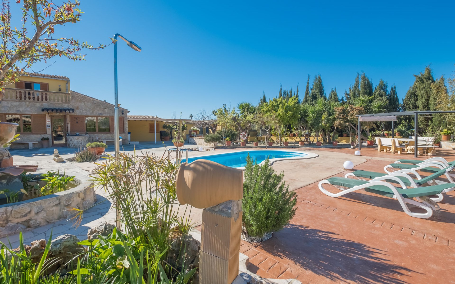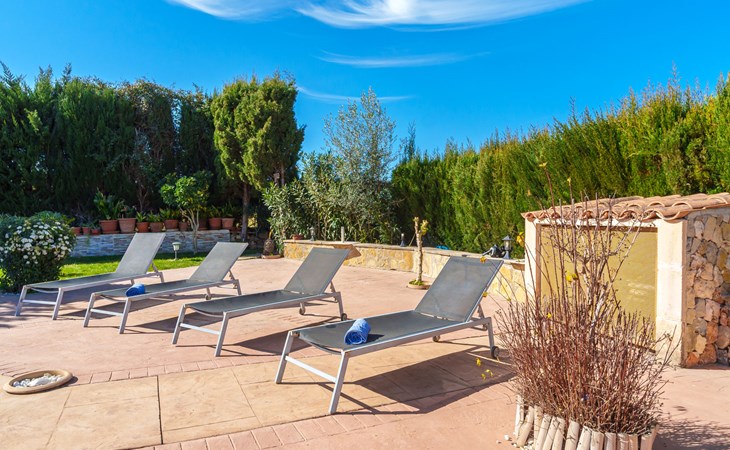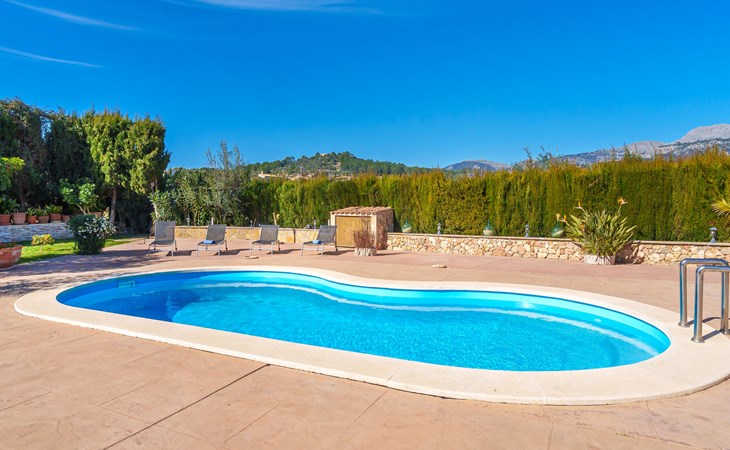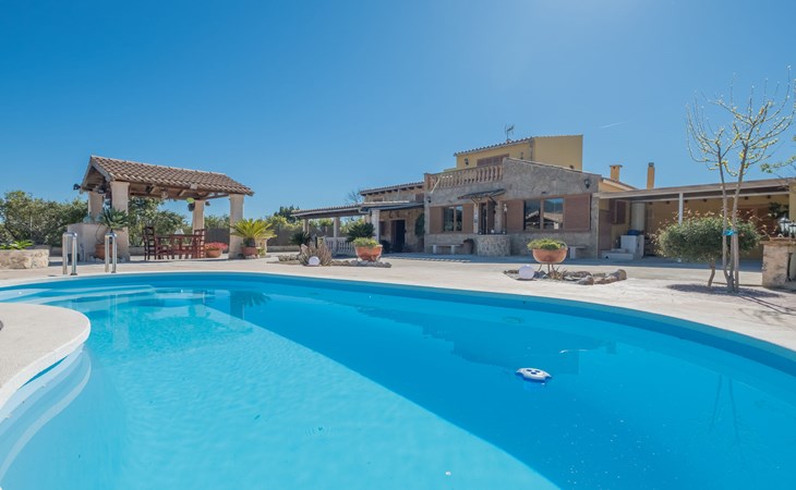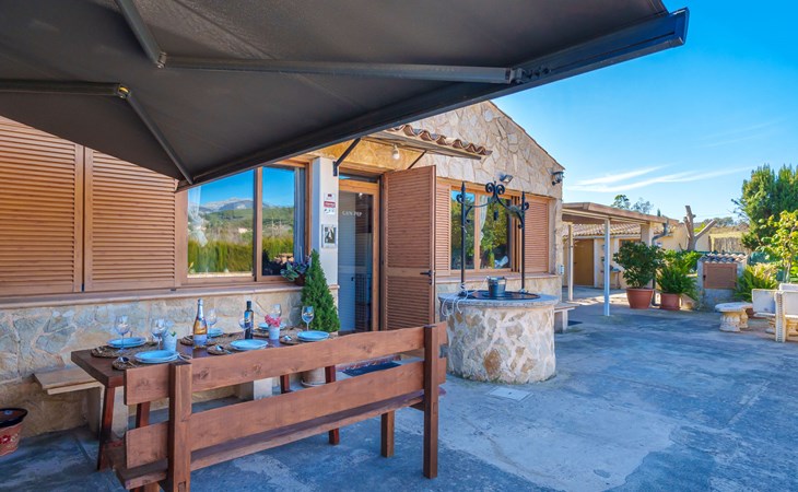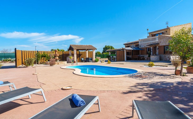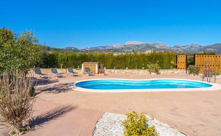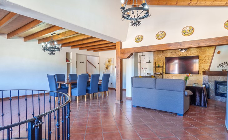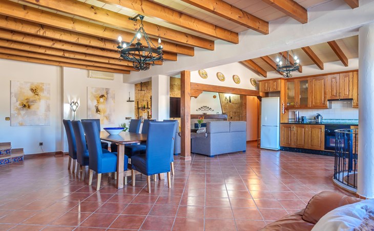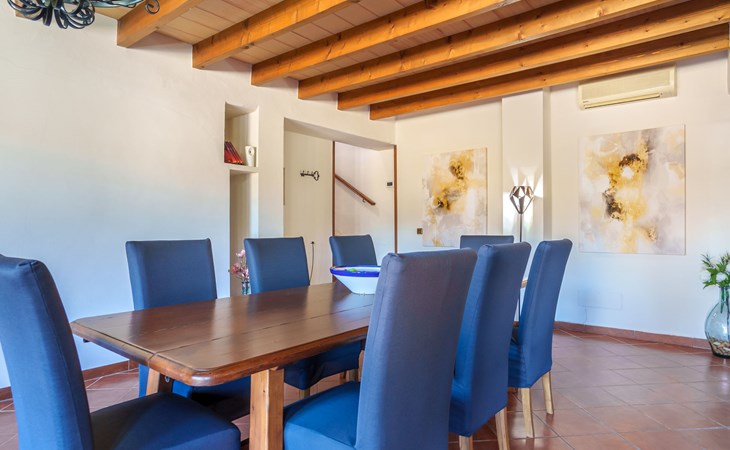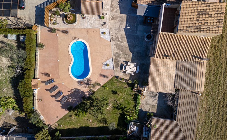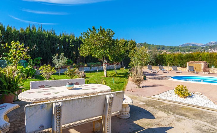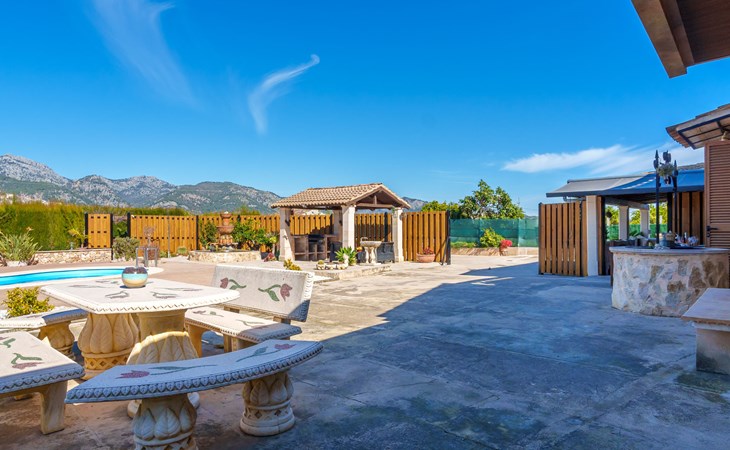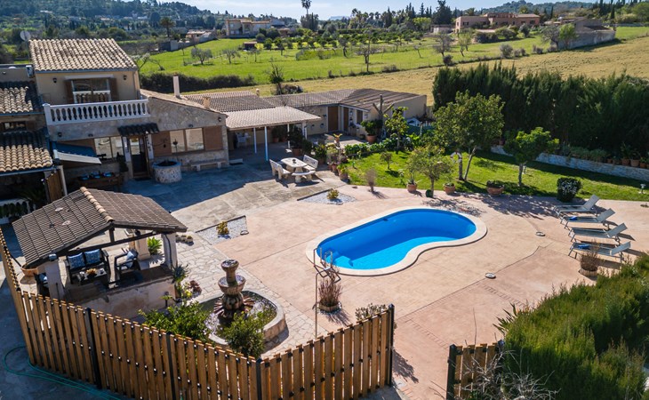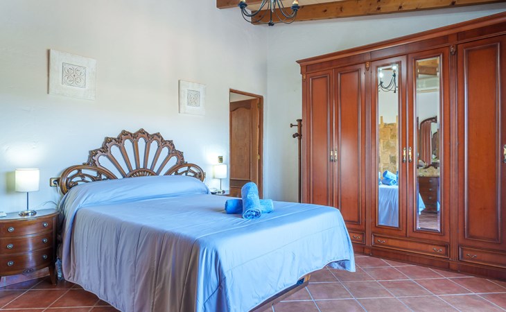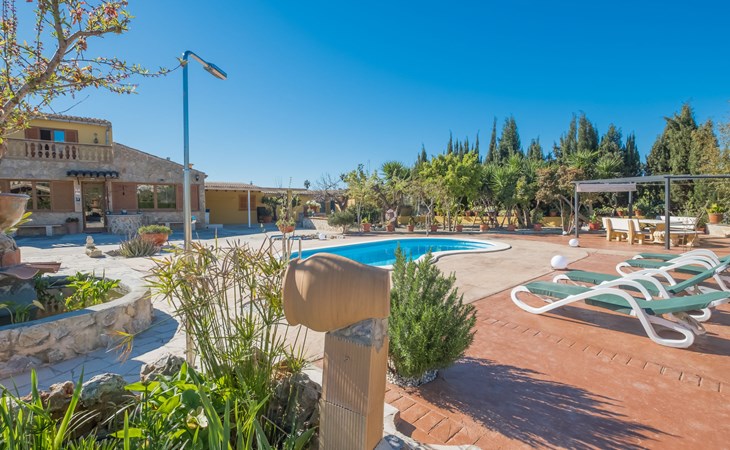 Very large, beautiful, cosy farm estate "Cas Pec", 2 storeys, surrounded by fields. Outside the resort, 1.5 km from the centre of Selva, in a quiet, sunny position, 30 km from the sea, 30 km from the beach, in the countryside. Private: large, beautiful garden, orchard, swimming pool kidney shaped (8 x 4 m, seasonal availability: 01.Mar. - 31.Oct.). Outdoor shower, patio, garden furniture, barbecue house, children's playground. In the house: internet access, WiFi, central heating system, air conditioning, burglar alarm system, washing machine. Parking at the house. Shop 1.5 km, grocery 1.5 km, shopping centre 3.5 km, restaurant 1.5 km, bus stop 1 km, railway station "Inca" 5.5 km, sandy beach "Alcudia" 25 km. Nearby attractions: Sierra tramuntana, Rutas ciclistas, Senderismo. Please note: car recommended. Object suitable for 6 adults. The owner lives on the same property.