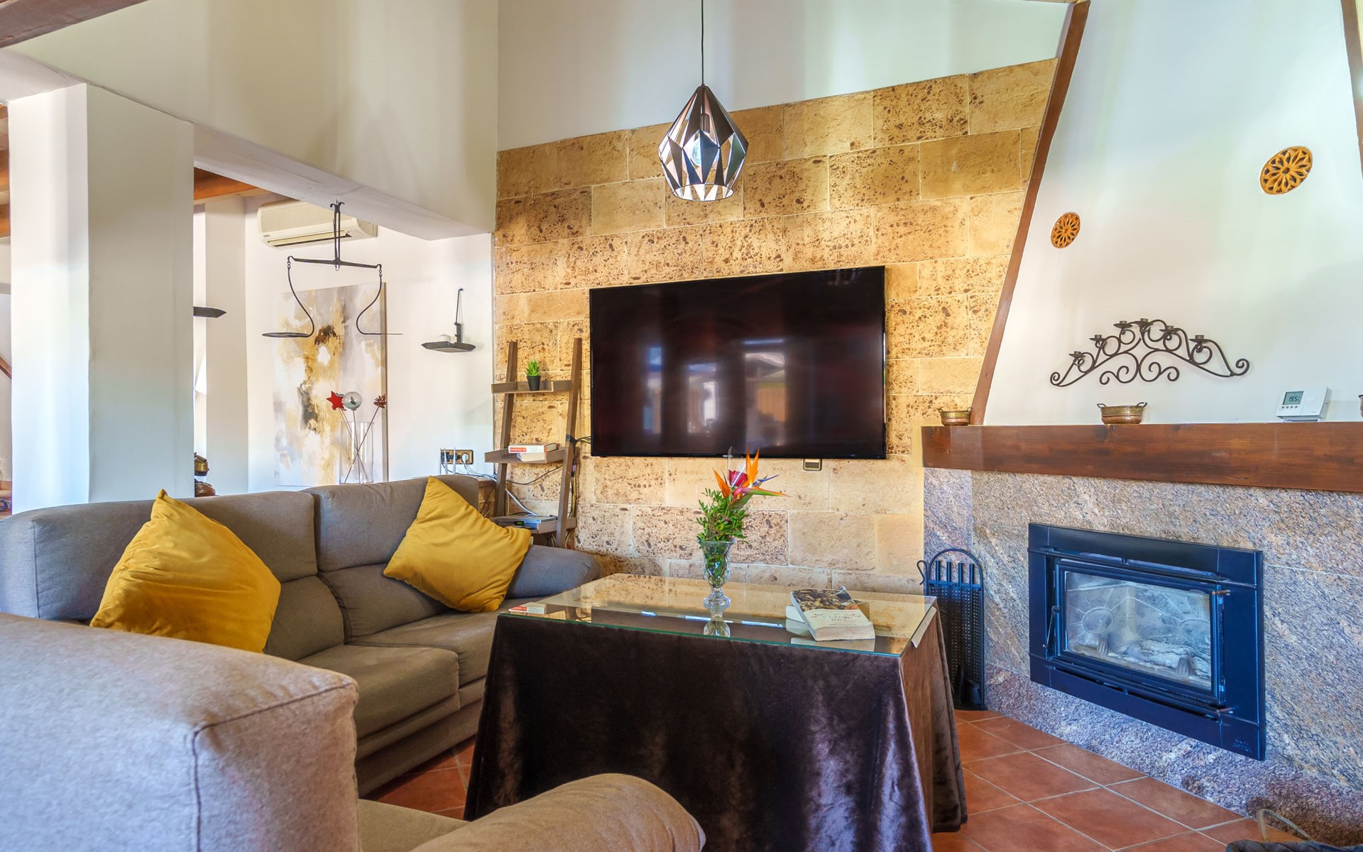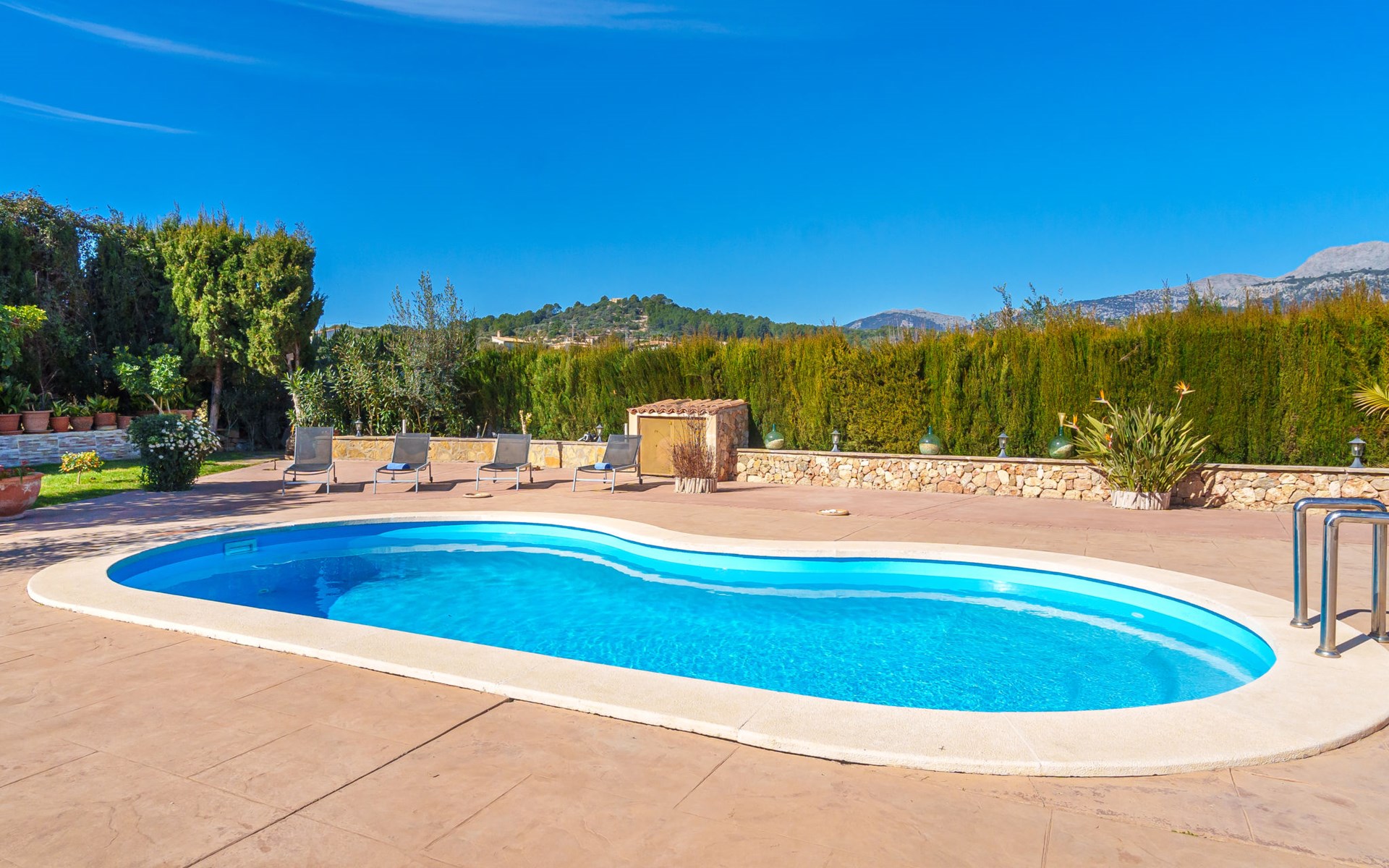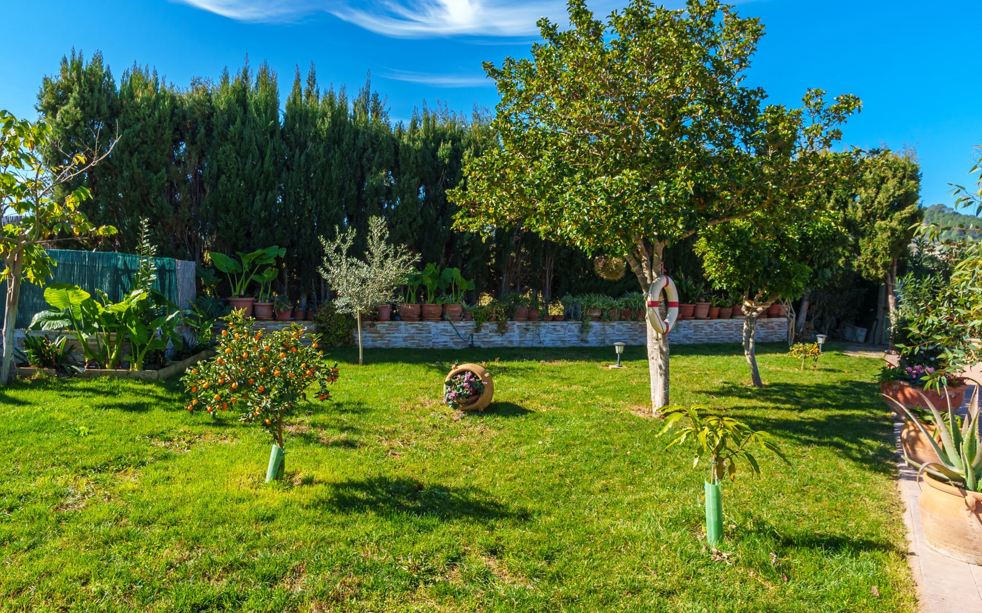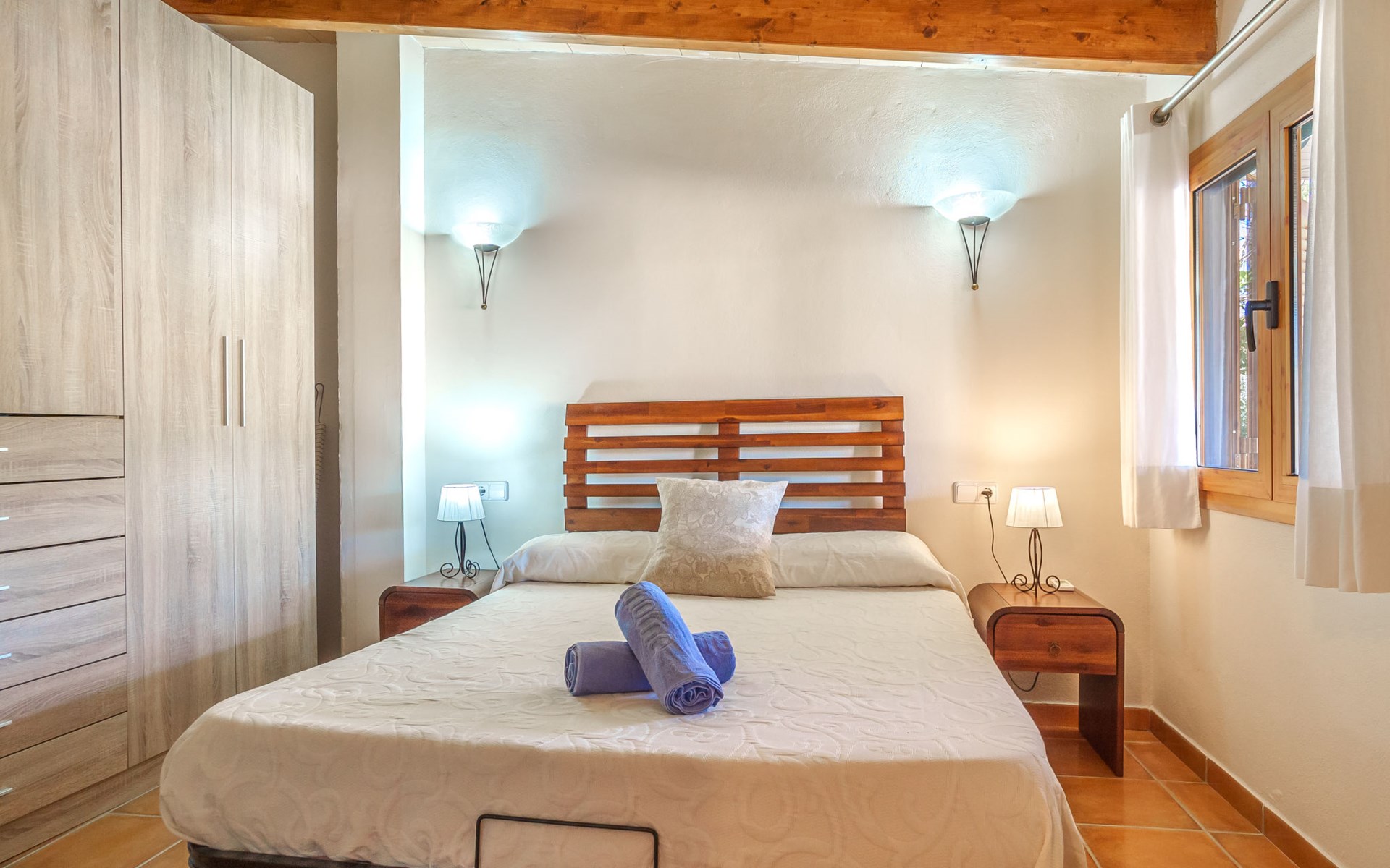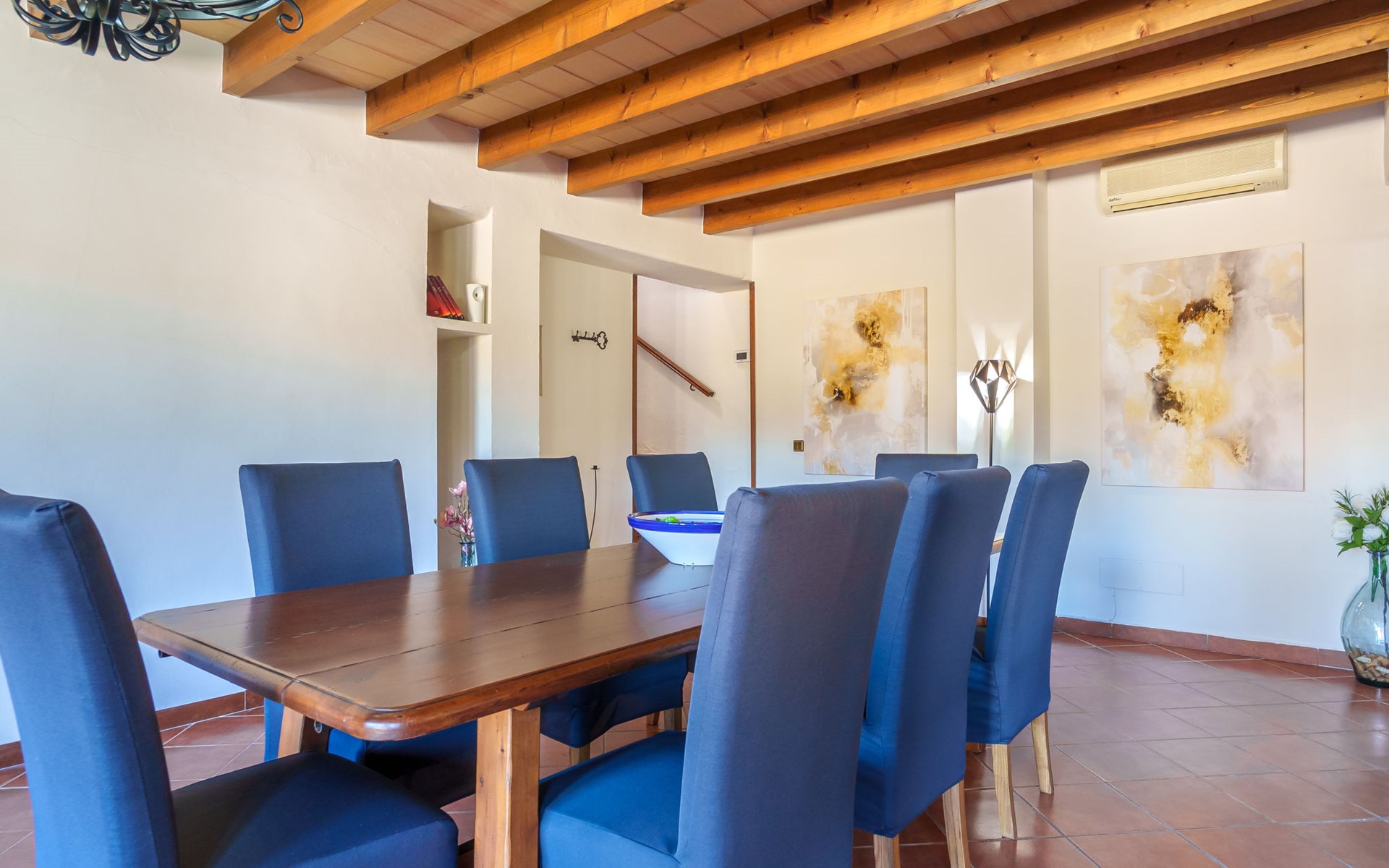 Very large, beautiful, cosy farm estate "Cas Pec", 2 storeys, surrounded by fields. Outside the resort, 1.5 km from the centre of Selva, in a quiet, sunny position, 30 km from the sea, 30 km from the beach, in the countryside. Private: large, beautiful garden, orchard, swimming pool kidney shaped (8 x 4 m, seasonal availability: 01.Mar. - 31.Oct.). Outdoor shower, patio, garden furniture, barbecue house, children's playground. In the house: internet access, WiFi, central heating system, air conditioning, burglar alarm system, washing machine. Parking at the house. Shop 1.5 km, grocery 1.5 km, shopping centre 3.5 km, restaurant 1.5 km, bus stop 1 km, railway station "Inca" 5.5 km, sandy beach "Alcudia" 25 km. Nearby attractions: Sierra tramuntana, Rutas ciclistas, Senderismo. Please note: car recommended. Object suitable for 6 adults. The owner lives on the same property.
