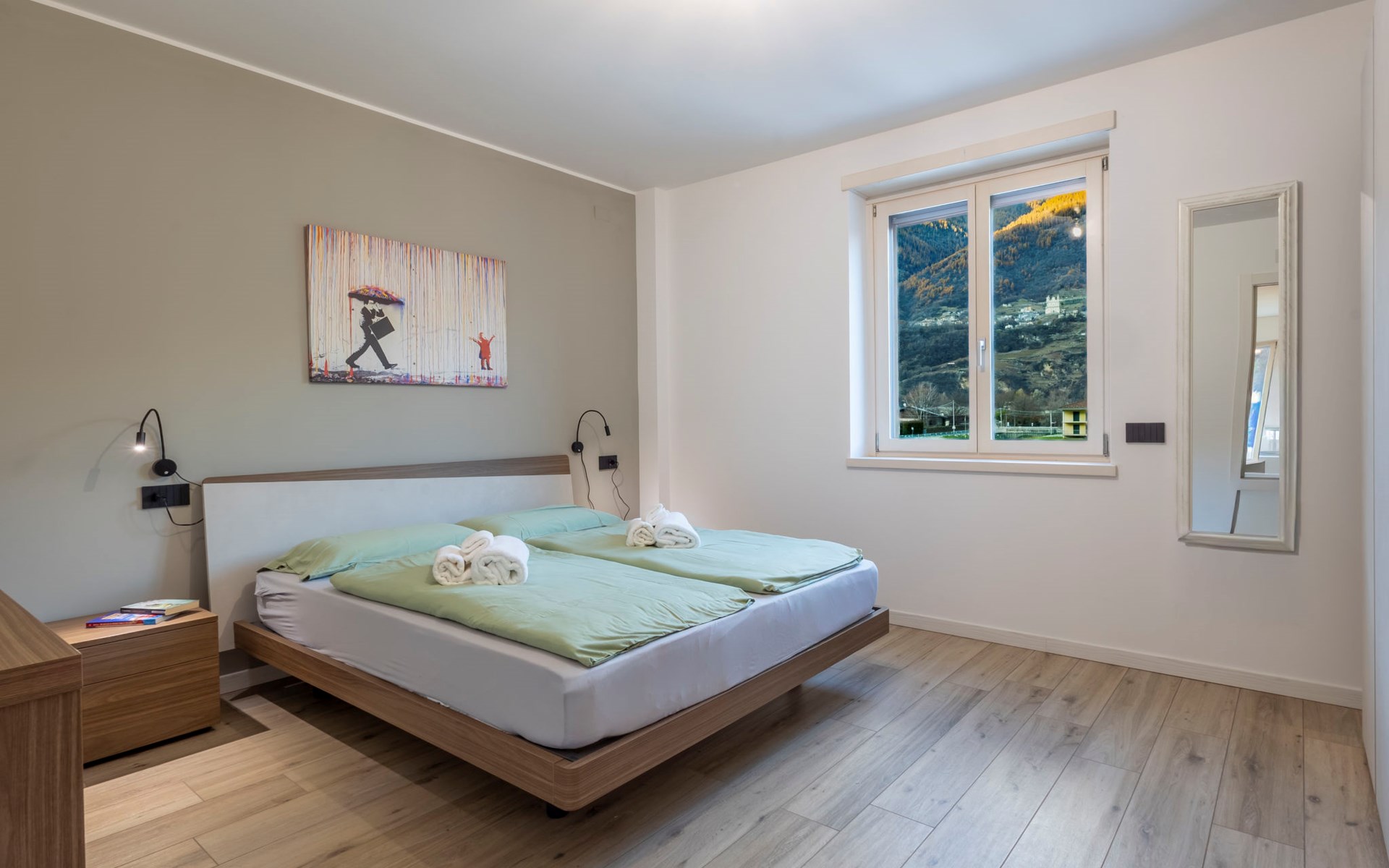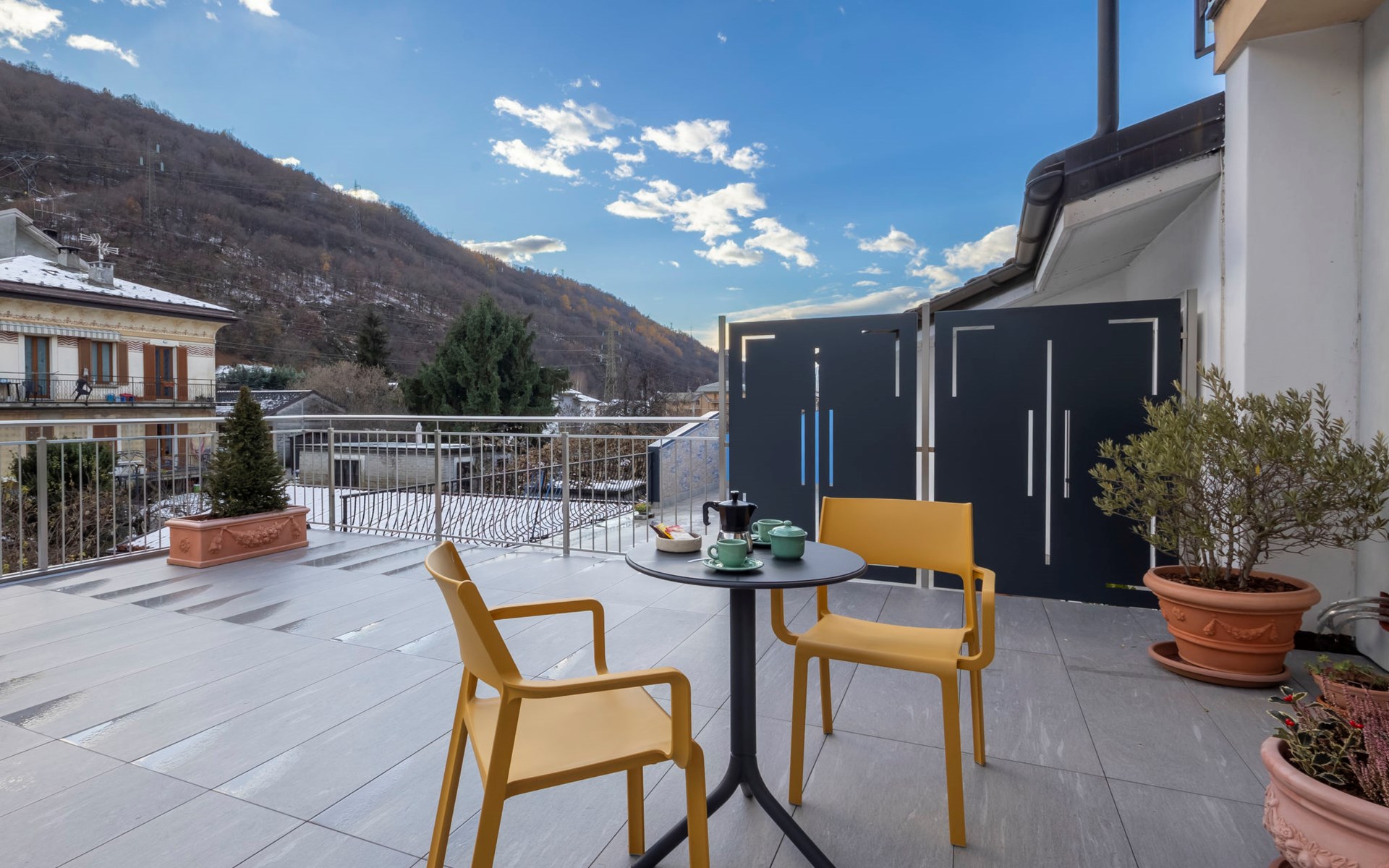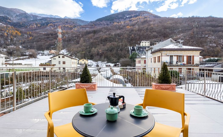 Small, comfortable apartment house "Piateda Terrace", 304 m a.s.l., 3 storeys, surrounded by meadows. In the centre of Piateda 6 km from the centre of Sondrio, in the residential district, 350 m from the river. For shared use: garden with plants and flowers. In the house: storage room for bicycles, storage room for skis. Stepped path (23 steps) to the house. Roofed, parking at the house, public parking on the road. Grocery 500 m, supermarket 700 m, restaurant 500 m, bar 100 m, bus stop 50 m, railway station "Poggiridenti-Tresivio-Piateda" 1.8 km. Nearby attractions: Train Bernina Express:Tirano-St Moritz 21 km. Well-known ski regions can easily be reached: Aprica 25 km, Bormio 58 km, Livigno 93 km. Well-known lakes can easily be reached: Lago di Como 47 km. Hiking paths: Sentiero Valtellina, Lago di Venina, Gaggio - Le Piane - Armisola, Rifugio Mambretti. Please note: car recommended. The owner lives on the same property.