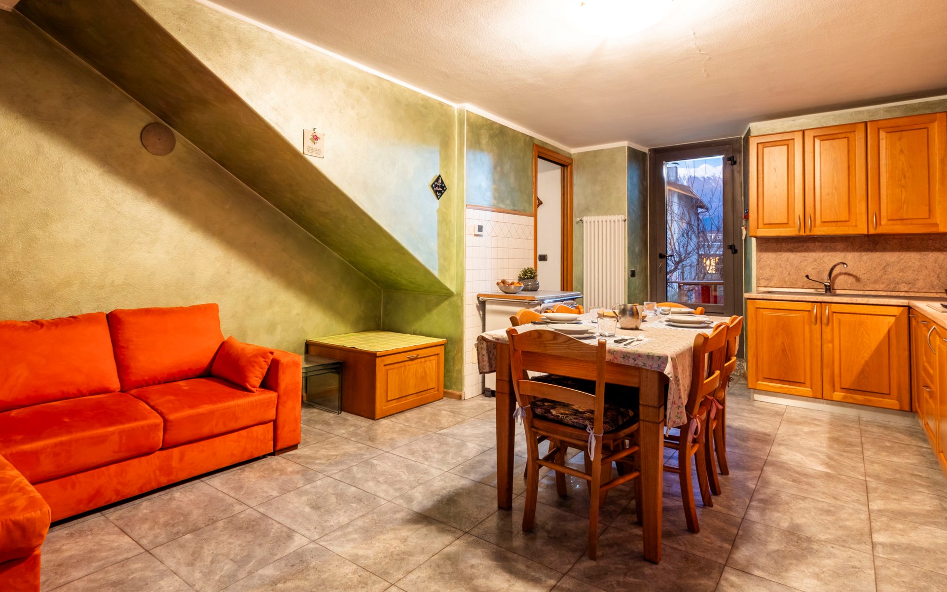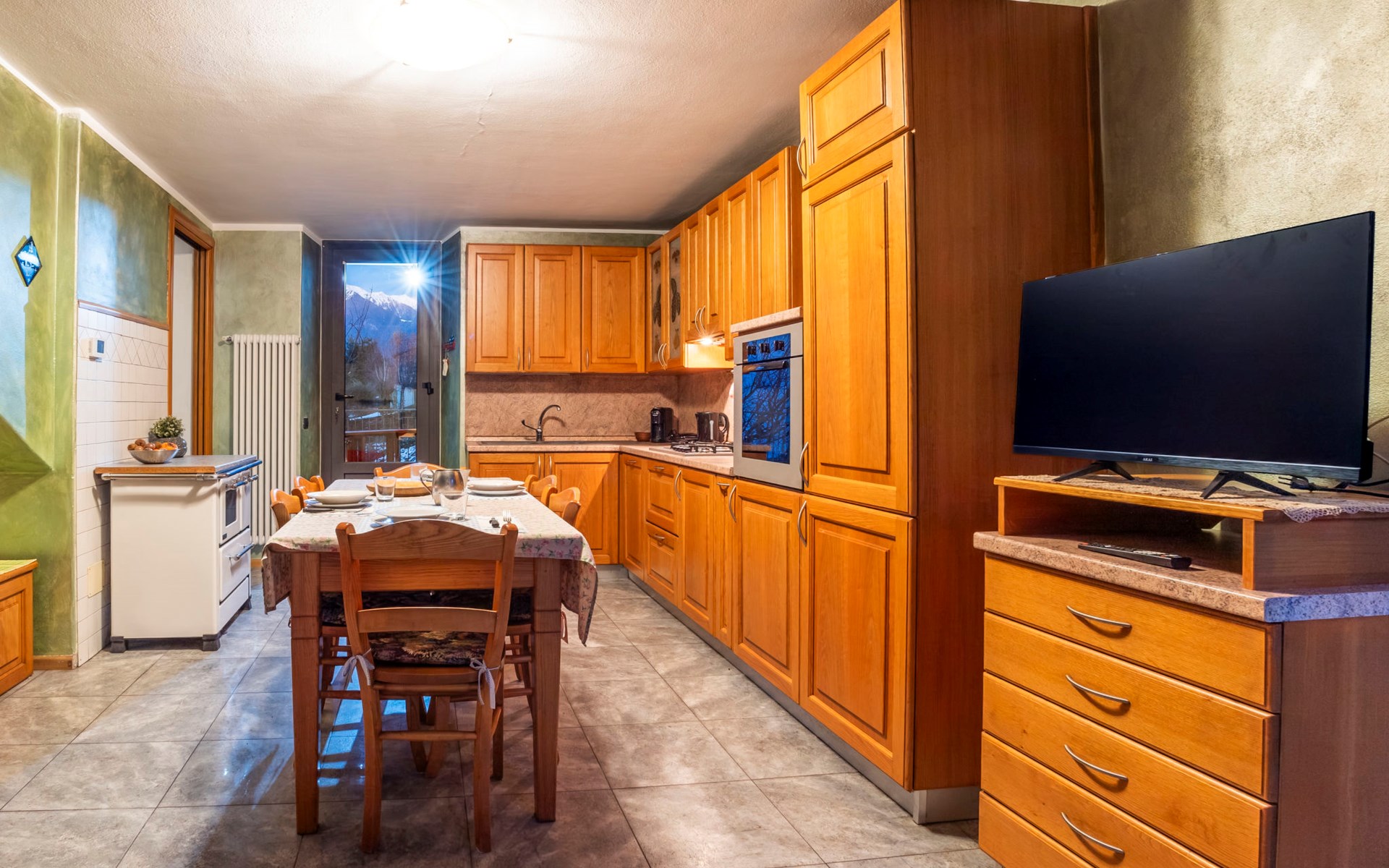 Small, rustic house "Casa Quadrifoglio Terrace", 300 m a.s.l., 2 storeys. In the centre of Talamona 4 km from the centre of Morbegno, in the residential district, excellent location: right in the centre but still quiet, 20 km from the lake, 1.2 km from the river. Private: large garden with lawn and trees. Terrace. In the house: storage room for bicycles, storage room for skis, central heating system. Narrow motor access (50 m via unmade road). Parking at the house. Supermarket 600 m, restaurant, bar 200 m, bus stop 500 m. Nearby attractions: Fly Emotion (Zipline) 13 km, Ponte Tibetano Ponte nel Cielo 16 km, Riserva Naturale della Val di Mello 19 km, Sondrio 24 km, Train Bernina Express: Tirano-St Moritz 51 km. Well-known ski regions can easily be reached: Campodolcino 52 km, Madesimo 58 km. Well-known lakes can easily be reached: Lago di Como 2 km. Hiking paths: Monte Foffricio, Rifugio Legnone, Ponte di Stavello, Rifugio di Fuentes, Osiccio di Sotto – Osiccio di Sopra.