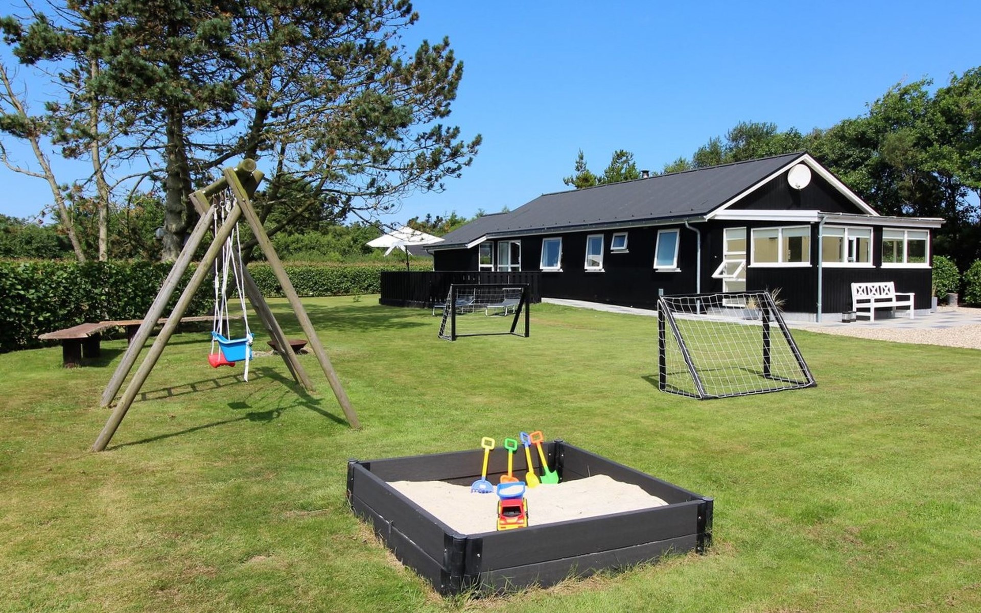 Single-family house, built in 1970. 500 m from the sea. Private: natural state property 1'500 m2. Terrace (70 m2), barbecue, children's playground (swing). In the house: washing machine, tumble dryer. Parking at the house. Grocery 400 m. The owner does not accept any youth groups.