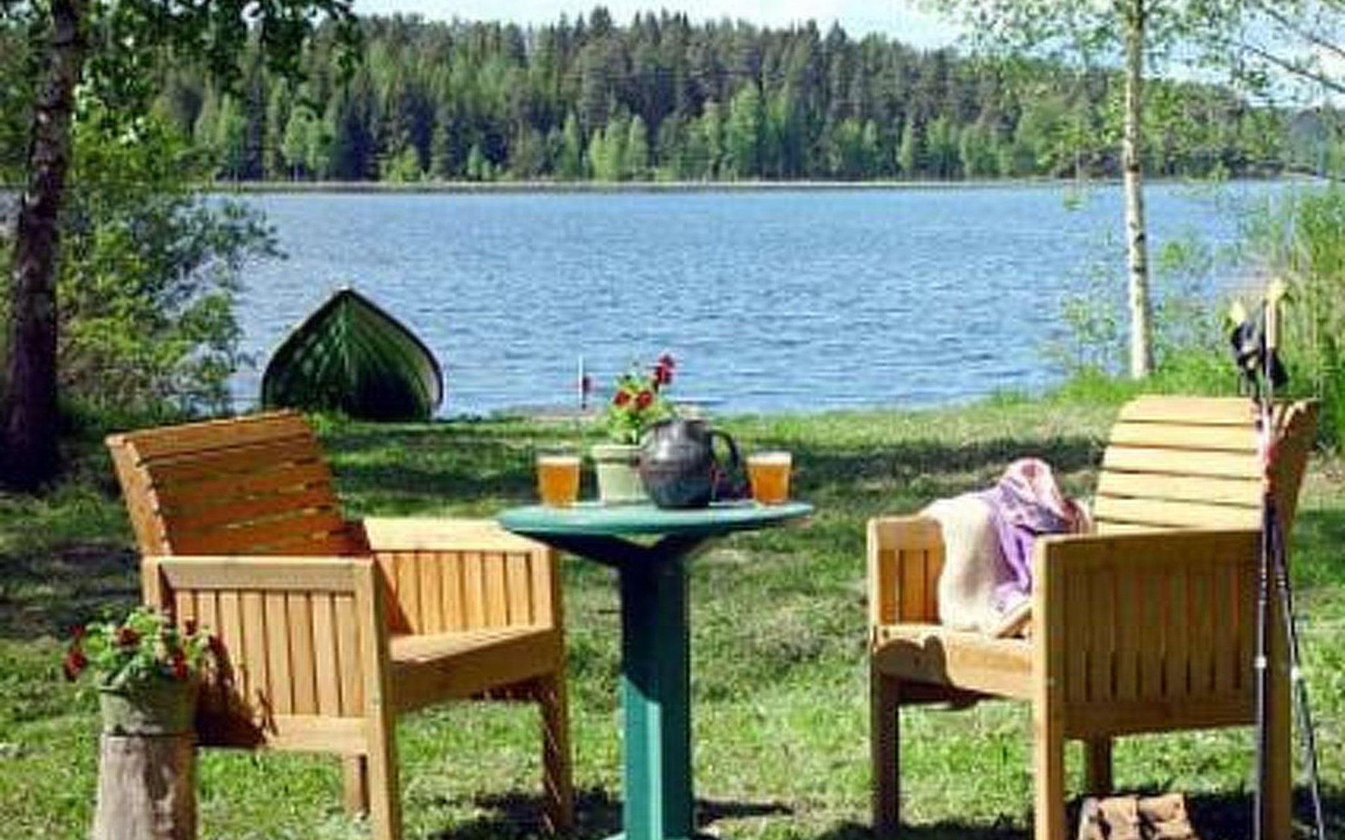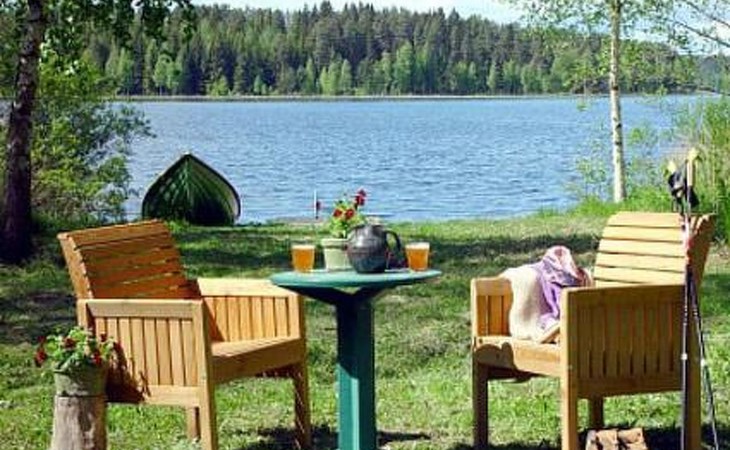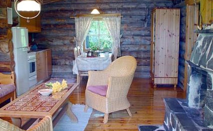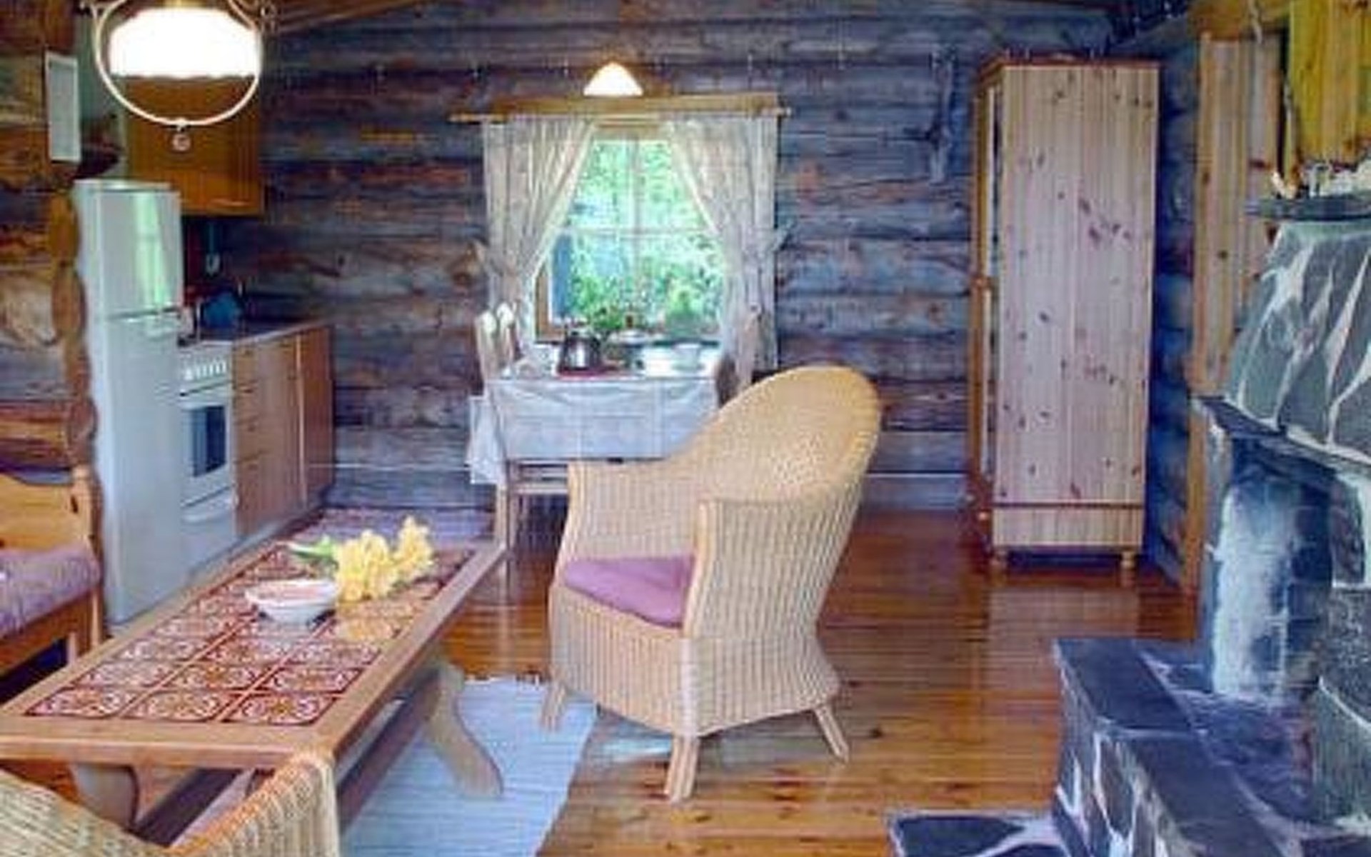 Log cabin 1986, living room/kitchen, bedroom double bed, sauna, open veranda. Portable charcoal BBQ grill. Please bring own coal.