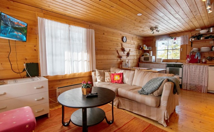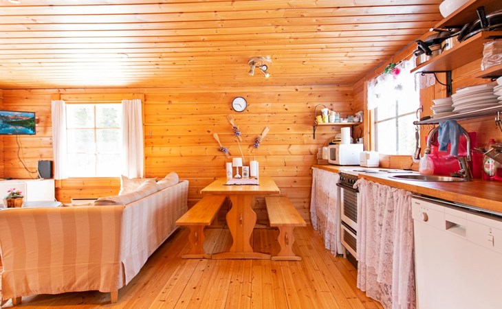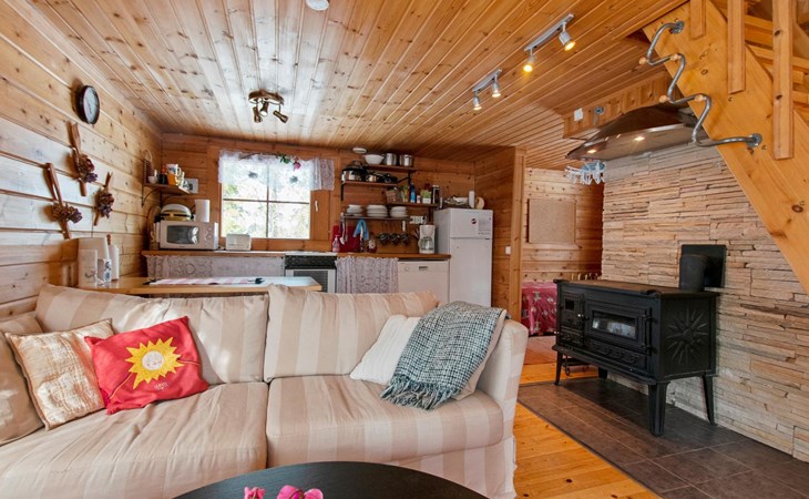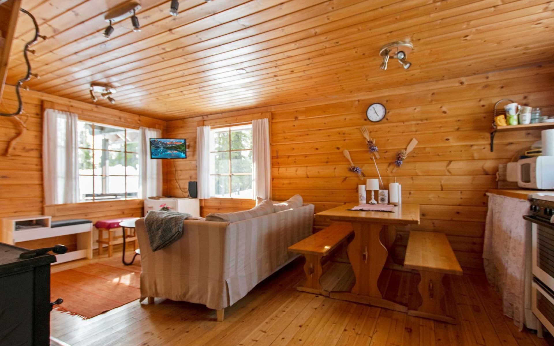 The price includes a box (about 1.5 log bags) of firewood, more can be purchased from the cottage's caretaker or at local stores. A separate cabin, located on flat forest lot, peaceful place. 400 m to lake Pyhäjärvi, good for fishing. Close to services, e.g. 10 min drive to Ruka. Husky farm close to the cabin.