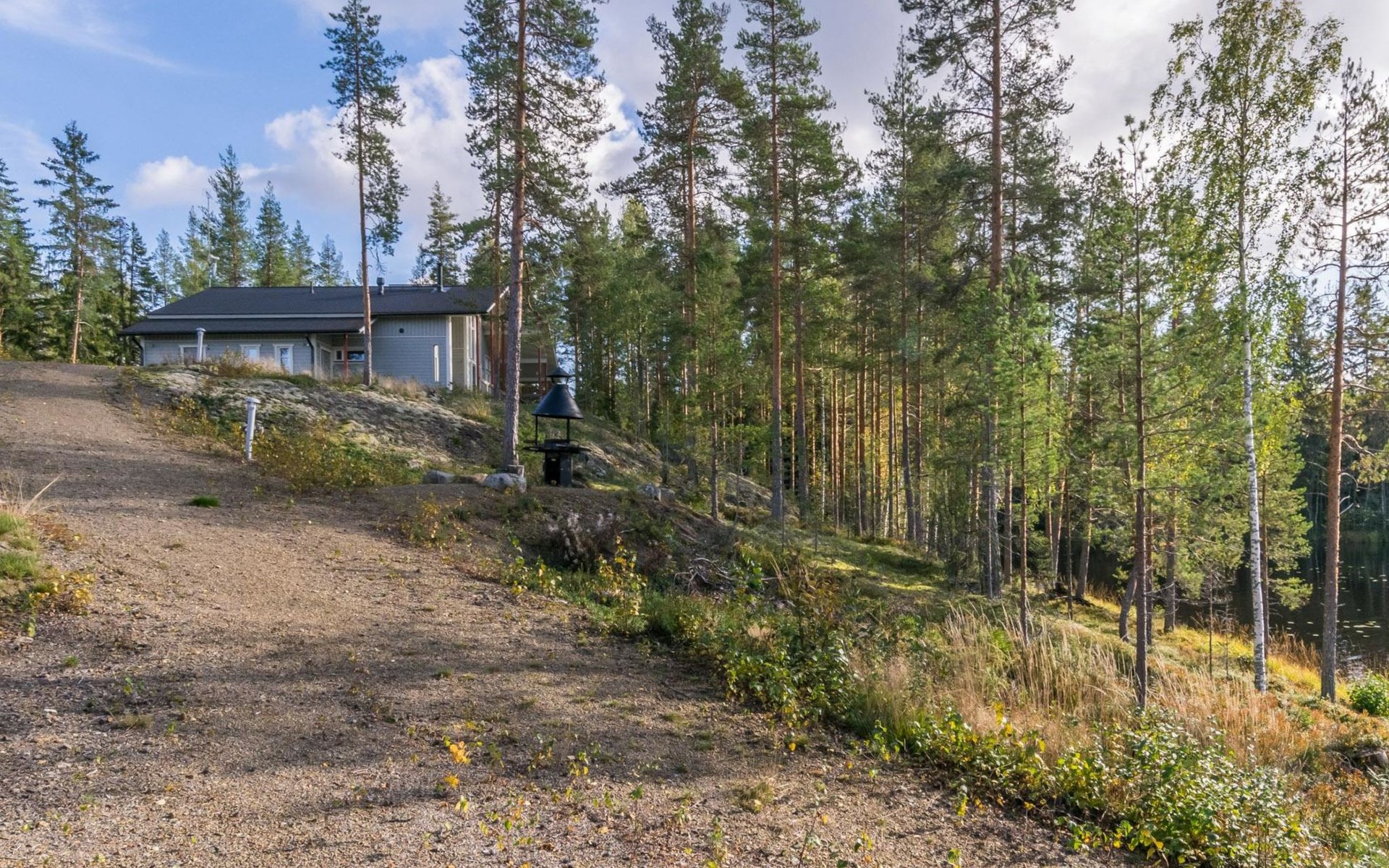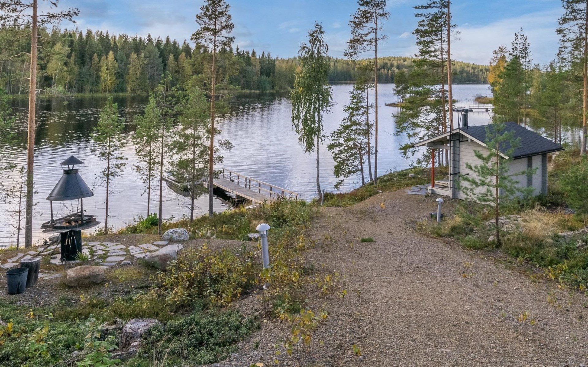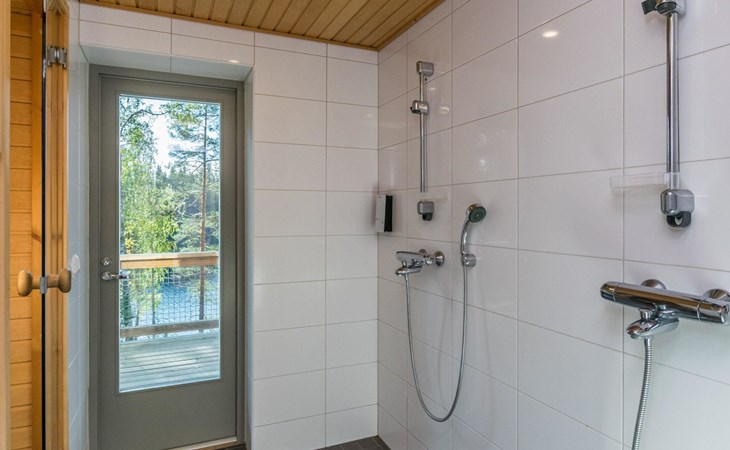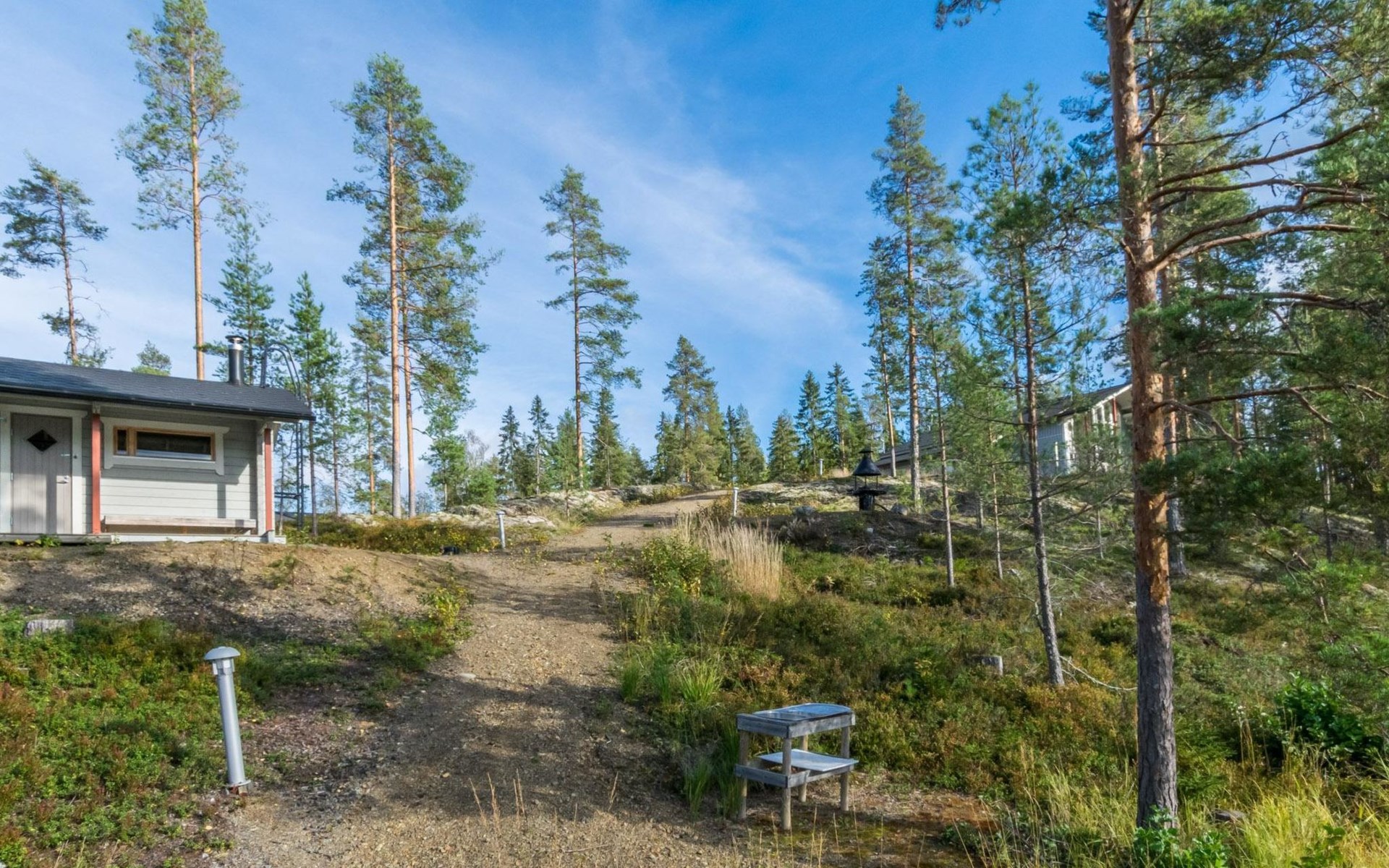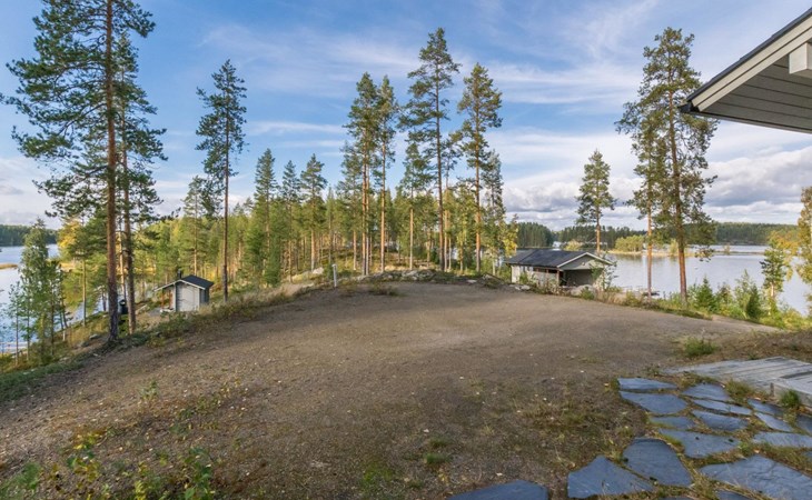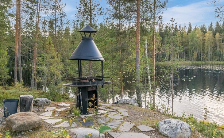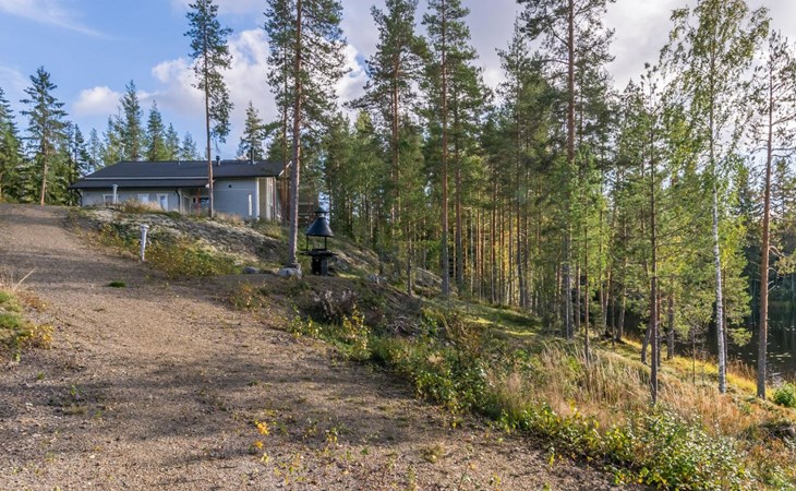 Fish cleaning spot is near the grill on the shore. The villa is located on the shores of Saimaa, in peaceful area of Tallusniemi. Rocky slope plot, 40 m to the lakeside sauna along a lighted path, the way is rather steep. Steeply deepening shore.