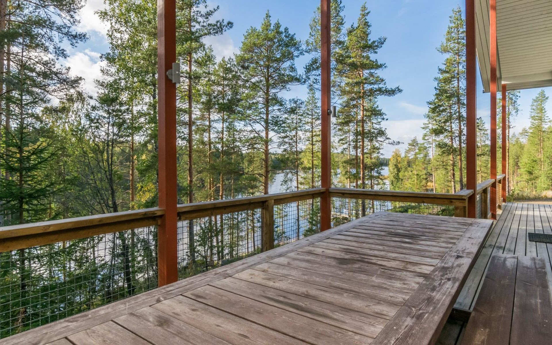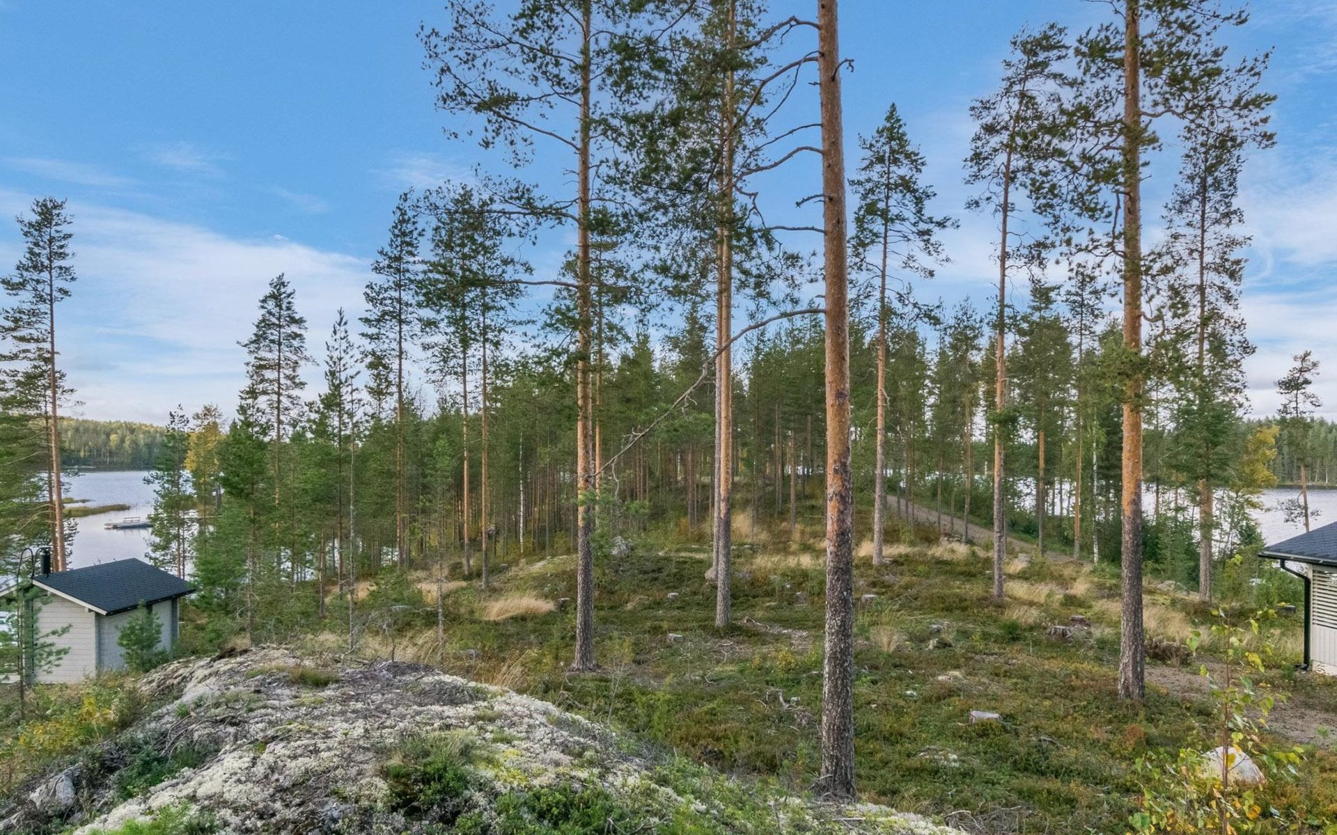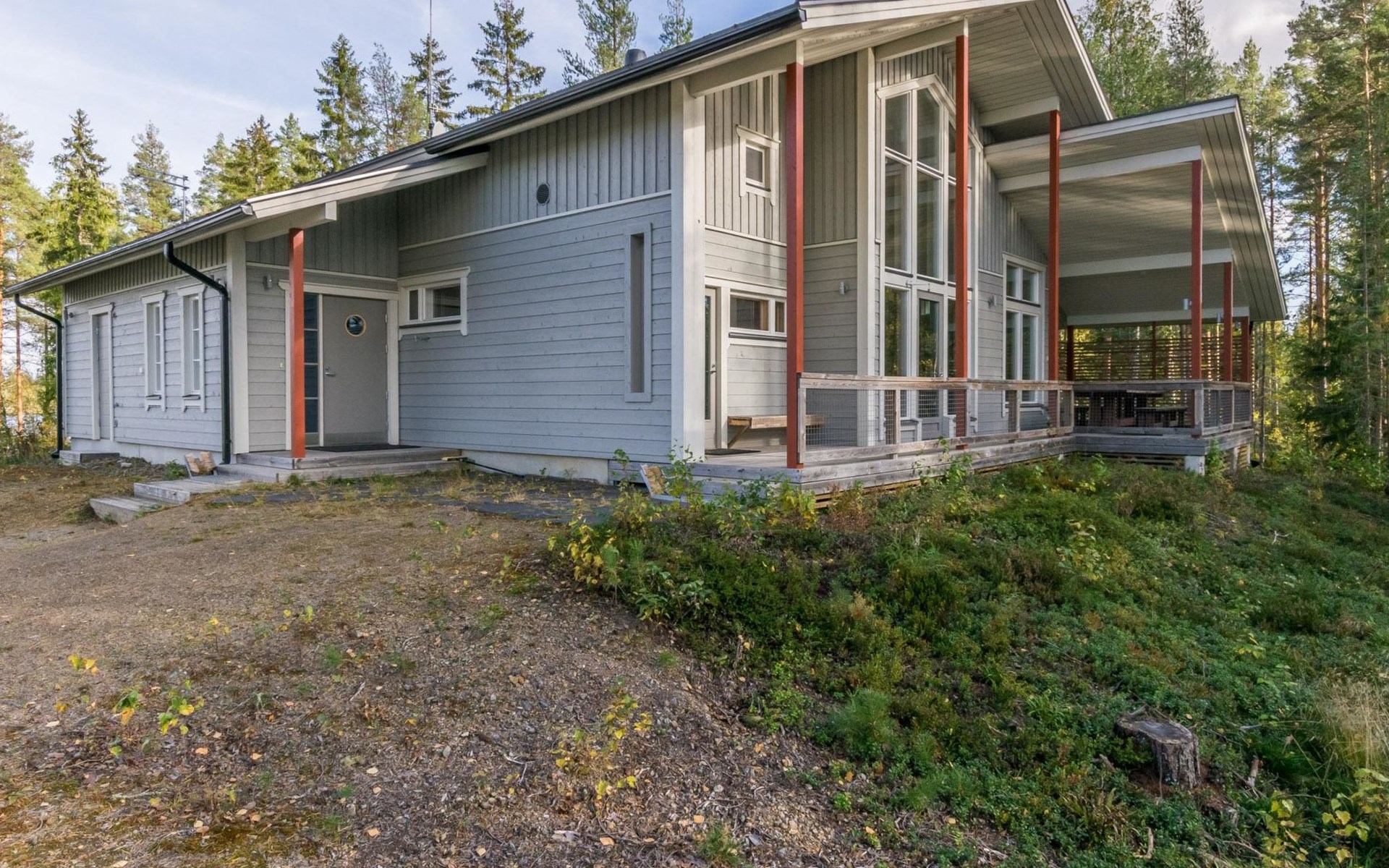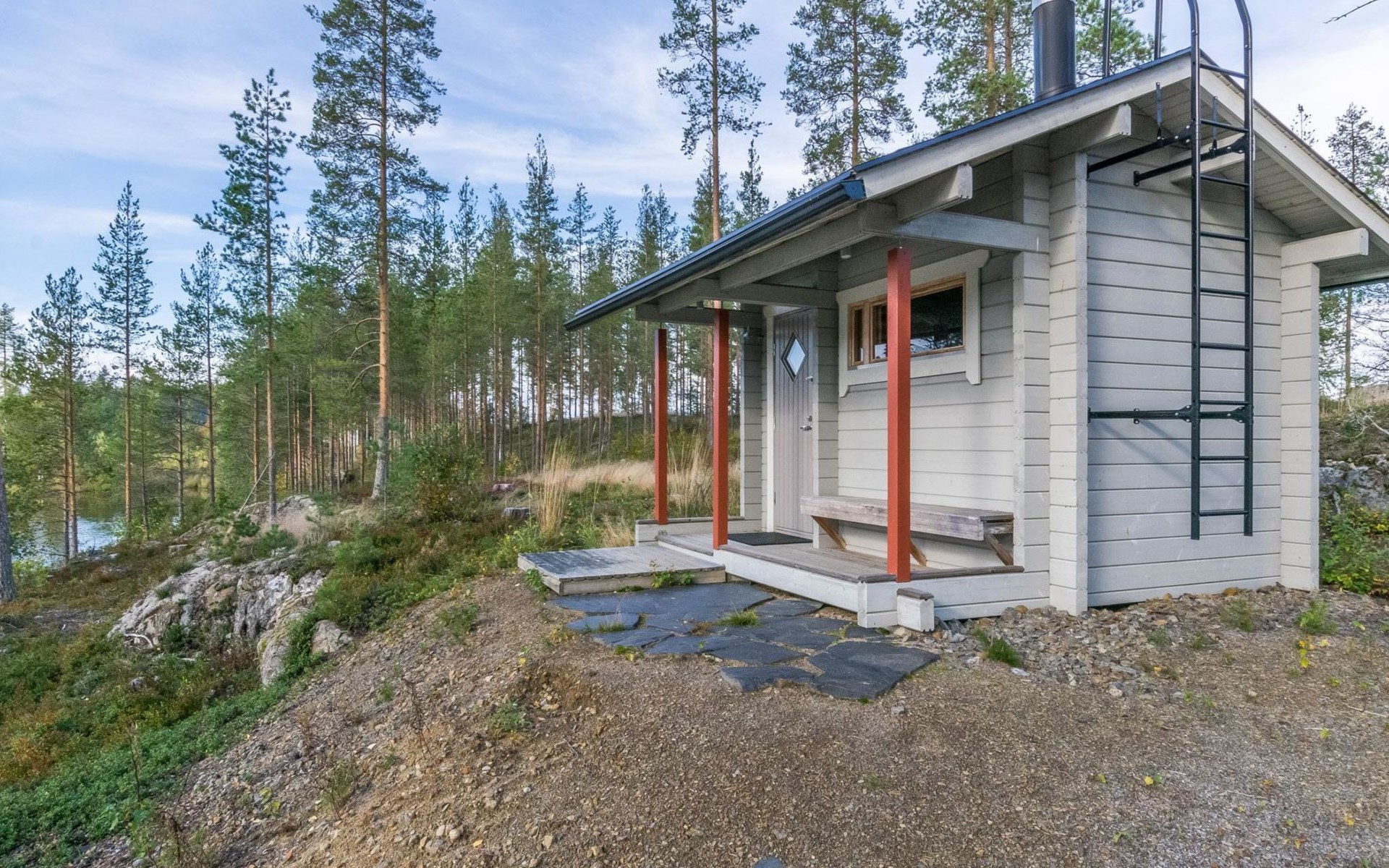 Fish cleaning spot is near the grill on the shore. The villa is located on the shores of Saimaa, in peaceful area of Tallusniemi. Rocky slope plot, 40 m to the lakeside sauna along a lighted path, the way is rather steep. Steeply deepening shore.