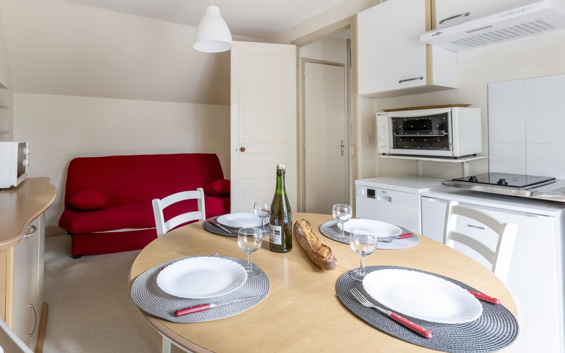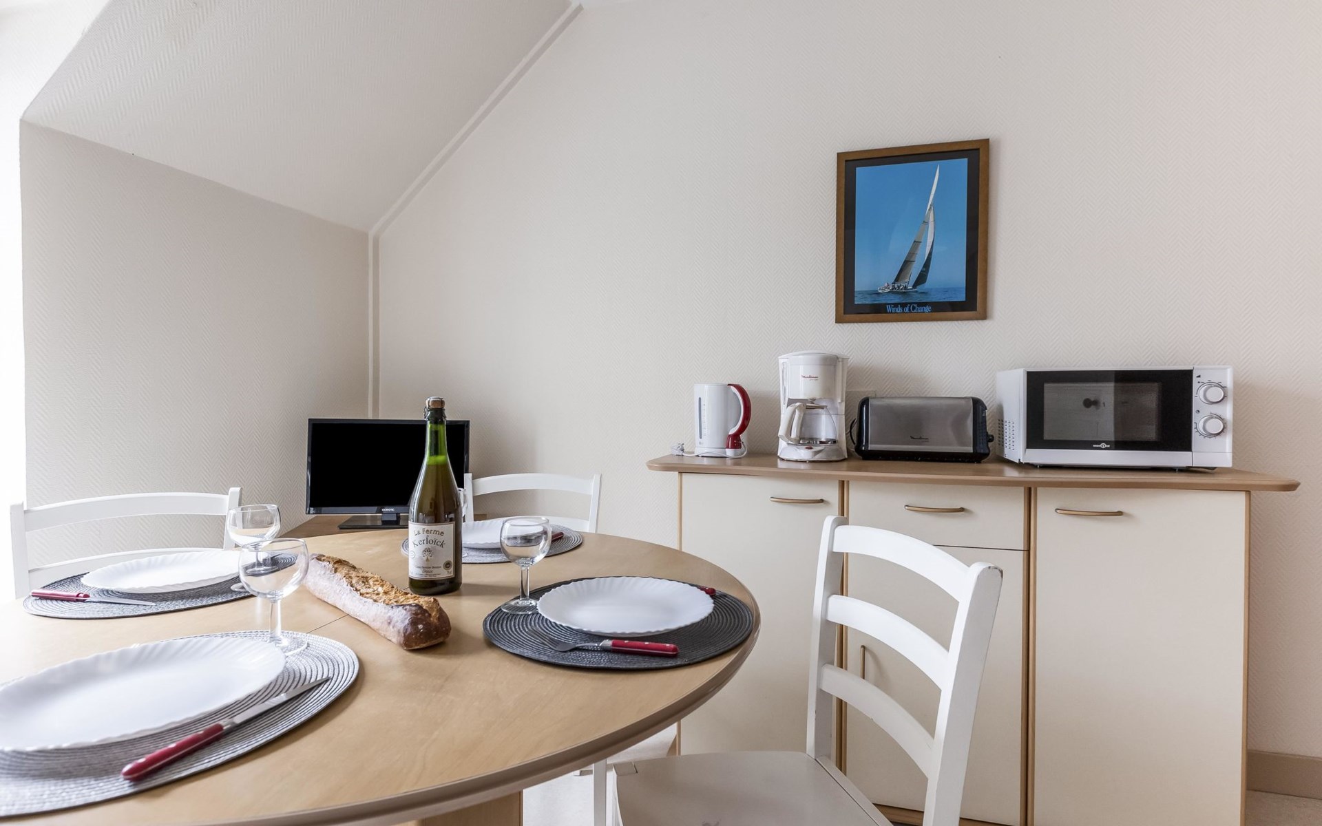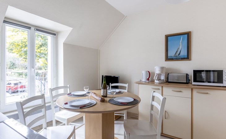 La Richardais, the small locality on the Rance river 1km south of Dinard. The residence " Le Petit Robinson" is a house divided into 8 apartments. It is located on the border of Dinard, along the coastal road that leads to Dinard. Residence "Le Petit Robinson", renovated. 8 apartments in the residence. In the resort 3 km from the centre of Dinard, 600 m from the sea, 1.4 km from the beach, on a main road. For shared use: property 850 m2 with lawn, parking. Shop 1.5 km, grocery, restaurant 50 m, bus stop "La Bodinais" 210 m, railway station "SCNF Saint-Malo" 9 km, ferry "gare maritime du Naye" 8.2 km, sandy beach "Le Prieuré" 1.4 km, indoor swimming pool 4 km. Sports harbour 2.5 km, sailing school 1.4 km, indoor tennis centre 2 km, minigolf 1 km, riding stable 2.3 km, sports centre 2.5 km, walking paths from the house 900 m. Nearby attractions: Saint-Malo 10 km, Le Grand Aquarium de Saint-Malo 6 km, Cancale 20 km, Dinan 23 km, Cap Fréhel et Fort la Latte 37 km, Le Mont Saint-Michel 60 km. Please note: no lift. The keys‘ handover takes place by the agency Interhome in Dinard, 3 km. Main road. Additional accommodations can be booked. Neighbourhood highly sensitive to noise. Quietness and good behaviour expected. Prieuré beach at 1400m, possibility of swimming only at high tide. Coastal paths within walking distance 500 meters. Busy and noisy road.