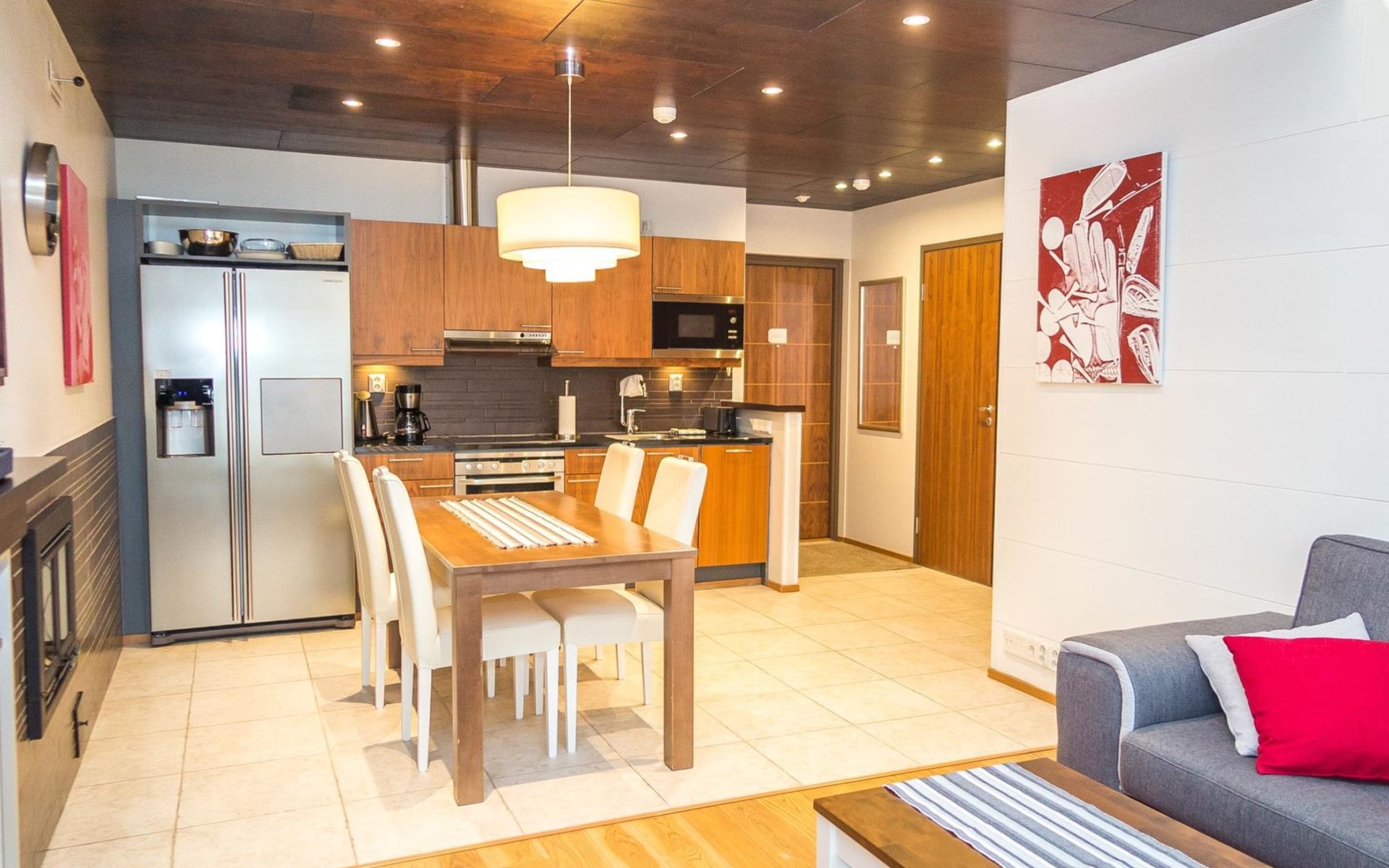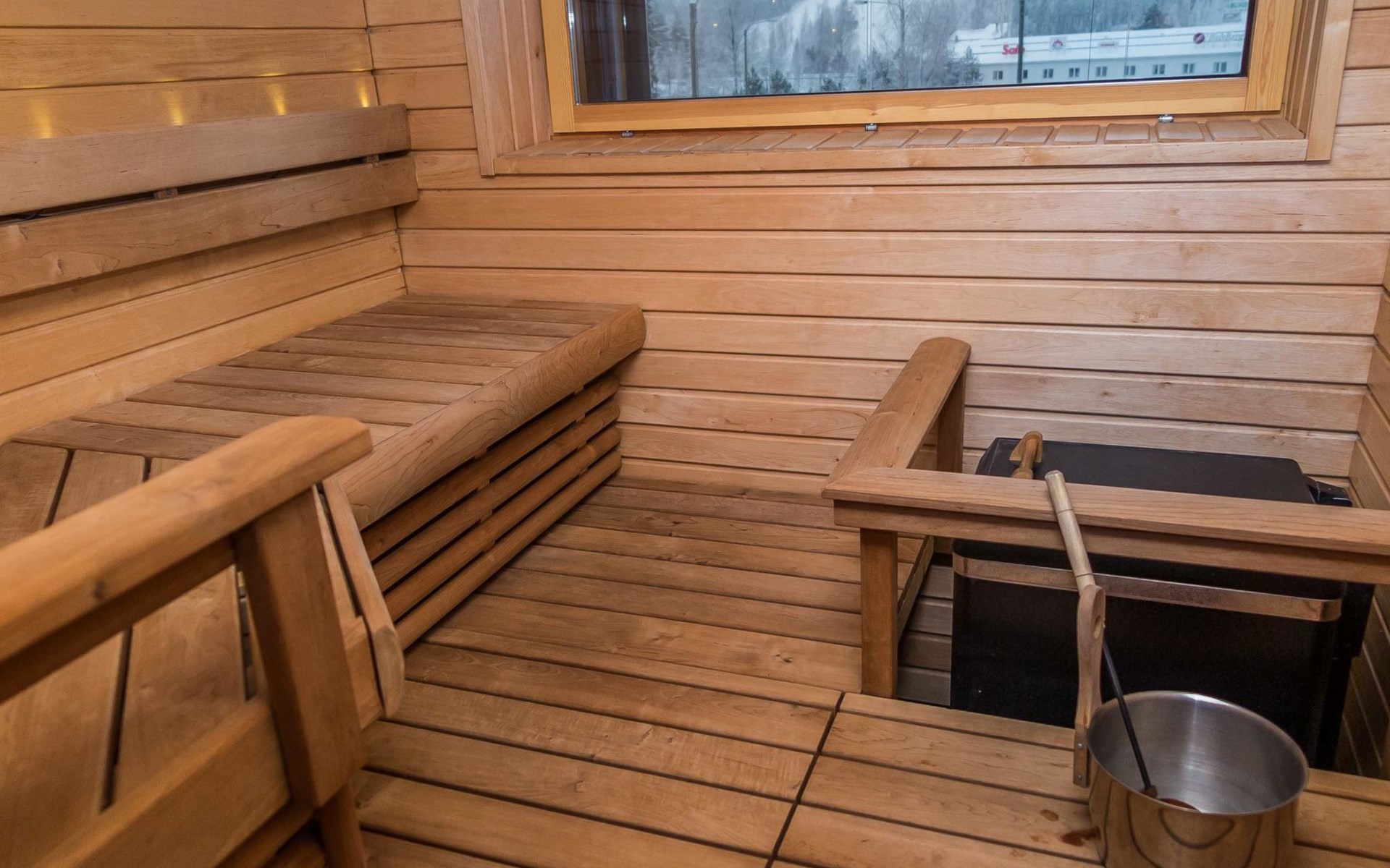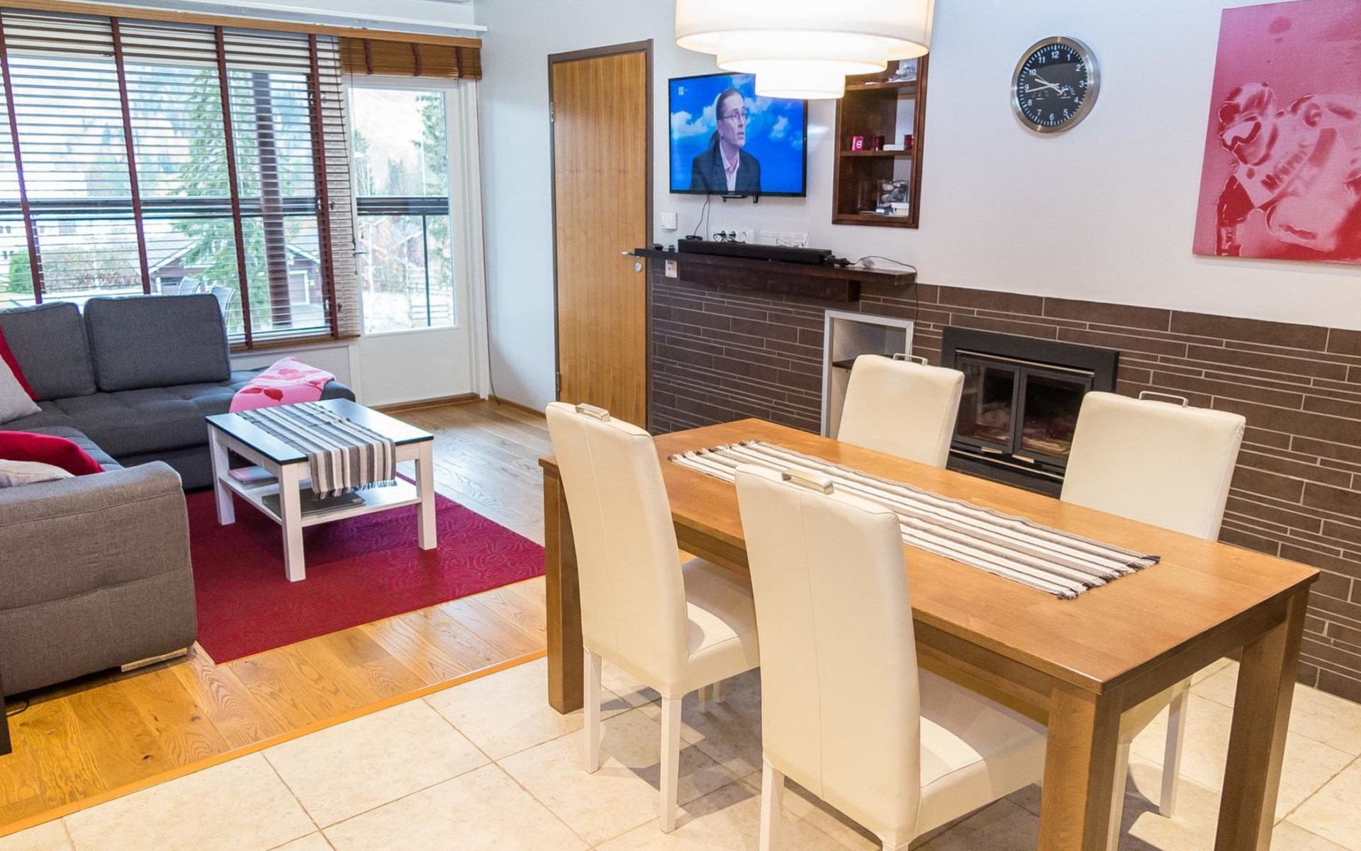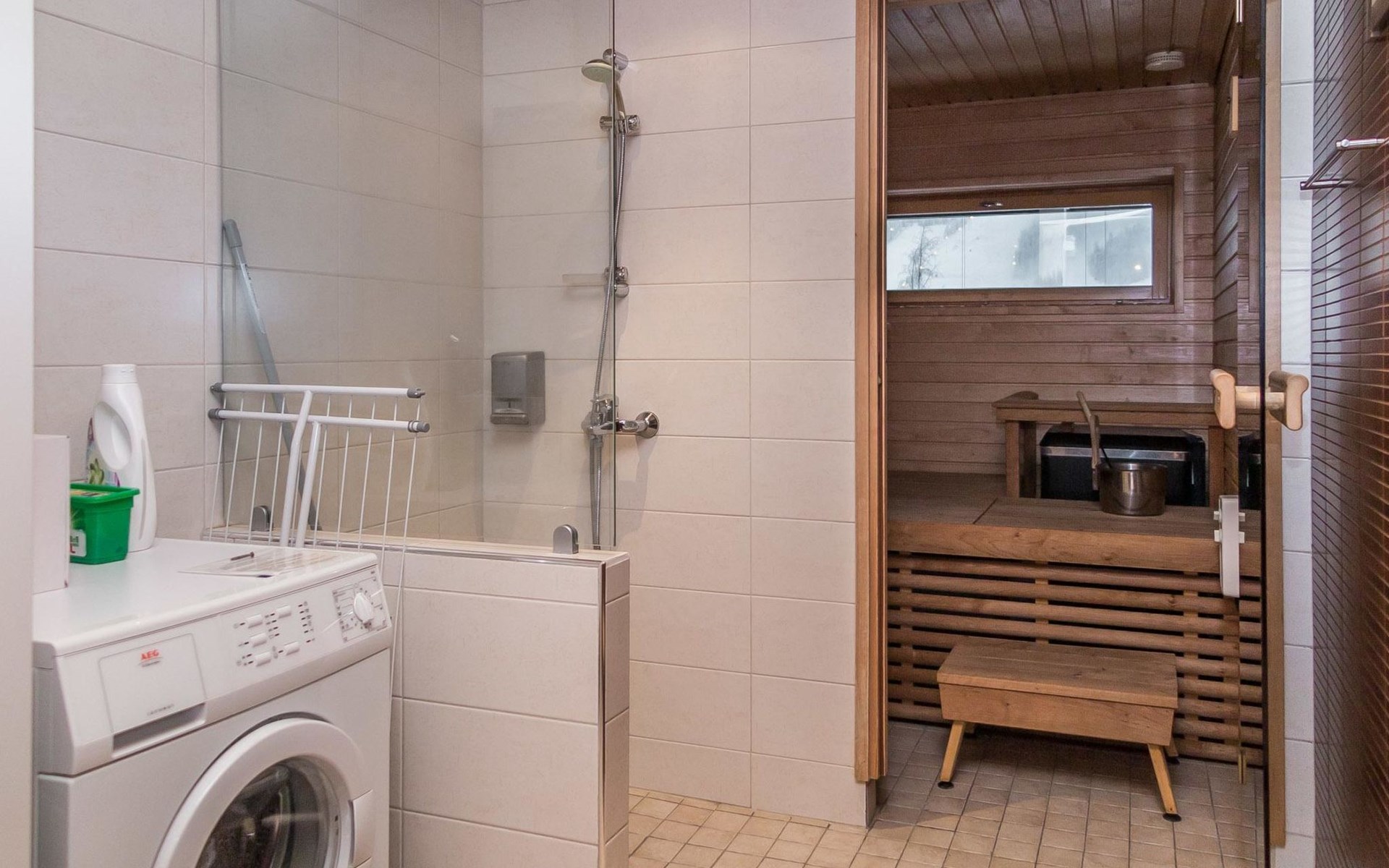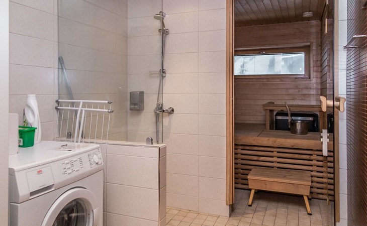 Apartment has own sauna with electric stove, washing room with shower and WC. The fireplace in the apartment in not in use.