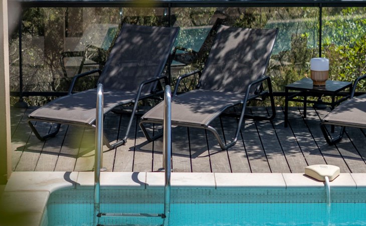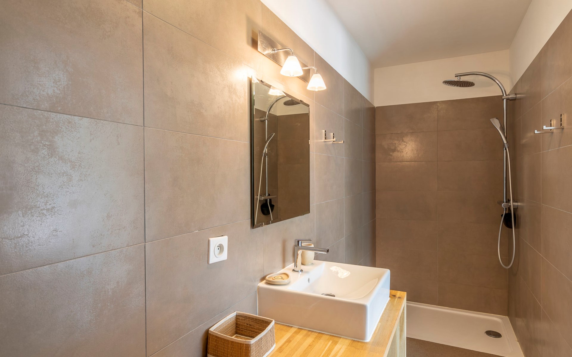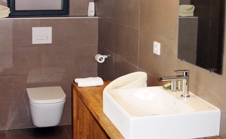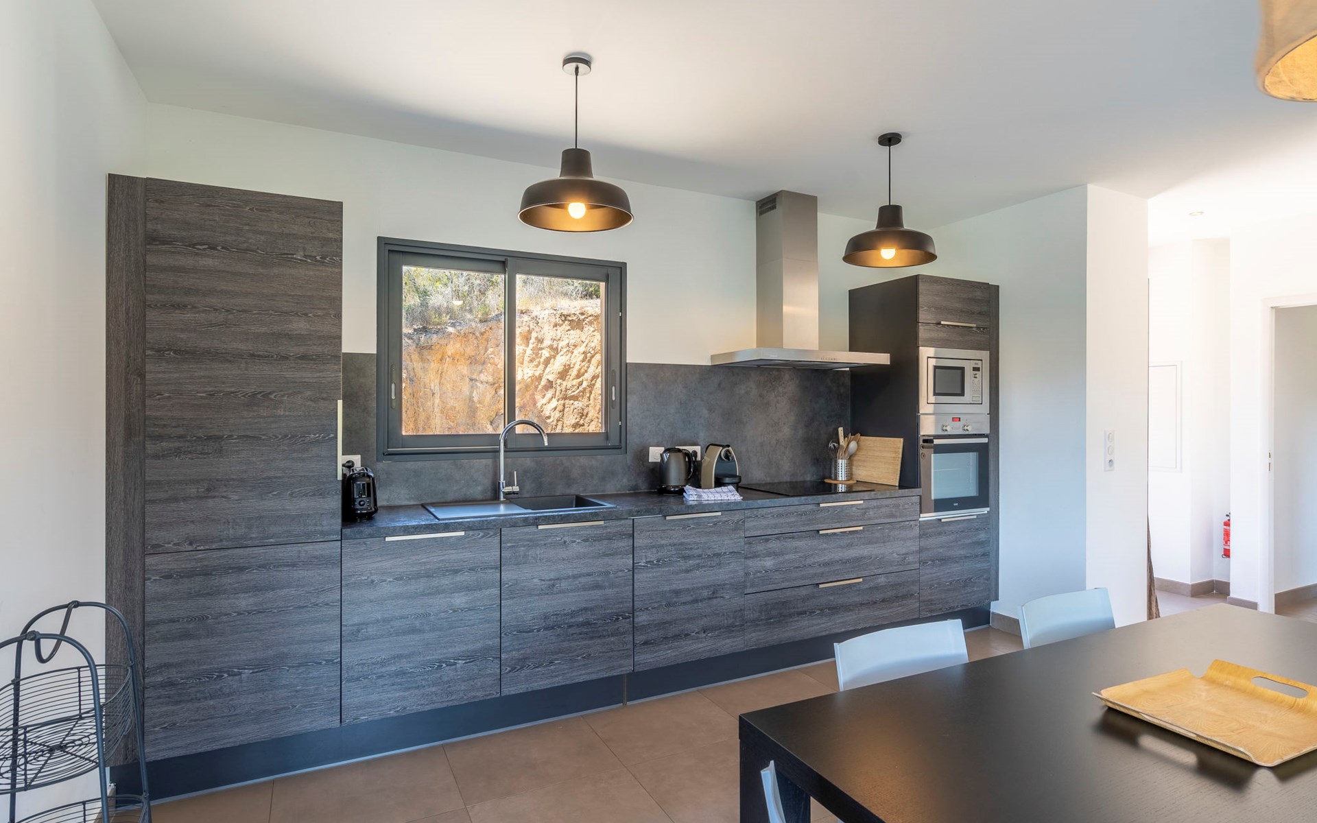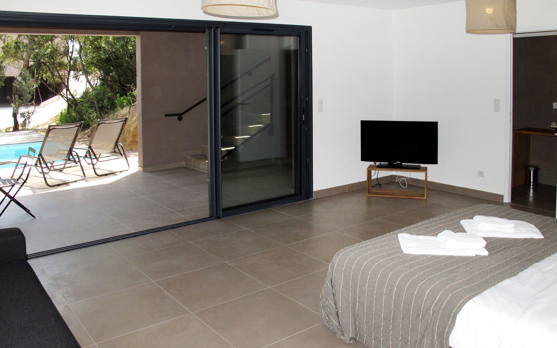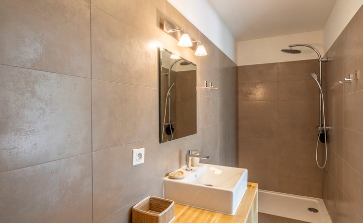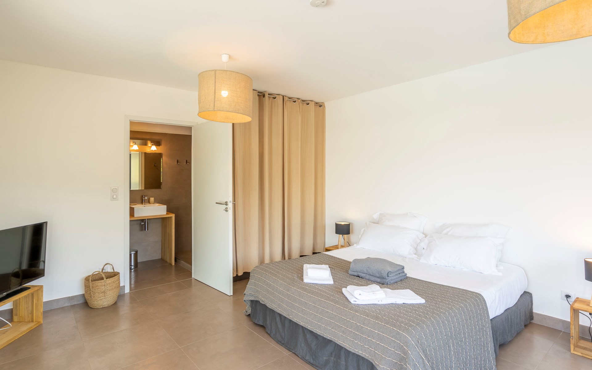Modern, beautiful residence "Domaine de Lorello". Above Porticcio 3 km from the centre of Porticcio, 16 km from the centre of Ajaccio, 118 km from the centre of Porto-Vecchio, in an elevated position on a slope, residential area (villas), 1.6 km from the sea. For shared use: terraced garden with plants, natural garden. Private: swimming pool (5 x 4 m, seasonal availability: 01.Apr. - 15.Nov.). Outdoor shower, terrace. Steep motor access to the house. Parking (for 2 cars) at the house. Shop 3 km, bus stop "office de tourisme" 2.6 km, sandy beach "Plage d'Agosta" 1.6 km. Please note: car recommended. The owner does not accept any youth groups. Residence with electric gates. Neighbourhood highly sensitive to noise. Quietness and good behaviour expected.