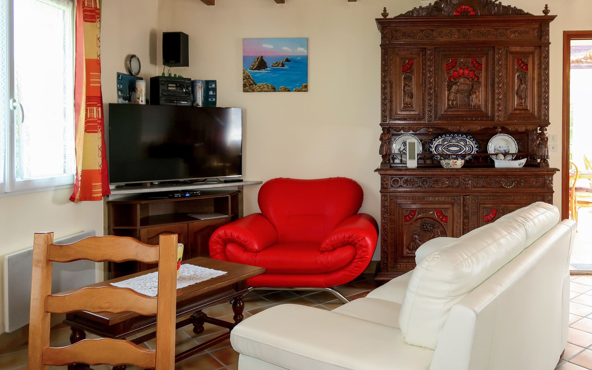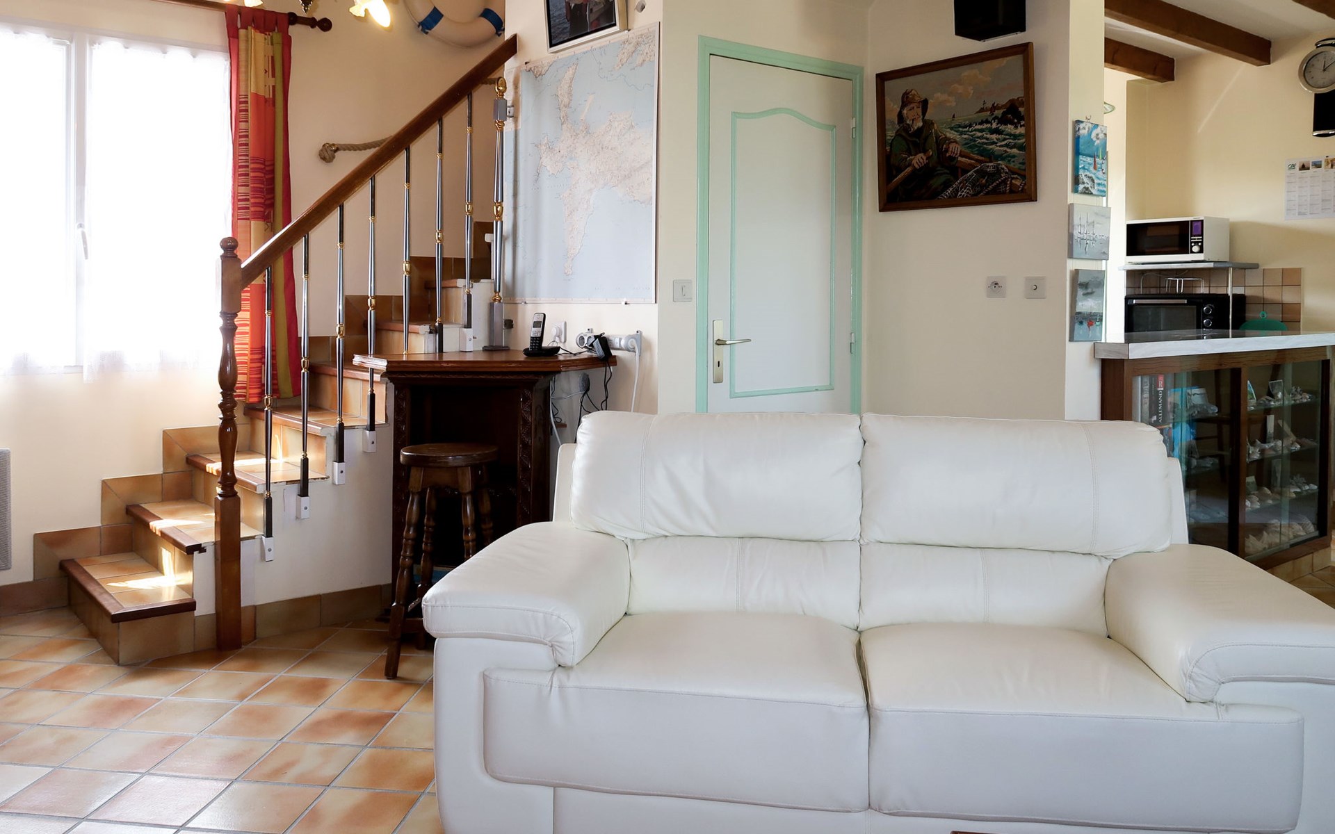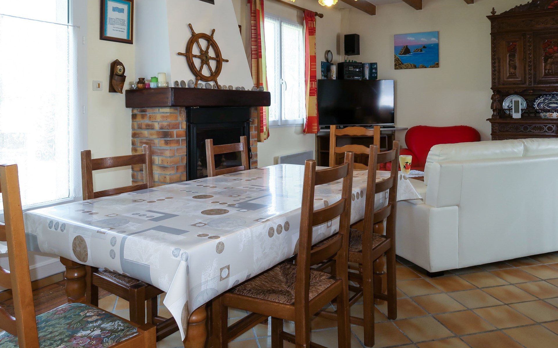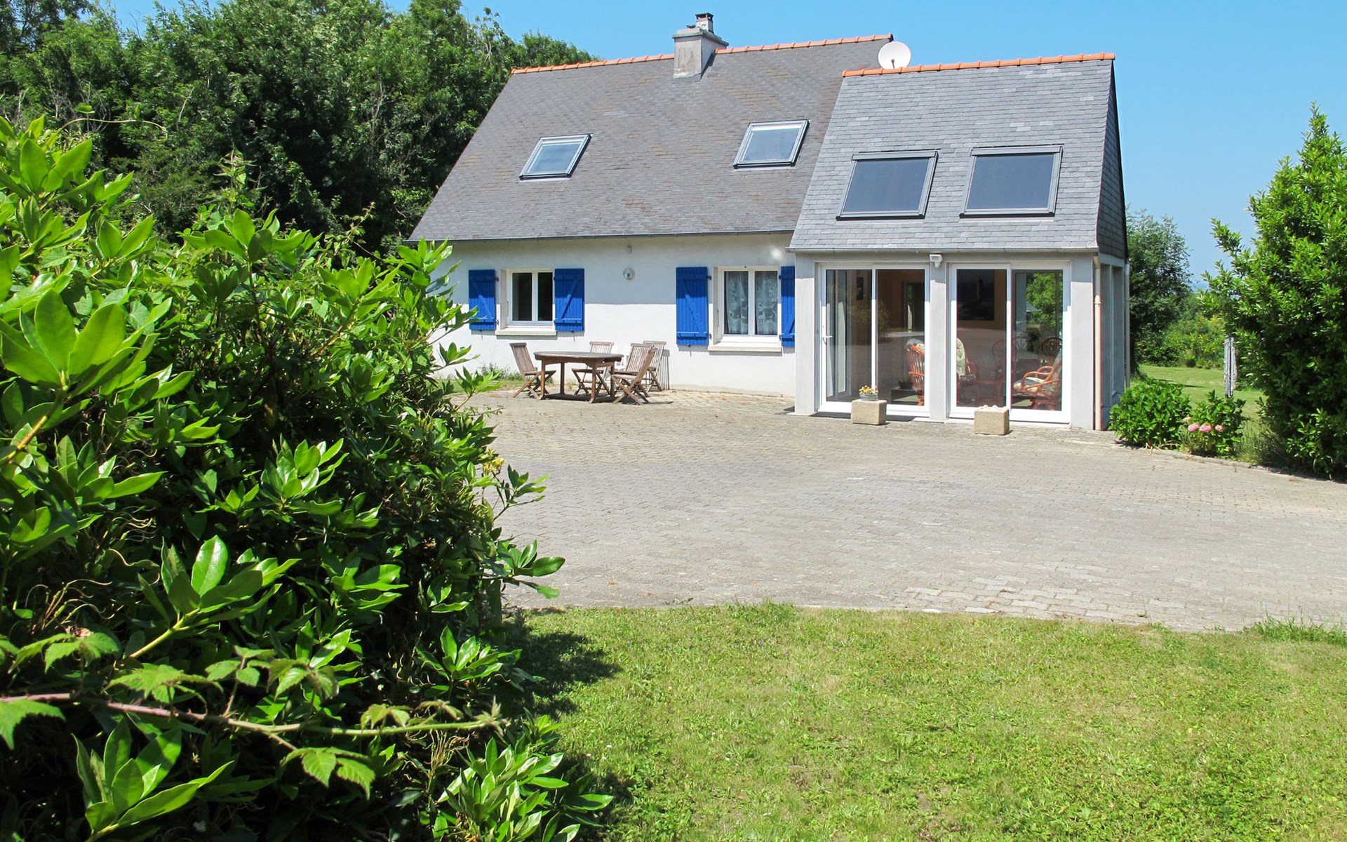 Single-family house "Nature et Mer", surrounded by trees and fields. In the district of Rigonou 2.3 km from the centre of Camaret-sur-Mer, 9 km from the centre of Crozon, 1.4 km from the sea. Private: property 1'000 m2. In the house: storage room for bicycles. Parking on the premises. Supermarket 2.3 km, bus stop 3 km, sandy beach 1.4 km. Marina 2.3 km, sailing school 2.3 km. Please note: car recommended.