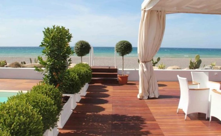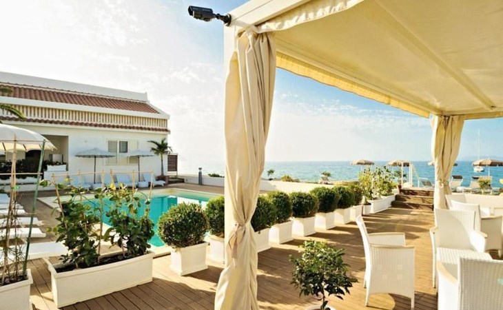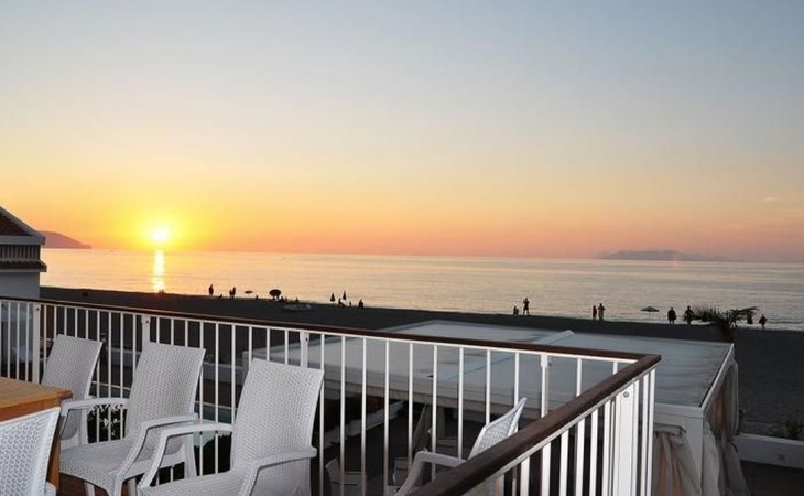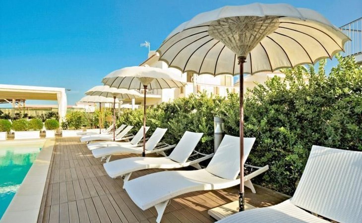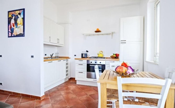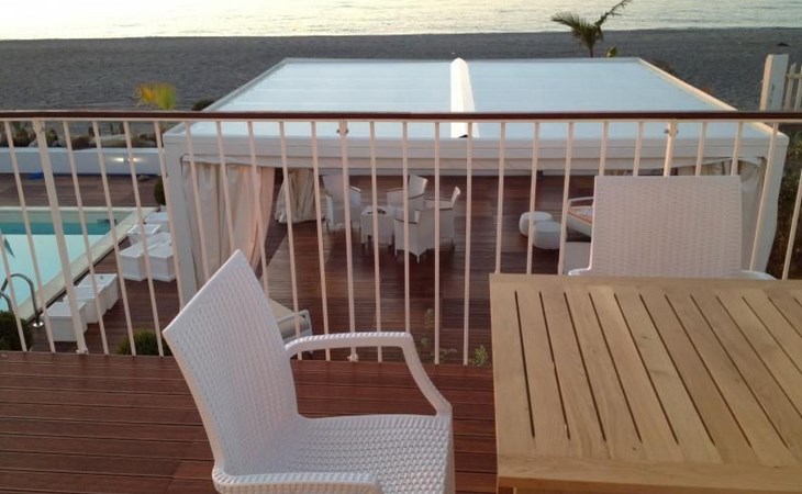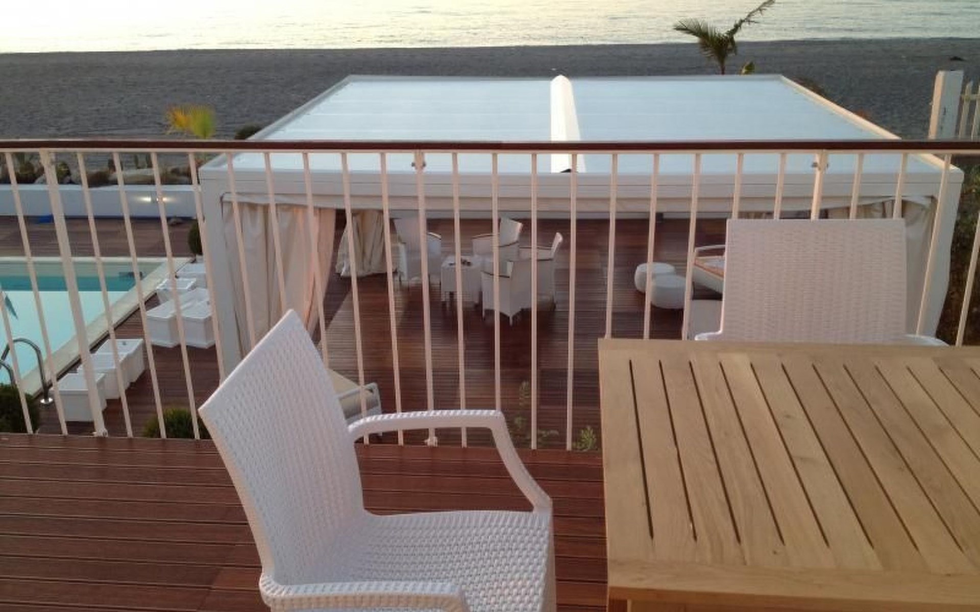 The 15 sq m terrace is equipped with a table with four chairs and a sun lounger.