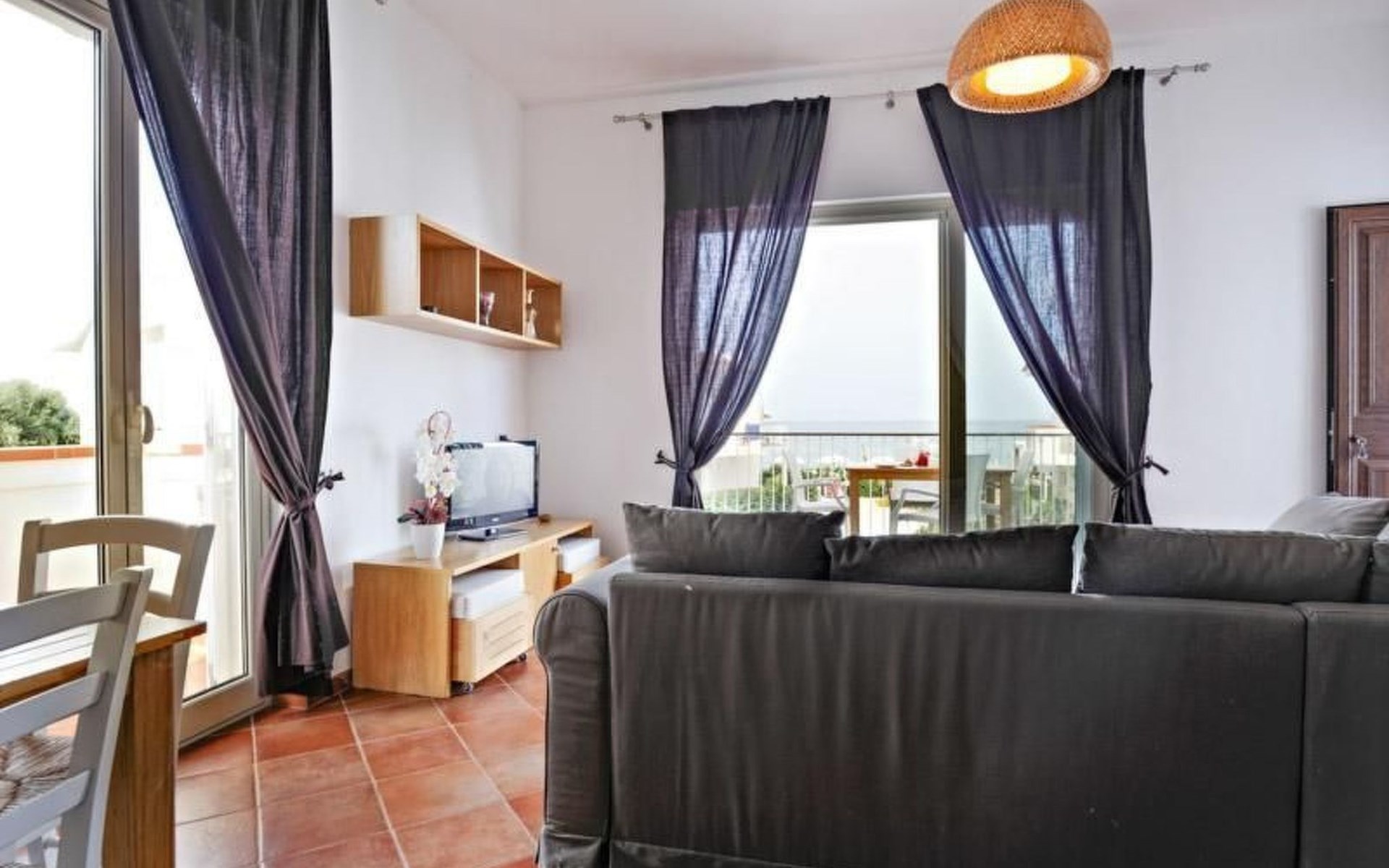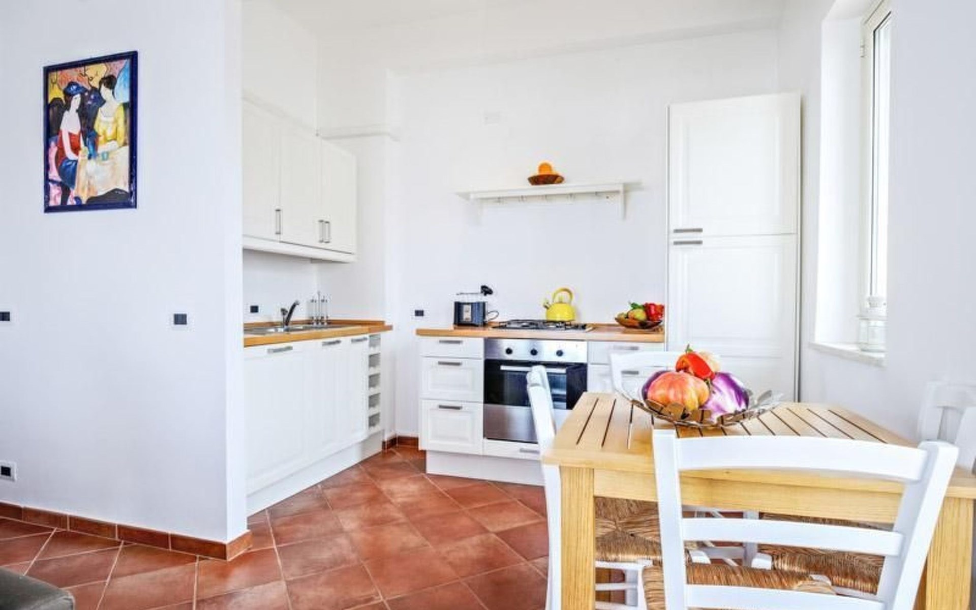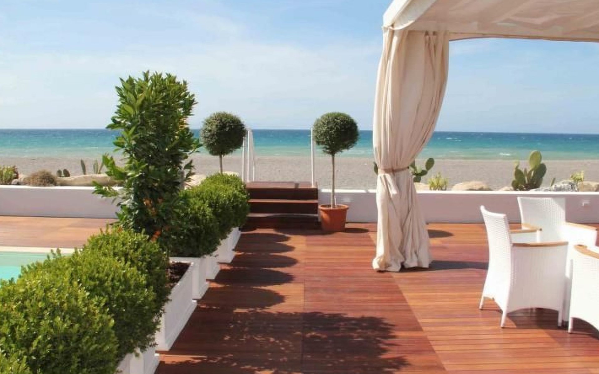The 15 sq m terrace is equipped with a table with four chairs and a sun lounger.