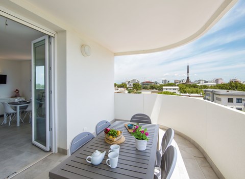 Outside, the flat boasts a spacious terrace and balcony, ideal spaces for enjoying a morning coffee or relaxing on warm summer evenings. Located on the second floor of a detached house, free on all four sides, it offers an exclusive and private setting for your stay.