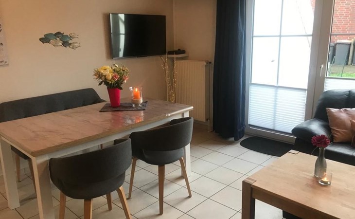 Renovated in 2024 !!! Cosy and well-equipped holiday home in Wangerland-Hooksiel with three bedrooms. Arrive and feel good is the motto! The bright, sunny holiday home is modern, well-maintained and tastefully furnished, so your holiday home for your family holiday presents itself to you. On the ground floor (approx. 28m²) you will find a cosy living and dining area with an open-plan kitchen. The kitchen (12m²) is fully equipped with all important kitchen utensils. In addition to a four-ring hob, there is also an oven, egg cooker, freezer, dishwasher, microwave and much more. A dining table not only invites you to eat together but also to socialise. A seating area with a TV (digital, satellite/cable), CD player, hi-fi system and board games completes the offer. On the ground floor there is also a small bedroom (eight m²) with a sofa bed (140x200cm) and a wardrobe. The guest WC is also located on the ground floor. There is also a storage room on the ground floor with a baby cot, a high chair, cleaning products and a clothes horse. A staircase leads to the first floor, where there are two further bedrooms. The first bedroom is furnished with a double bed (200cmx180cm) and the second bedroom with two single beds (100cmx200cm each). Both rooms have an awning and a wardrobe to store your clothes. Both bedrooms also have a digital TV and a radio with charging station. A shower room with a washing machine and a WC complete the first floor. You will also find an internet connection and WLAN equipment in the holiday home. A fast charging station is right outside the front door.