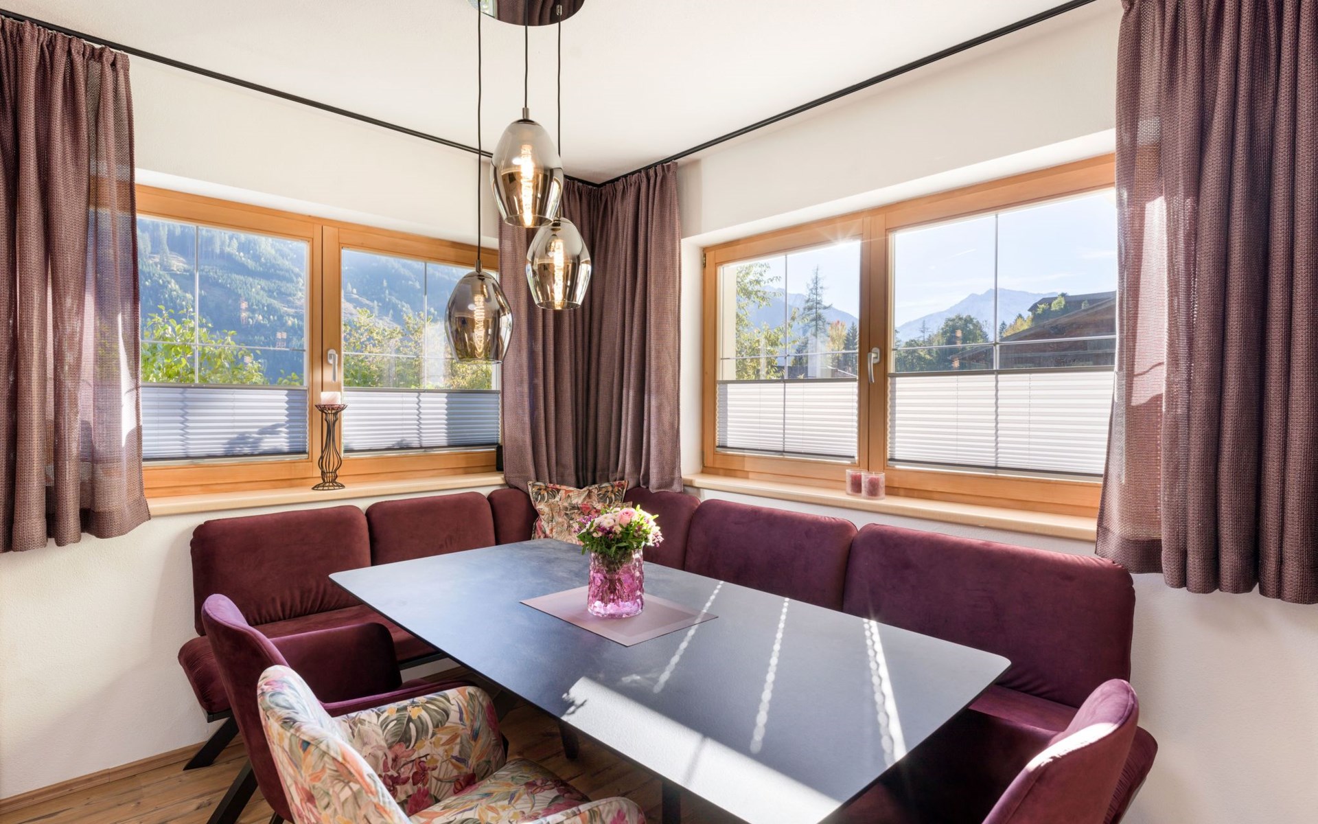 - view: mountain, garden, forrest, lawn