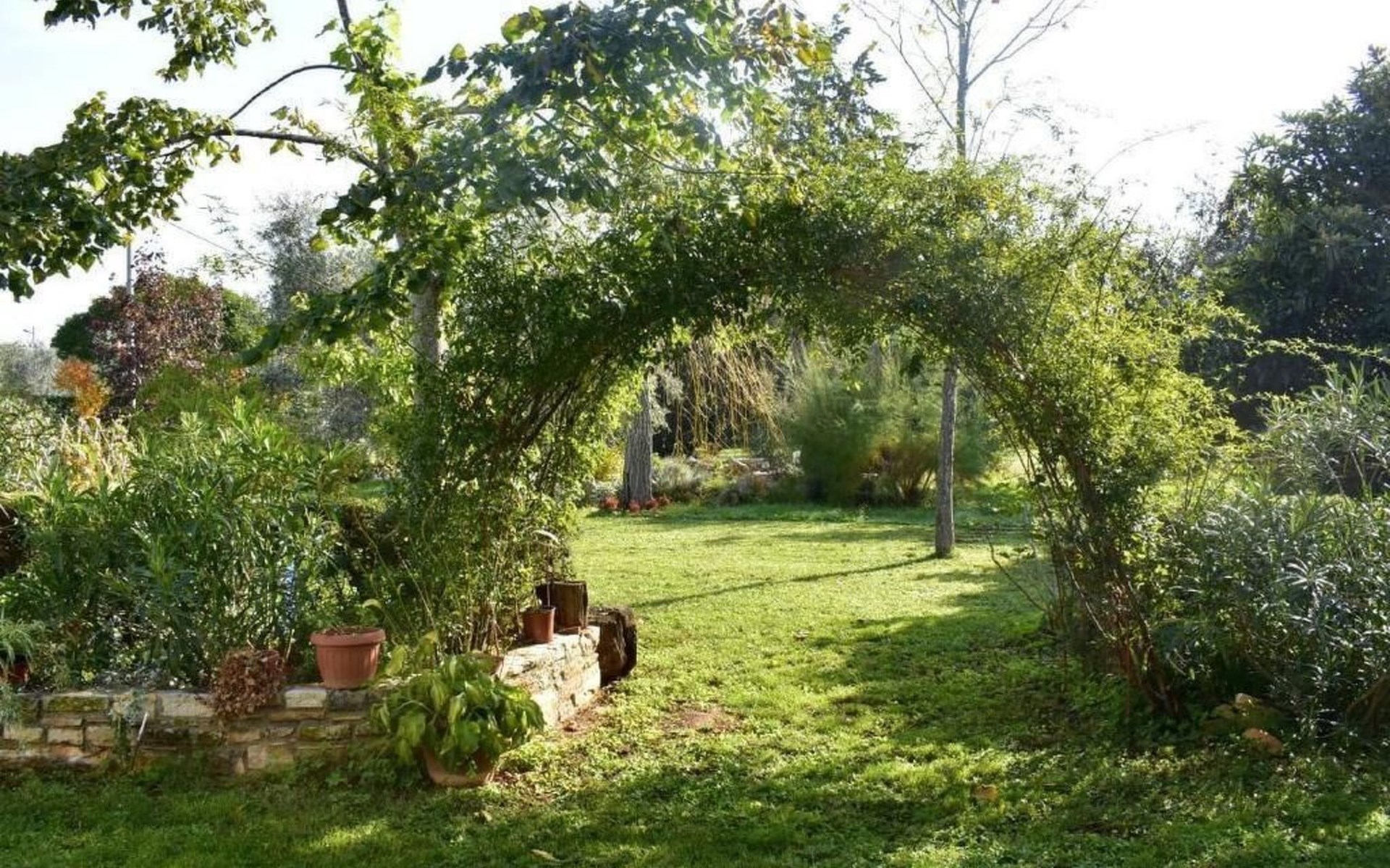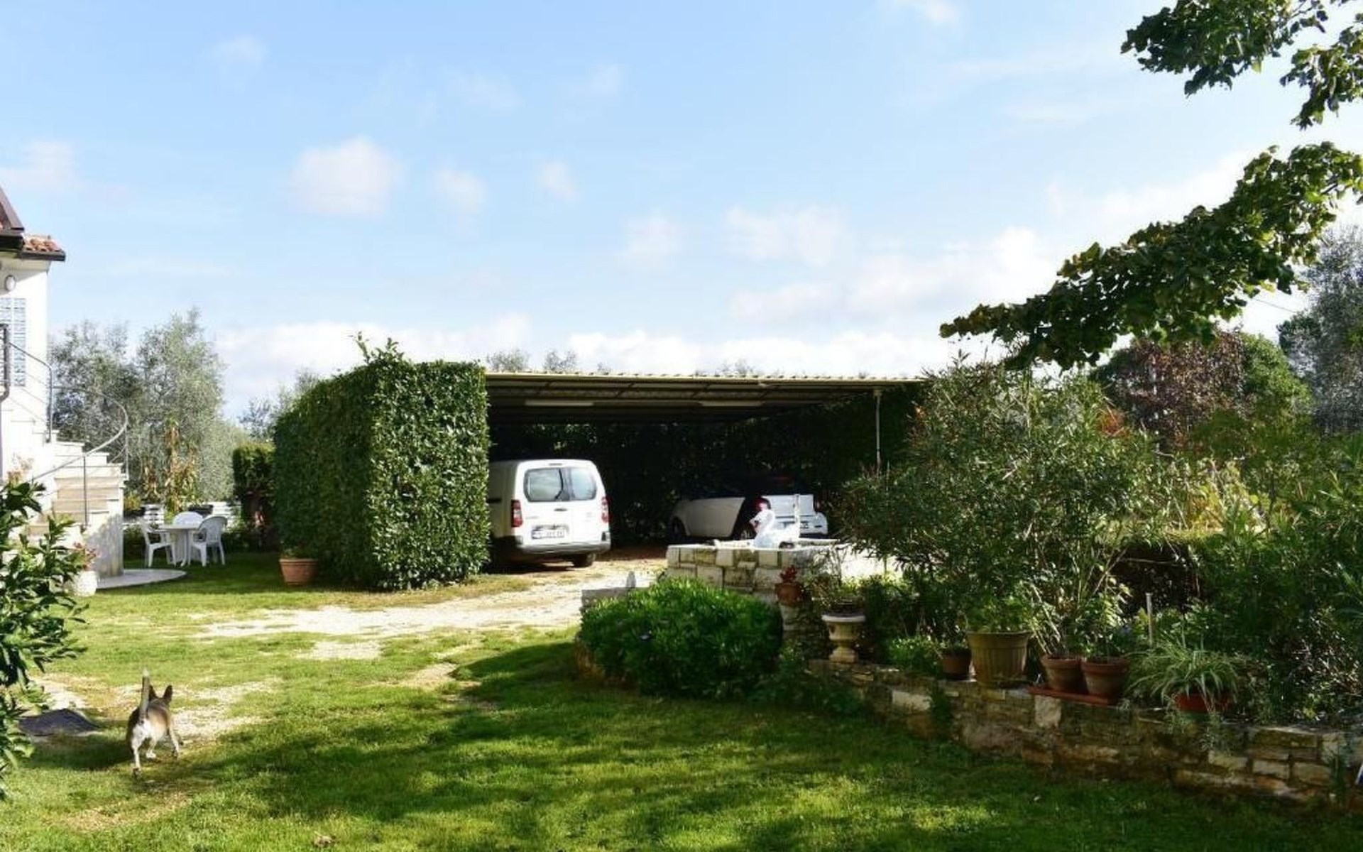 The outdoor area offers a large terrace with table and chairs, ideal for enjoying the tranquillity of the garden or having a relaxed breakfast outdoors. A private car park directly in front of the house completes the offer and provides additional comfort during your stay.