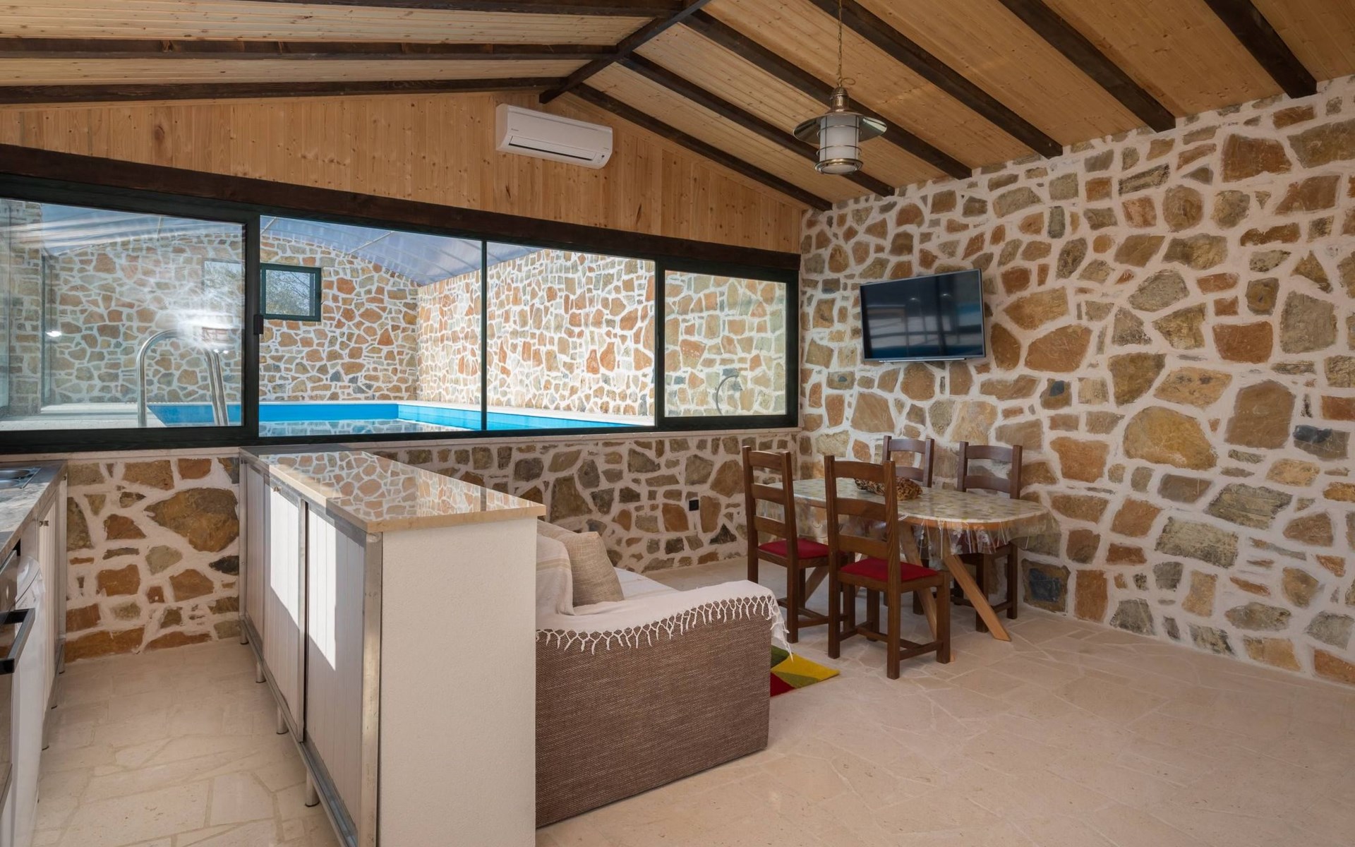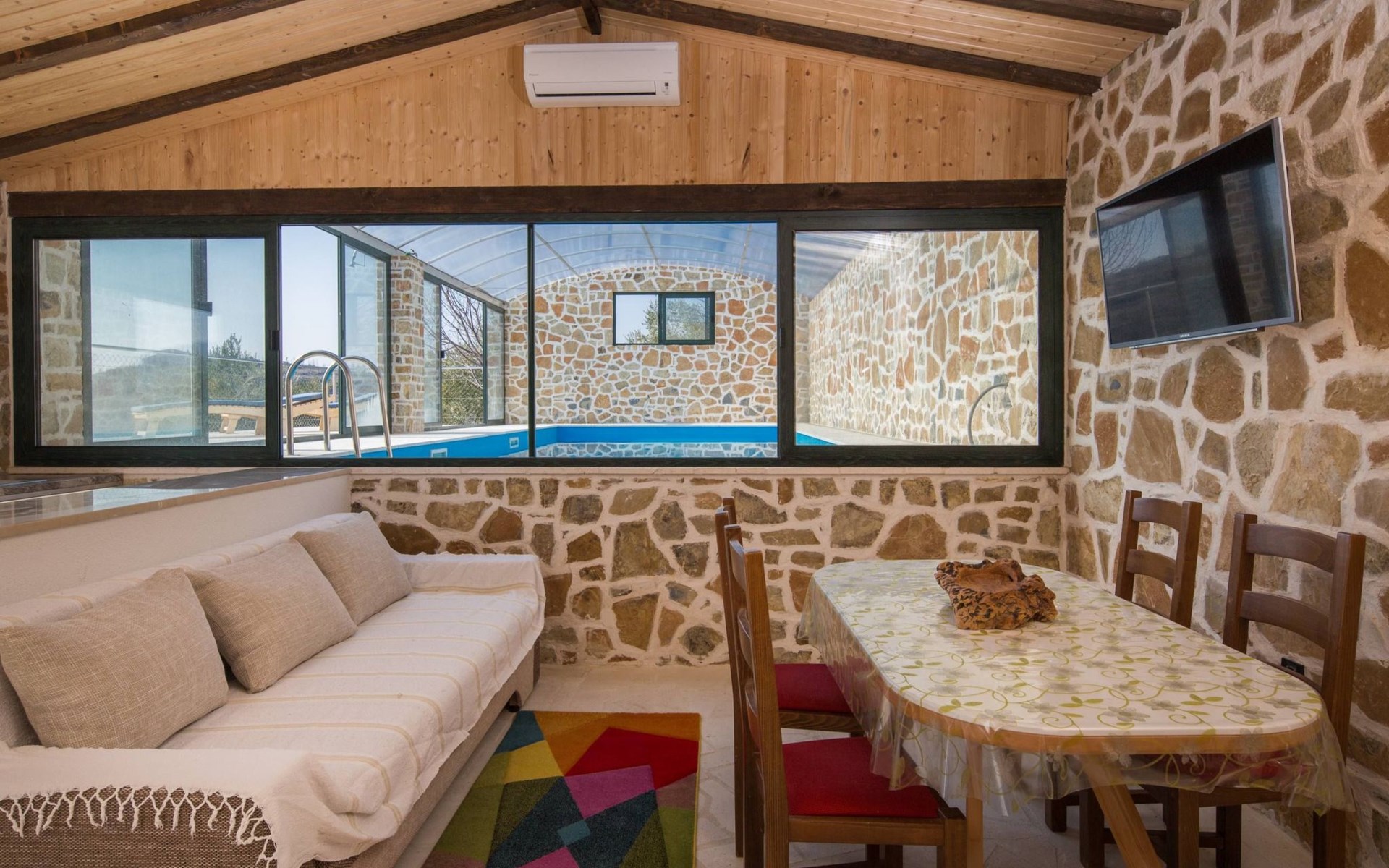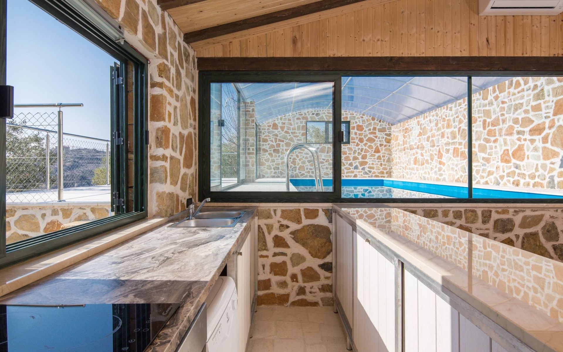 The living room provides access to your private indoor pool measuring 4 x 10 metres, with a metal ladder to facilitate entry. After a few rounds of swimming, you can relax on the sun loungers on the terrace (which is equipped with garden furniture with four chairs and a wooden table) and enjoy an extensive panoramic view over the mountainous landscape as far as the sea. If you arrive by car than you can use the secure parking spaces right in front of the house.