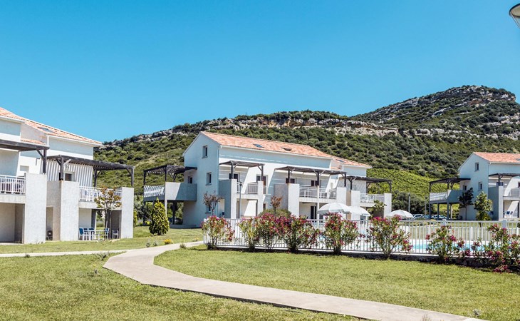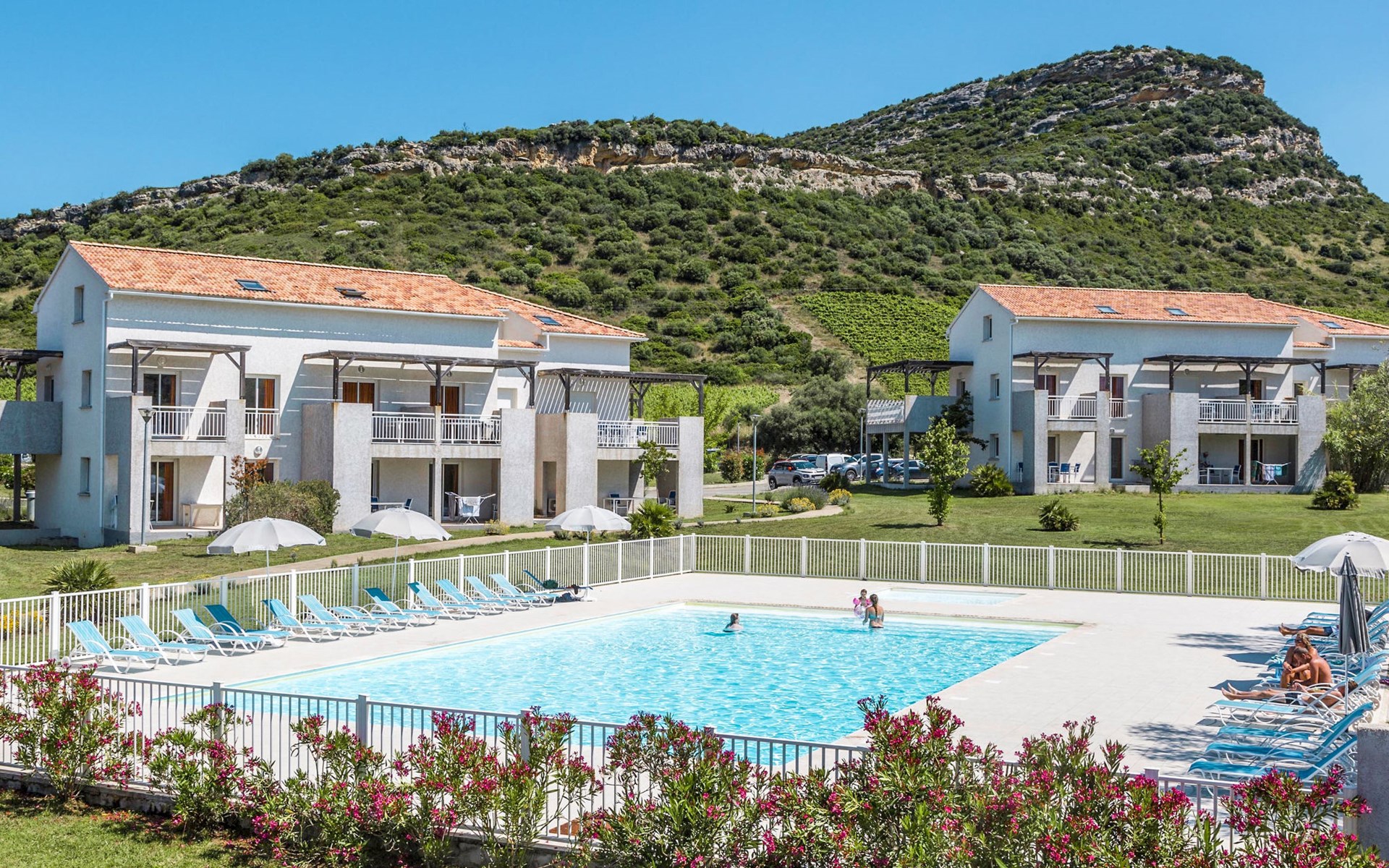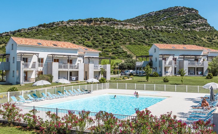 Resort "Casa d'Orinaju". 76 apartments in the residence. 4 km from the centre of St. Florent, 70 km from the centre of Calvi, 25 km from the centre of Bastia, 4.5 km from the sea. For shared use: property 25'000 m2 with trees, meadow, swimming pool fenced (18 x 10 m, depth 150 cm, seasonal availability: 02.May. - 26.Sep.). Children's pool, outdoor shower, boccia, children's playground. In the complex: reception, WiFi, washing machine (for shared use, extra). Parking (limited number of spaces) on the premises. Supermarket 1.5 km, sandy beach 4.5 km. Please note: the photograph shows a typical example. The holiday properties may differ in living space, floorplan, equipment and furnishing. Wifi only at the reception.