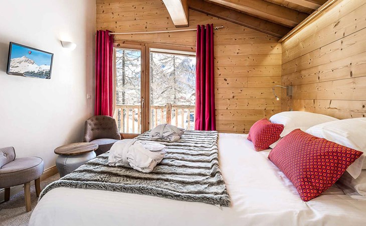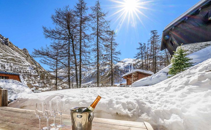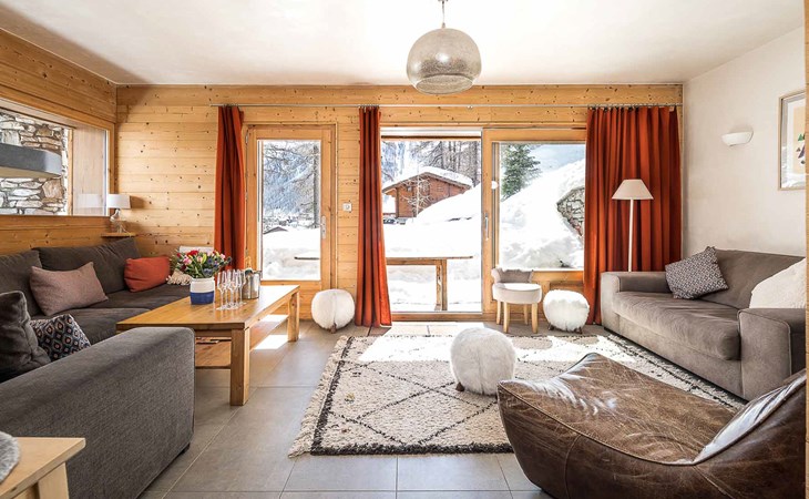 Cosy chalet "Chalet Acajuma". 1 km from the centre of Val d'Isère. In the house: sauna, hot tub, storage room for skis. Parking at the house. Shop 1 km, restaurant 1 km. Ski lift 1 km, ski school 1.5 km. Please note: the photograph shows a typical example.