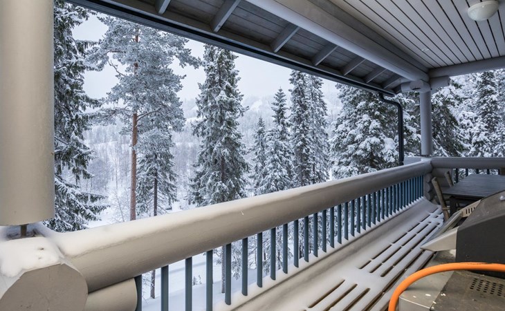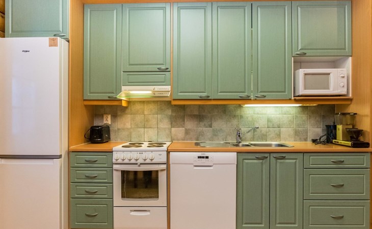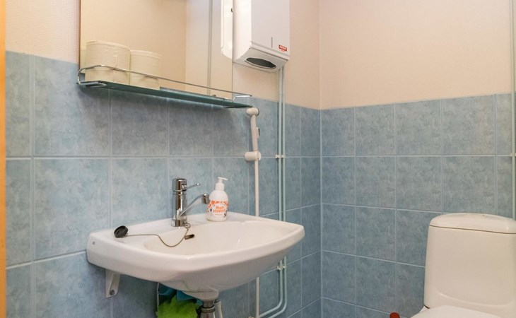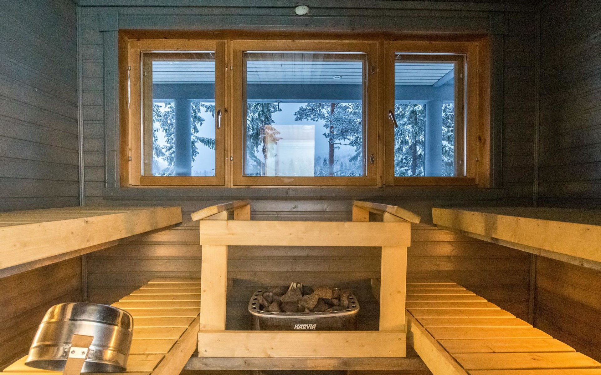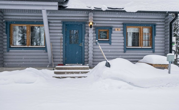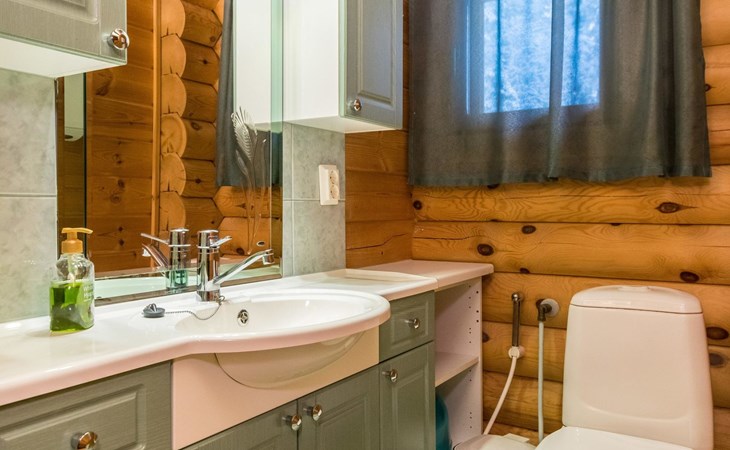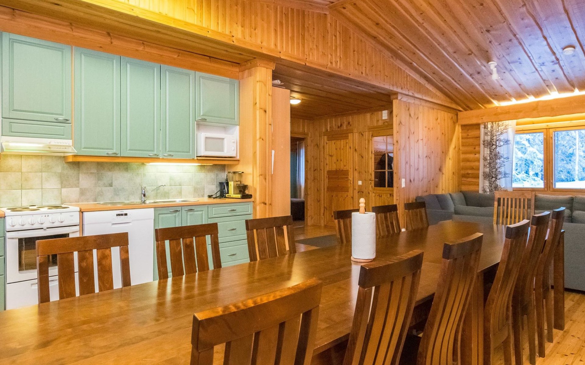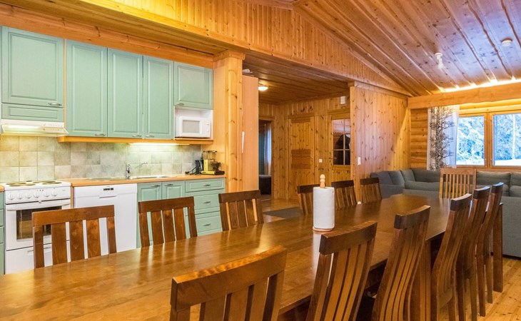 Cosy row house of massive logs, built in 2000. Roomy living room and kitchenette, with a sofa bed, fire place room with and a sofa bed, sauna, 2 WC’s, storage room, and terrace. 3 bedrooms with 2 beds in each. Firewood includes in price. Pets 30€/reservation