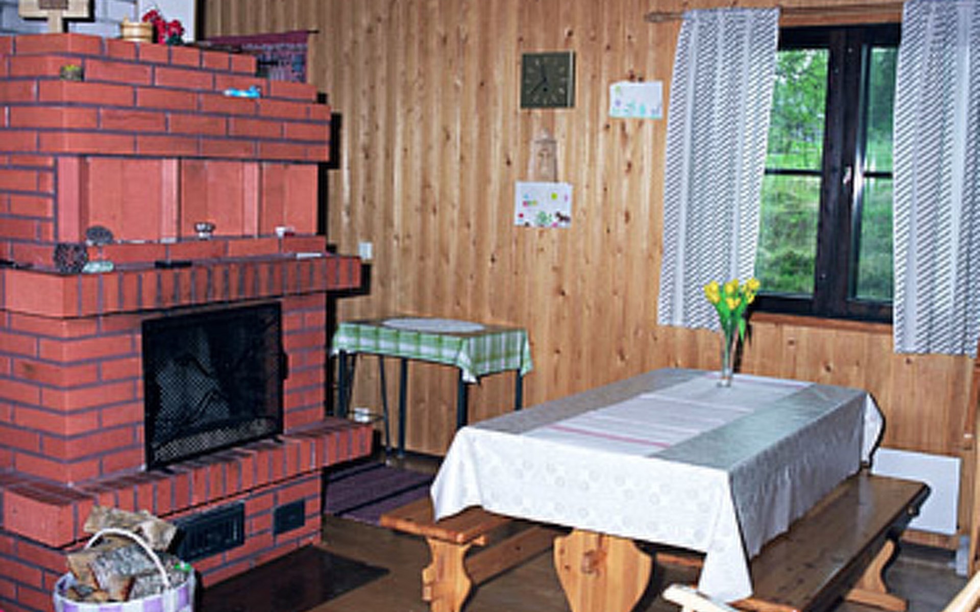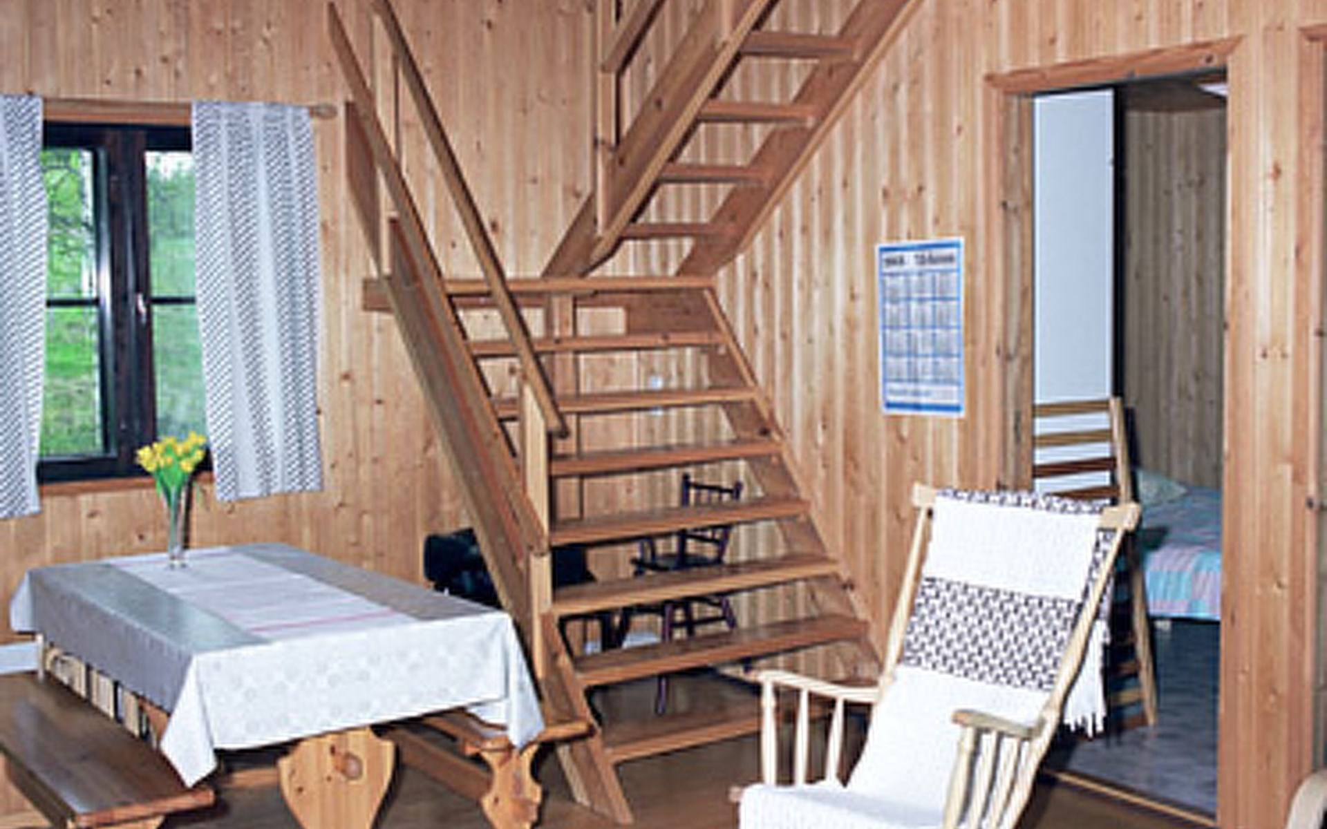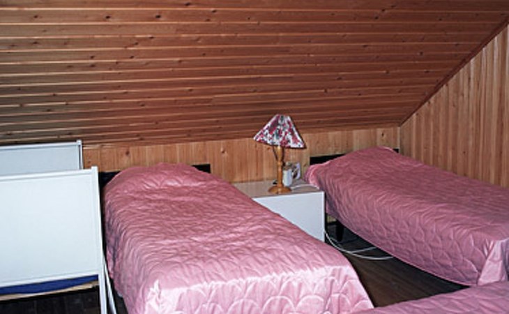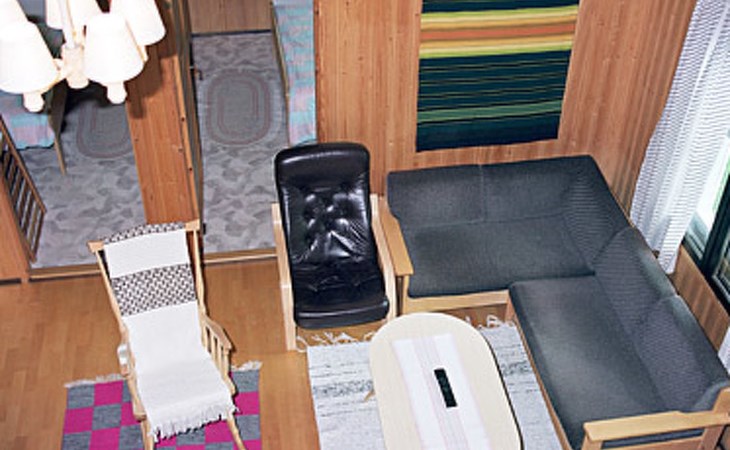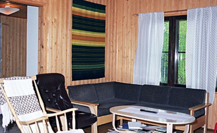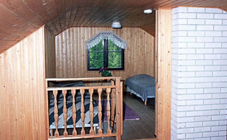 Wooden cottage 1990, 58 m² + 40 m², cooking corner, living room, 2 bedrooms double bed in each, sleeping loft 4 beds, second loft with 2 beds (ladder to this loft). Washroom, sauna (electric stove), open porch.